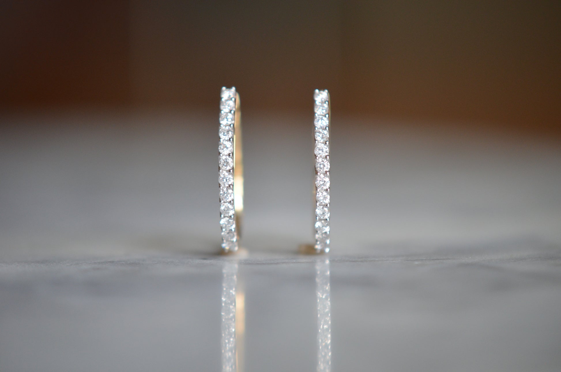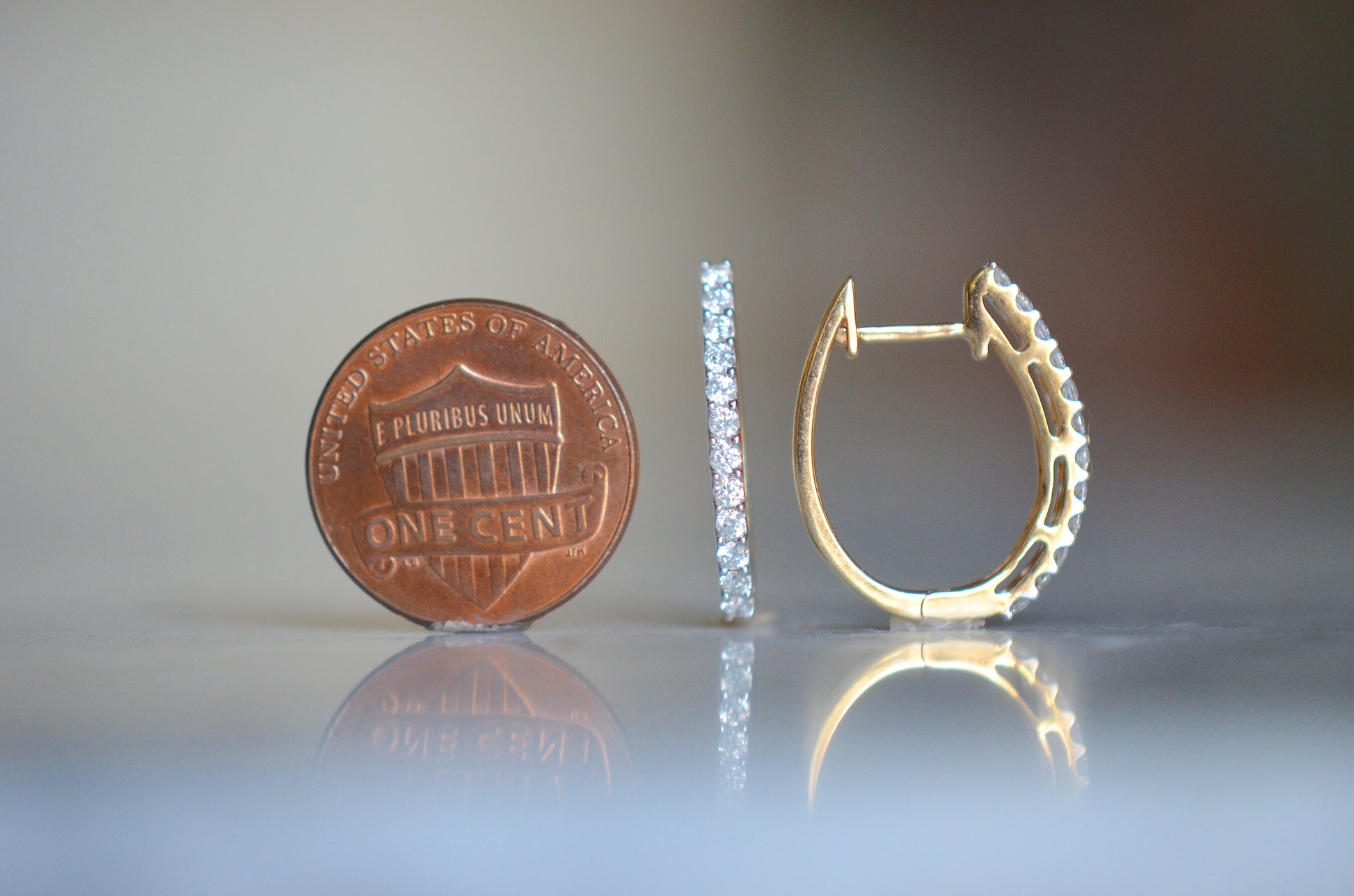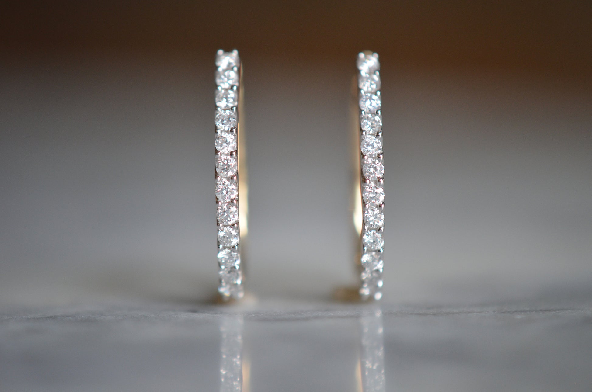 Luscious and versatile, these diamond hoops are the perfect accessory that easily goes from day to night. Sleek, lightweight, and comfortable, they're classic enough for everyday wear, but with over half a carat total in diamonds they have enough presence for an evening out as well. White gold settings keep the stones looking bright, while yellow gold hoops provide a warm base - and as a result, the earrings easily pair with all the jewelry in your wardrobe. Closing with a satisfying click, the latch is secure, and the oval shape is flattering on all kinds of lobes.