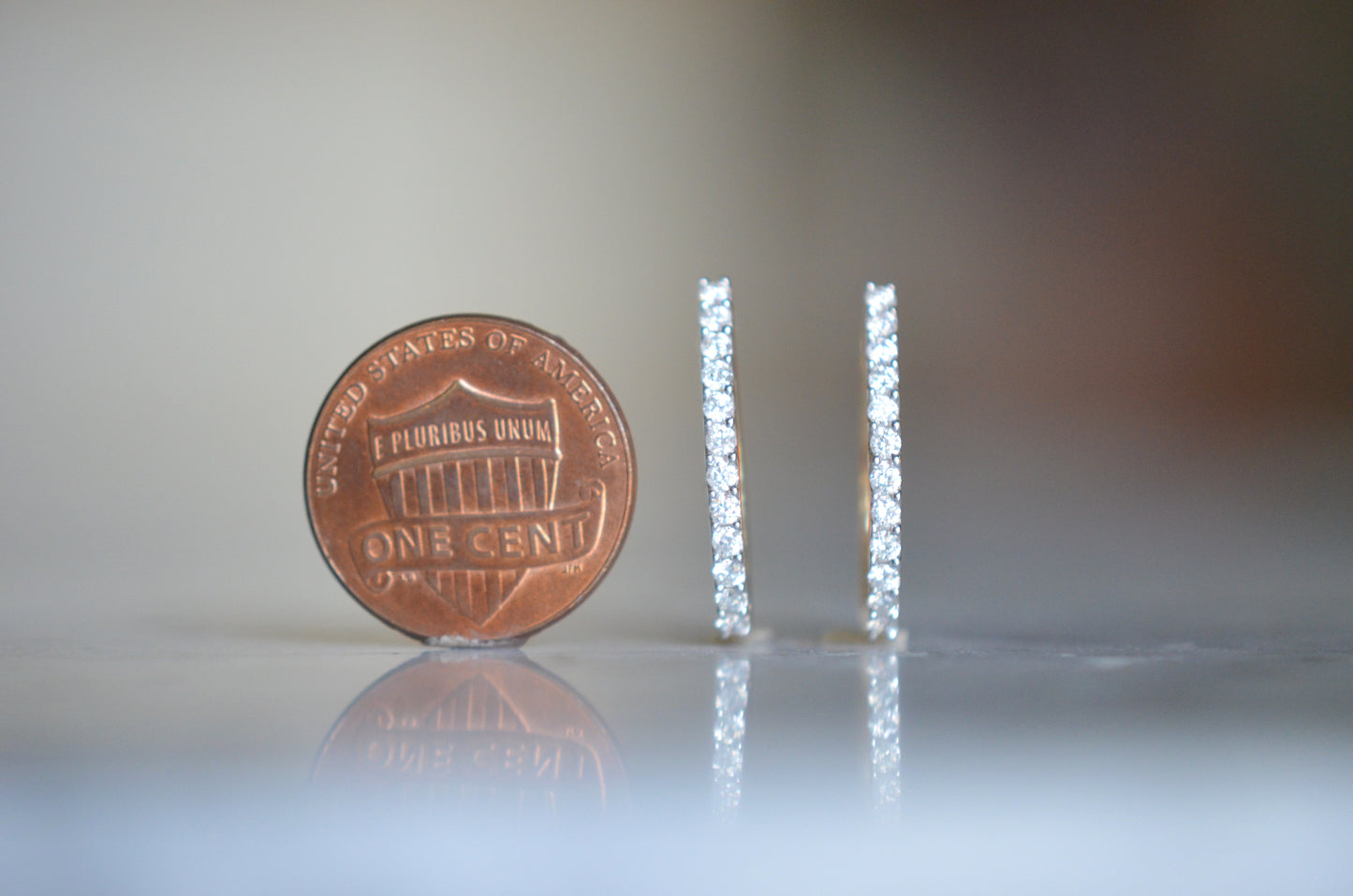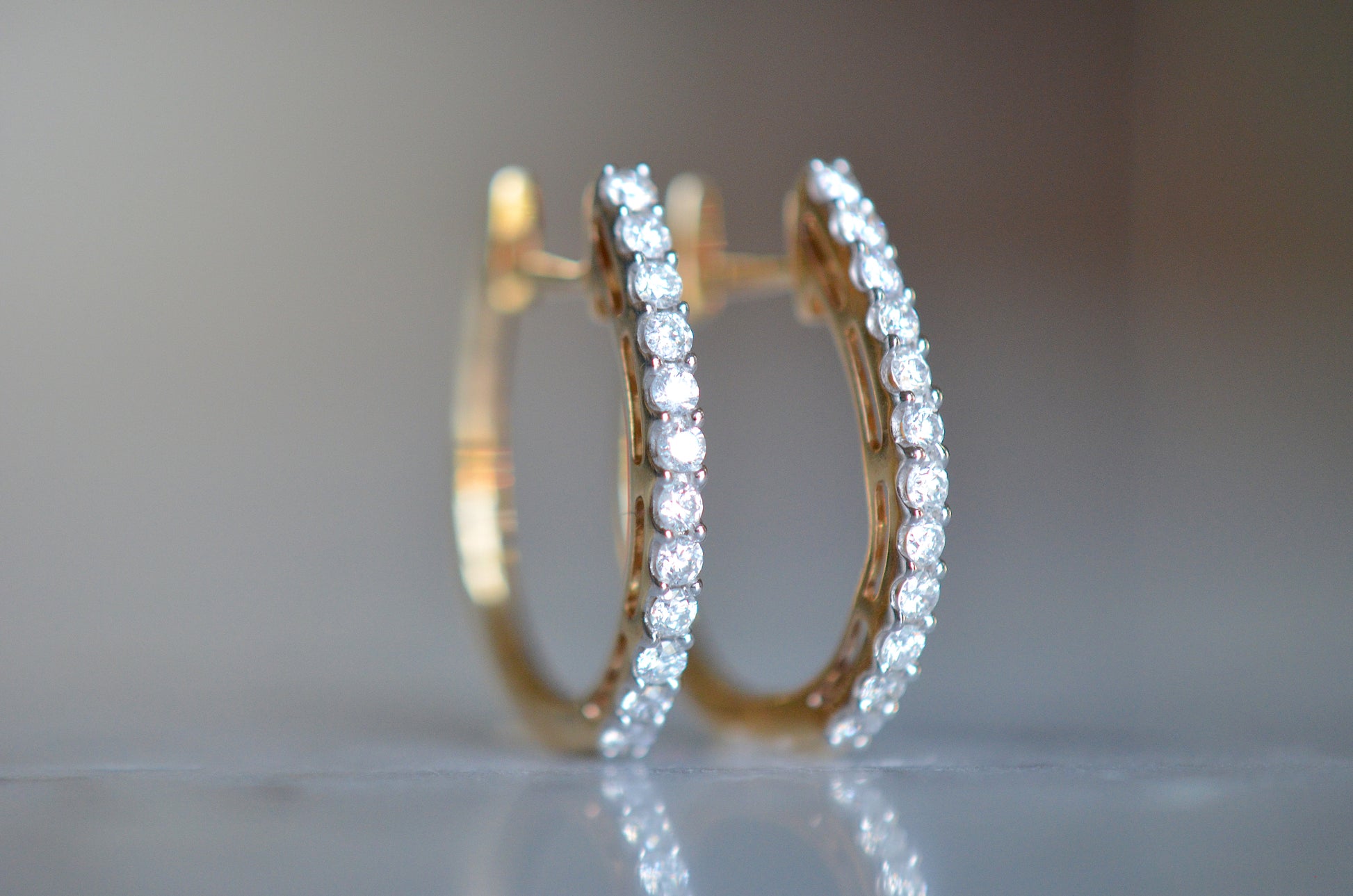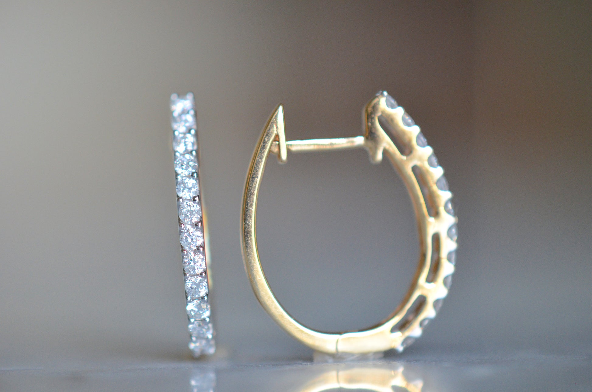 Luscious and versatile, these diamond hoops are the perfect accessory that easily goes from day to night. Sleek, lightweight, and comfortable, they're classic enough for everyday wear, but with over half a carat total in diamonds they have enough presence for an evening out as well. White gold settings keep the stones looking bright, while yellow gold hoops provide a warm base - and as a result, the earrings easily pair with all the jewelry in your wardrobe. Closing with a satisfying click, the latch is secure, and the oval shape is flattering on all kinds of lobes.