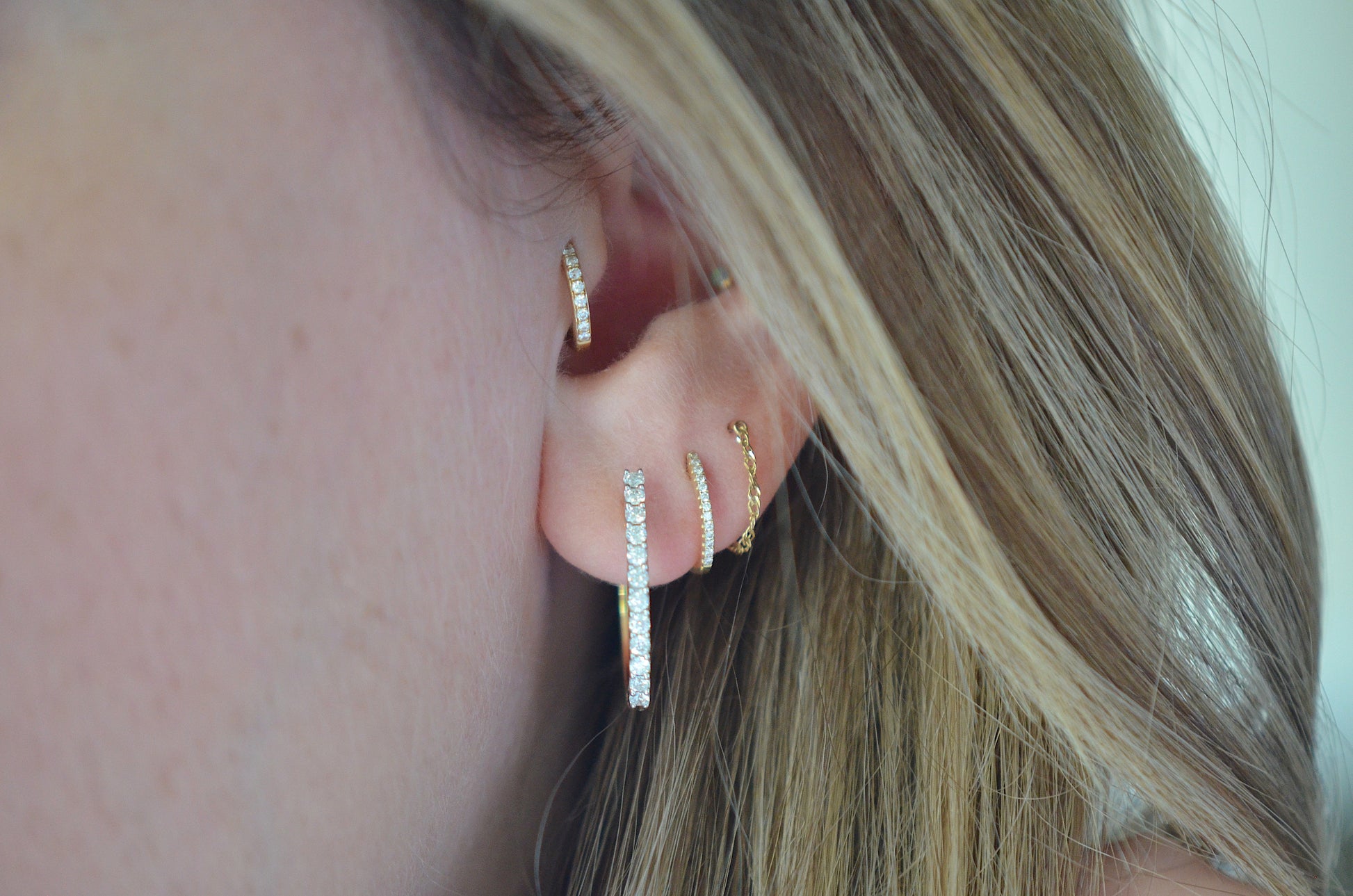 • Outside dimensions are 2mm wide, 20mm top to bottom, 17mm front to back; inside dimensions are 14mm from post to base, 13mm from front to back; front of earring is 3mm thick