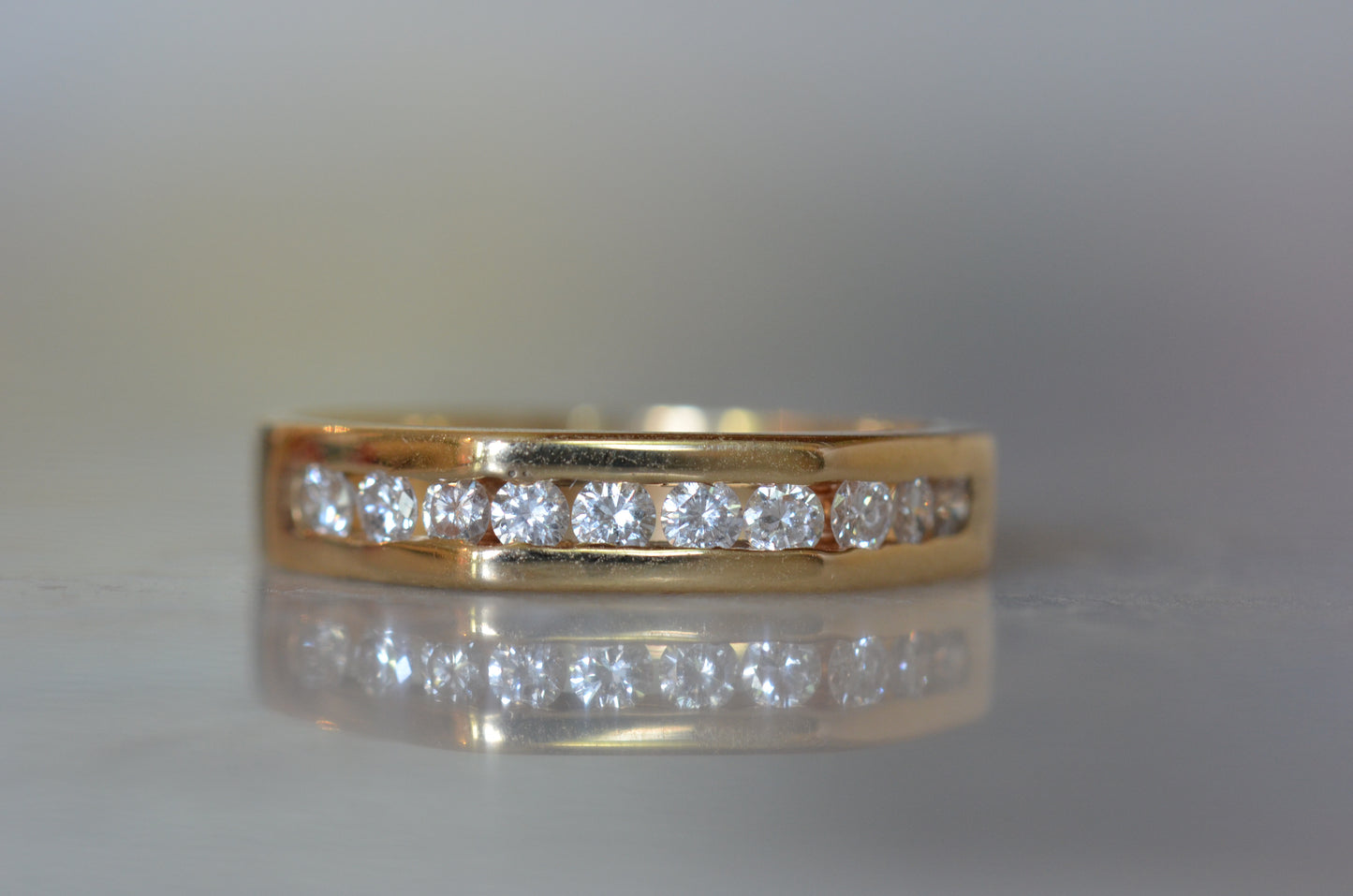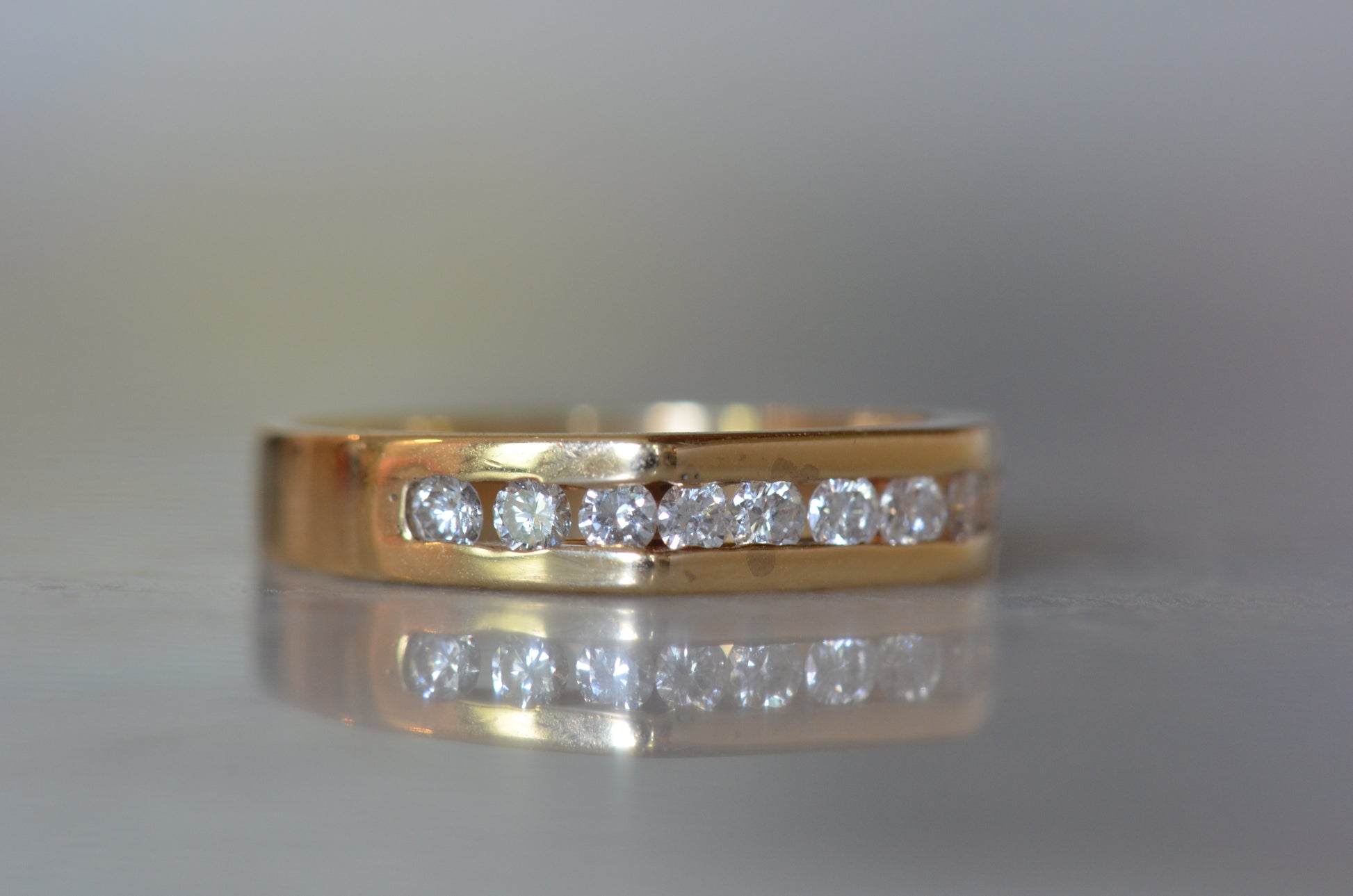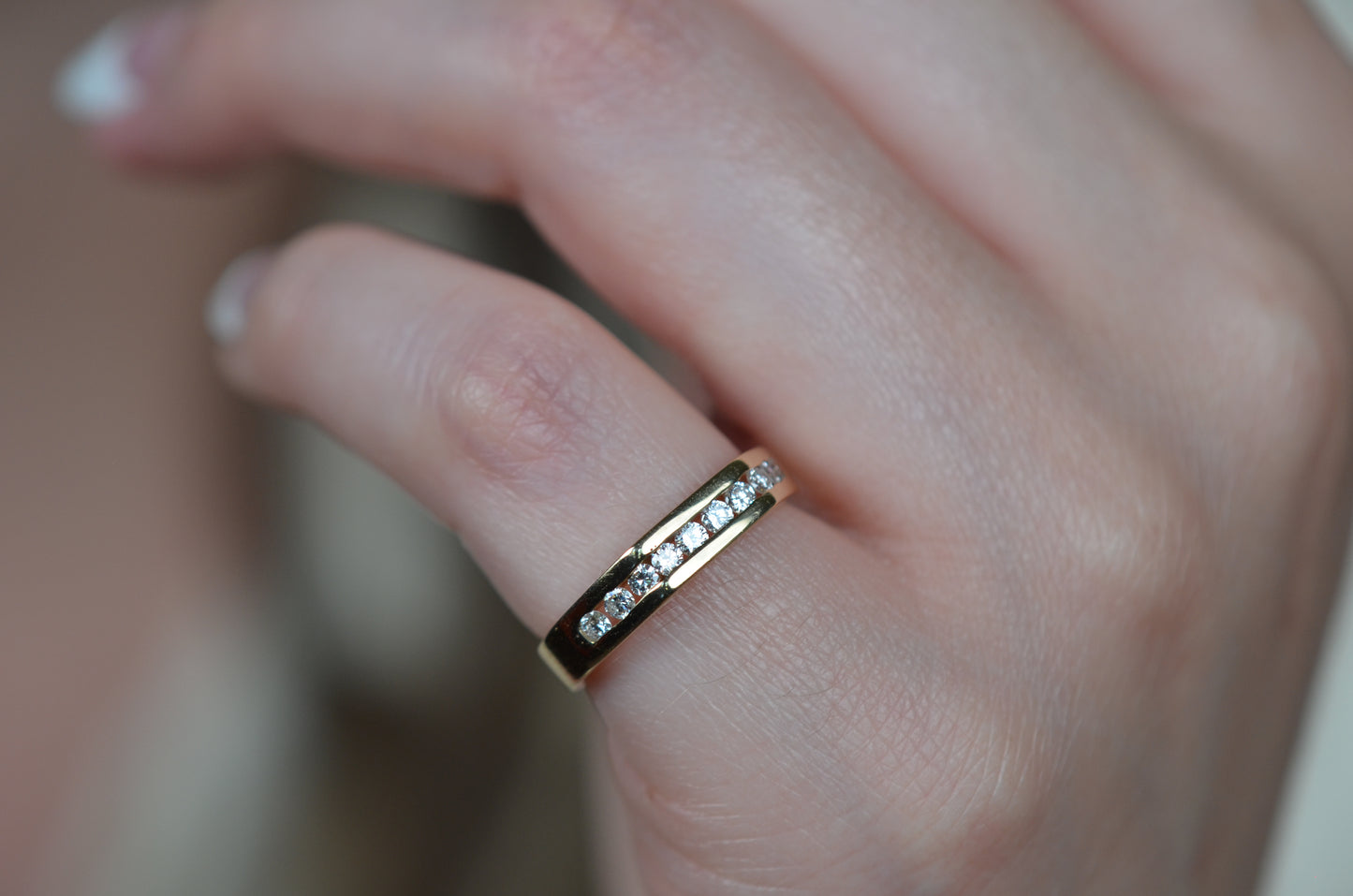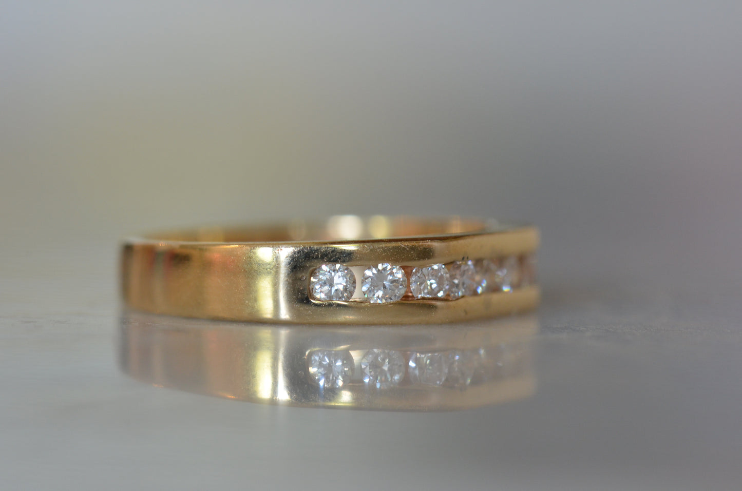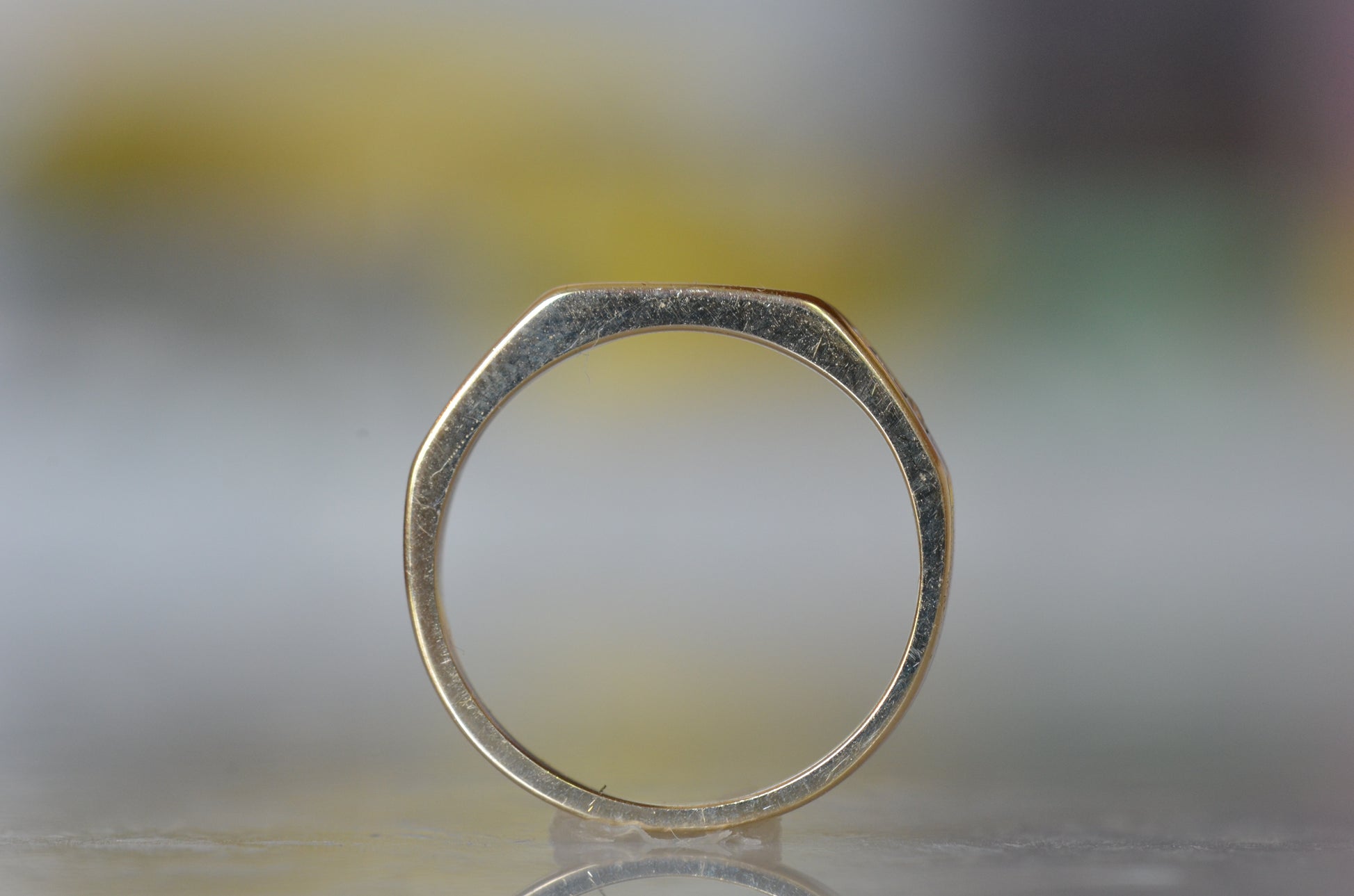 The little black dress of jewelry? More like the perfect pair of jeans - easy-wearing, low maintenance, perfectly broken in and goes with everything. A channel-set diamond band is a staple in any collection. Sparkling diamonds give presence on the hand, while secure channel settings mean you can stack with anything without worrying about those little sparklers. Low-rise and durable, there's a reason channel-set rings have been beloved as wedding bands in the 1920s, 1950s, and especially the 1980s (hi, mum!). We love them as wedding bands today, or just as much as a solo staple or ring stack mainstay. This band adds a little twist with a geometric top, adding volume and depth to the look.