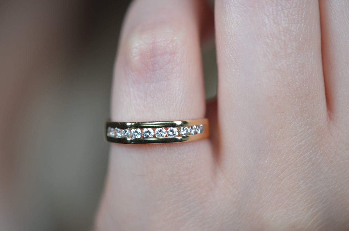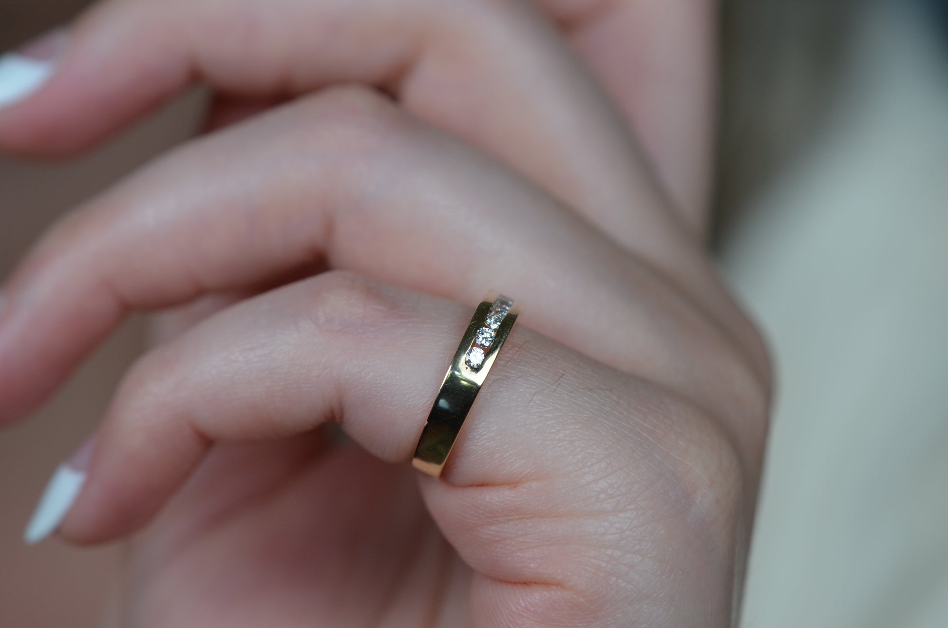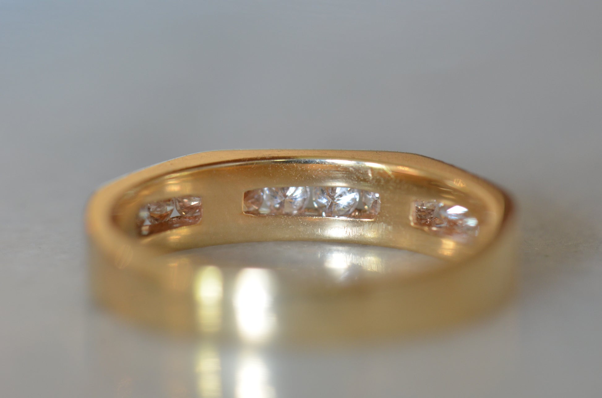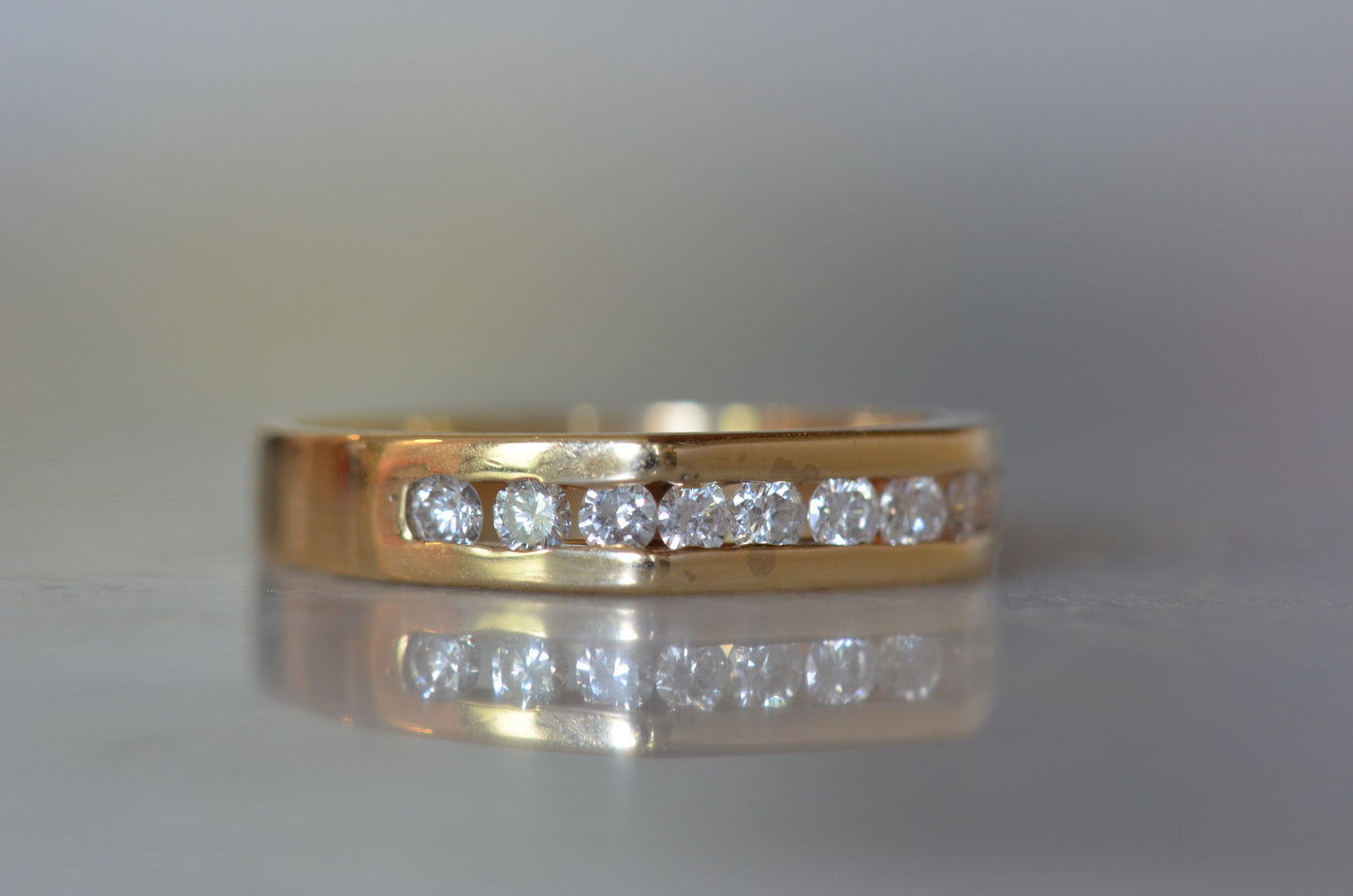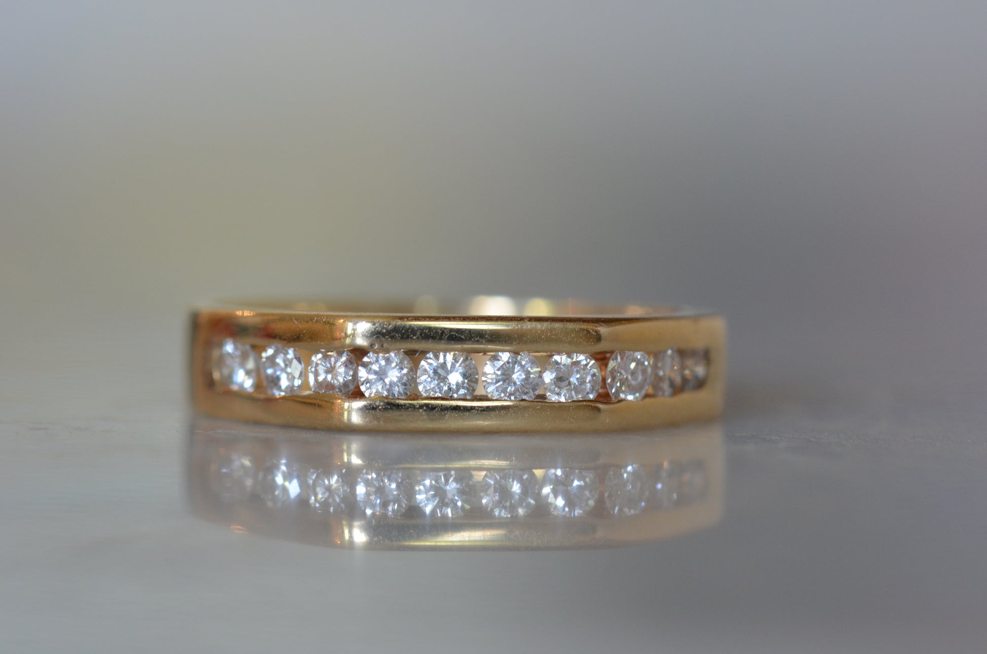 The little black dress of jewelry? More like the perfect pair of jeans - easy-wearing, low maintenance, perfectly broken in and goes with everything. A channel-set diamond band is a staple in any collection. Sparkling diamonds give presence on the hand, while secure channel settings mean you can stack with anything without worrying about those little sparklers. Low-rise and durable, there's a reason channel-set rings have been beloved as wedding bands in the 1920s, 1950s, and especially the 1980s (hi, mum!). We love them as wedding bands today, or just as much as a solo staple or ring stack mainstay. This band adds a little twist with a geometric top, adding volume and depth to the look.