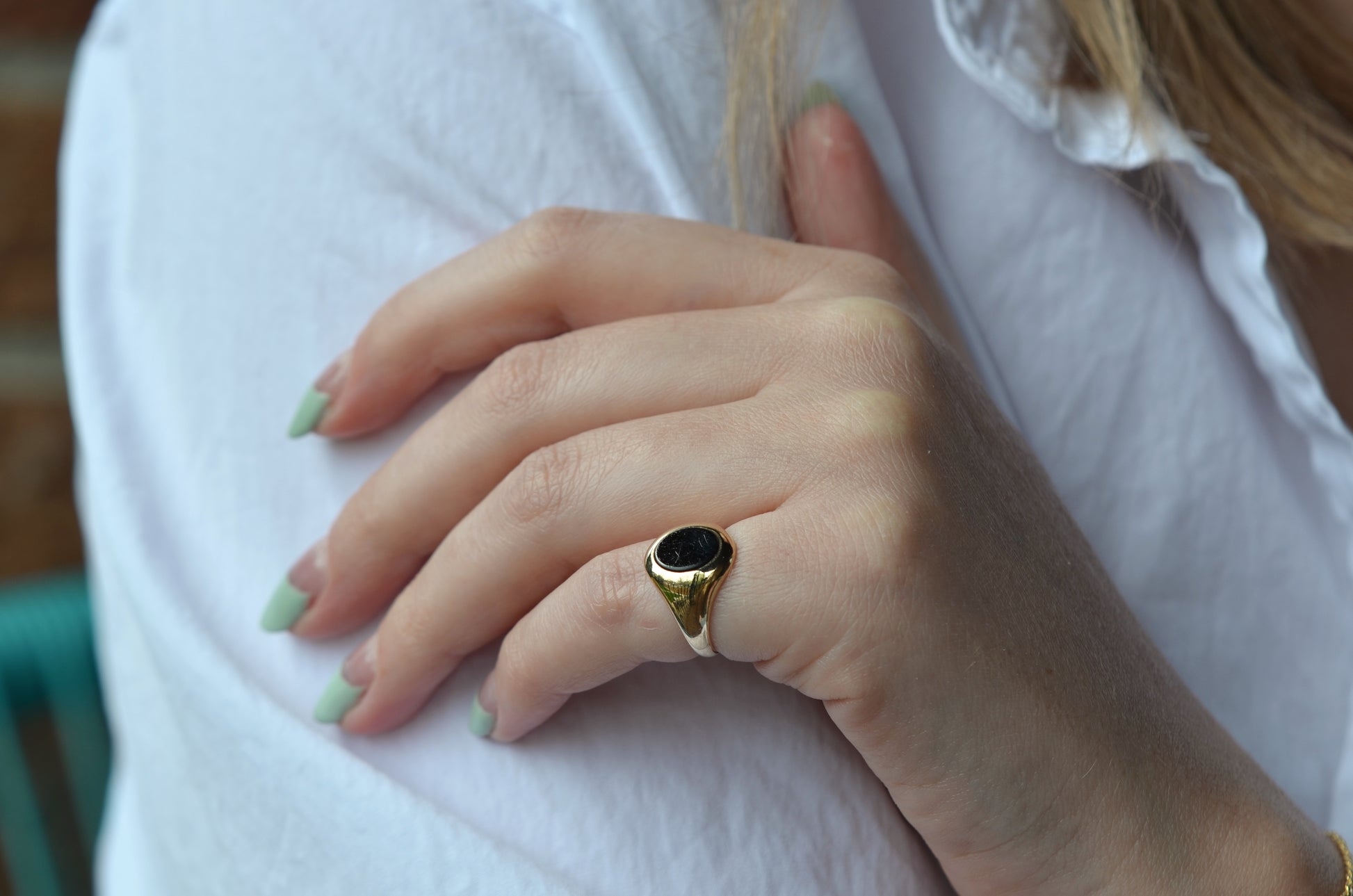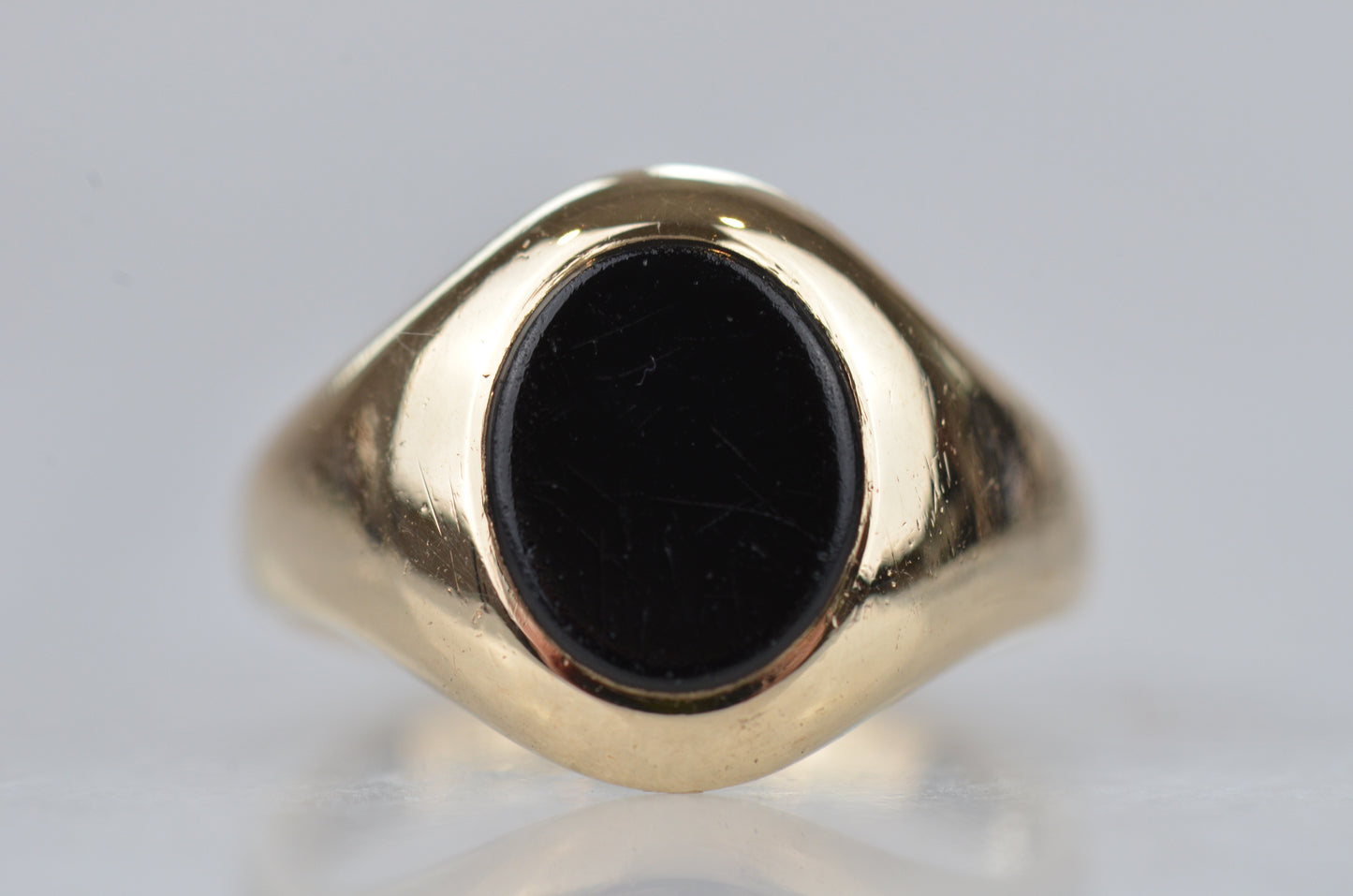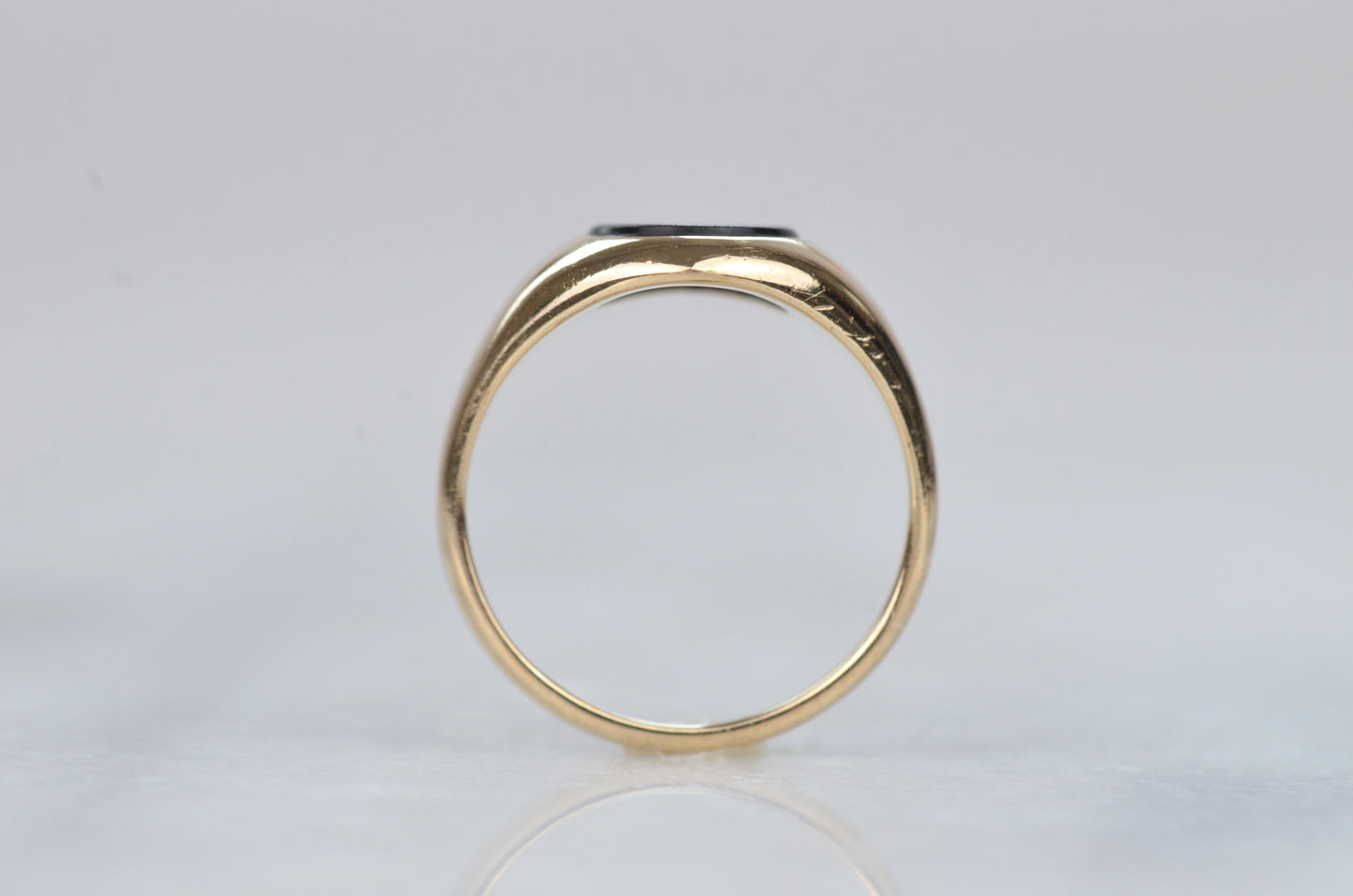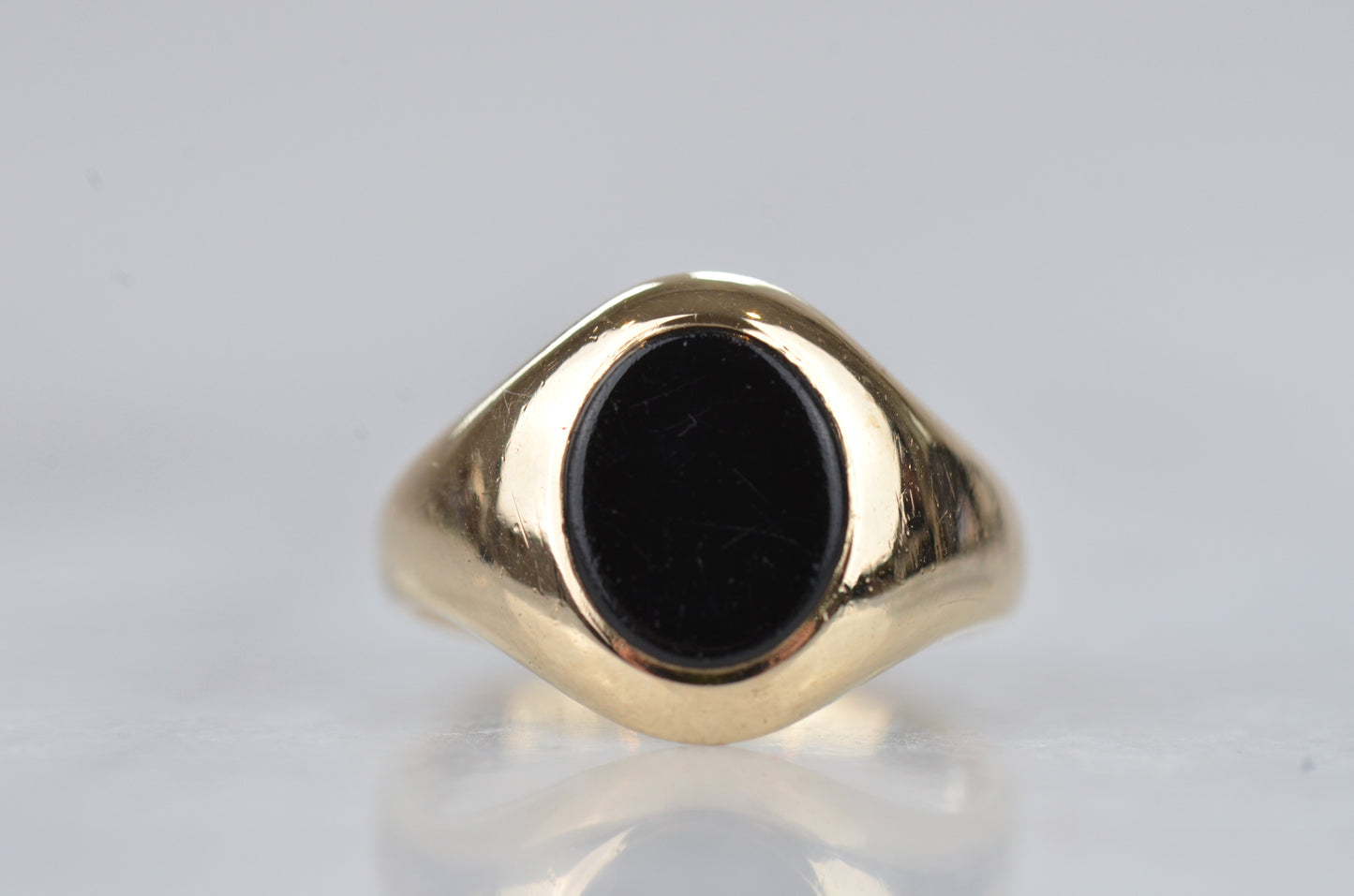 This is an absolute dream of a pinky ring and checks all our boxes: clean lines paired with smooth curves, a bold contrast between inky onyx and yellow gold, a low profile, and so comfortable you'd forget it was there if it didn't keep catching your eye! This ring is bound to be one you reach for again and again - adding a dose of glamour to jeans and a white button up, or some sexy androgynous appeal to a slinky silk dress, bold alone or grounding a whole stack.