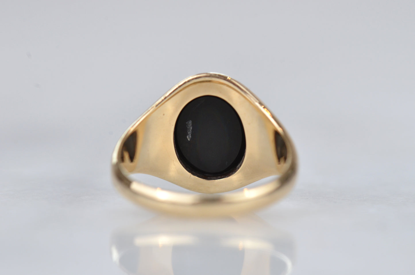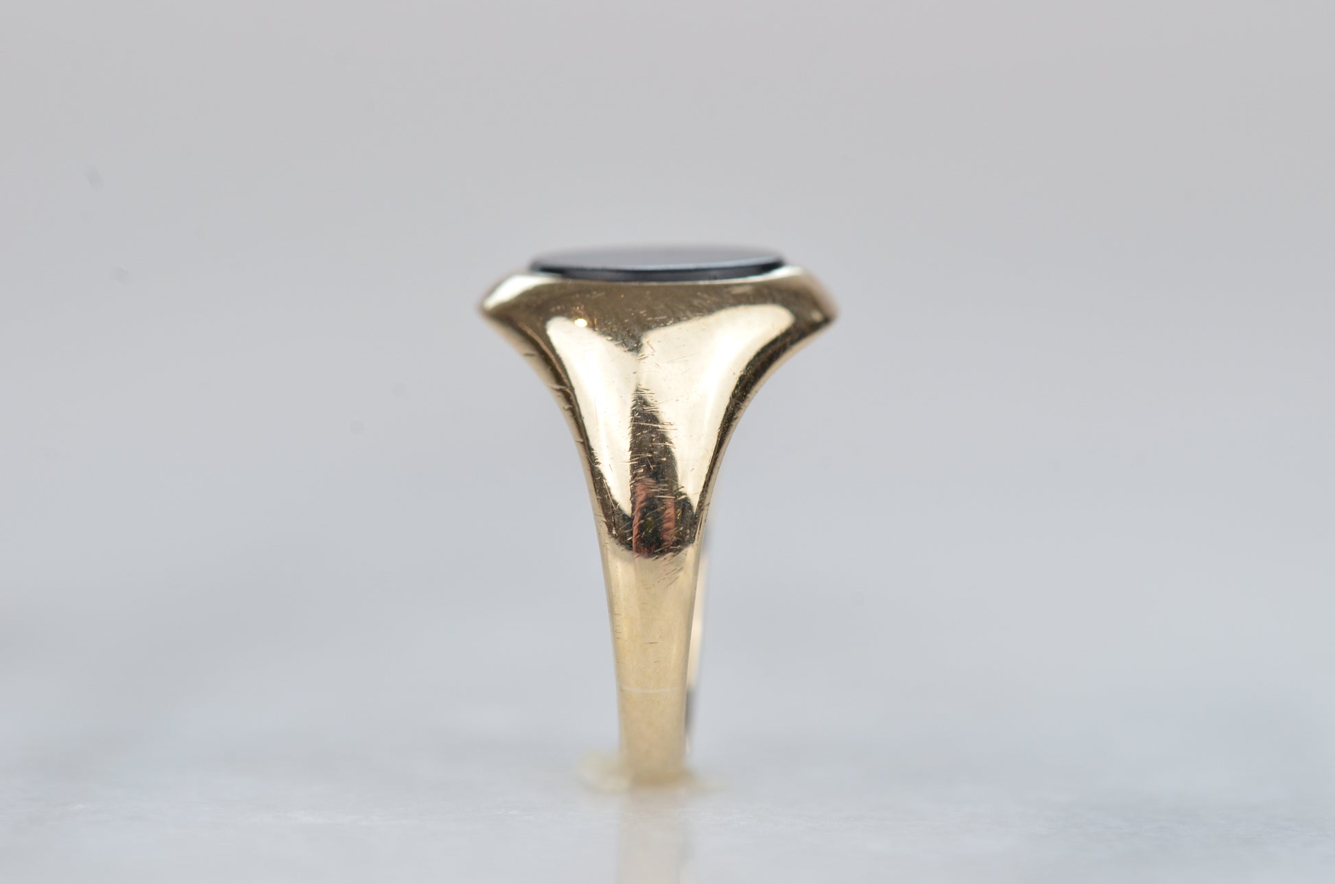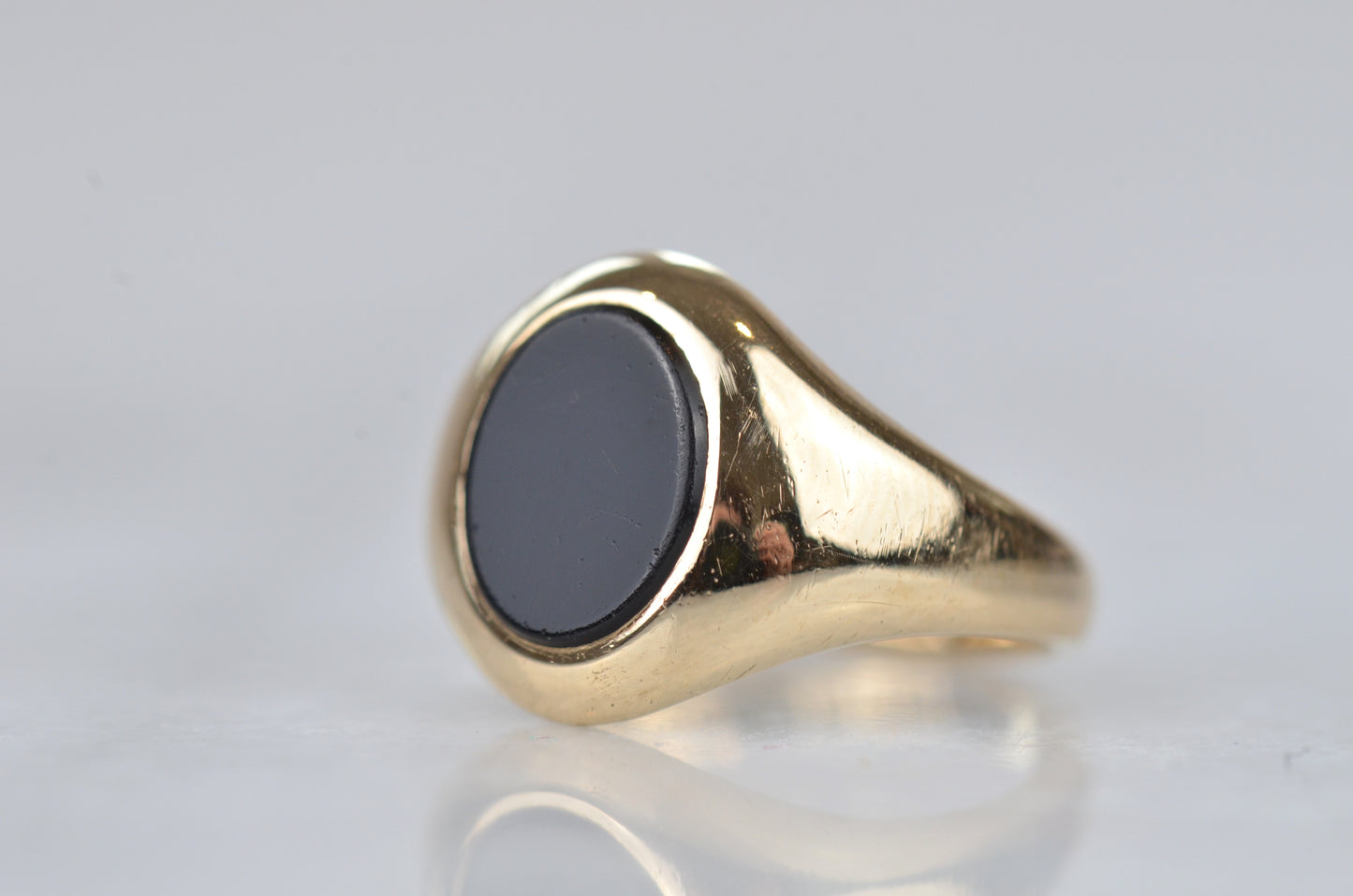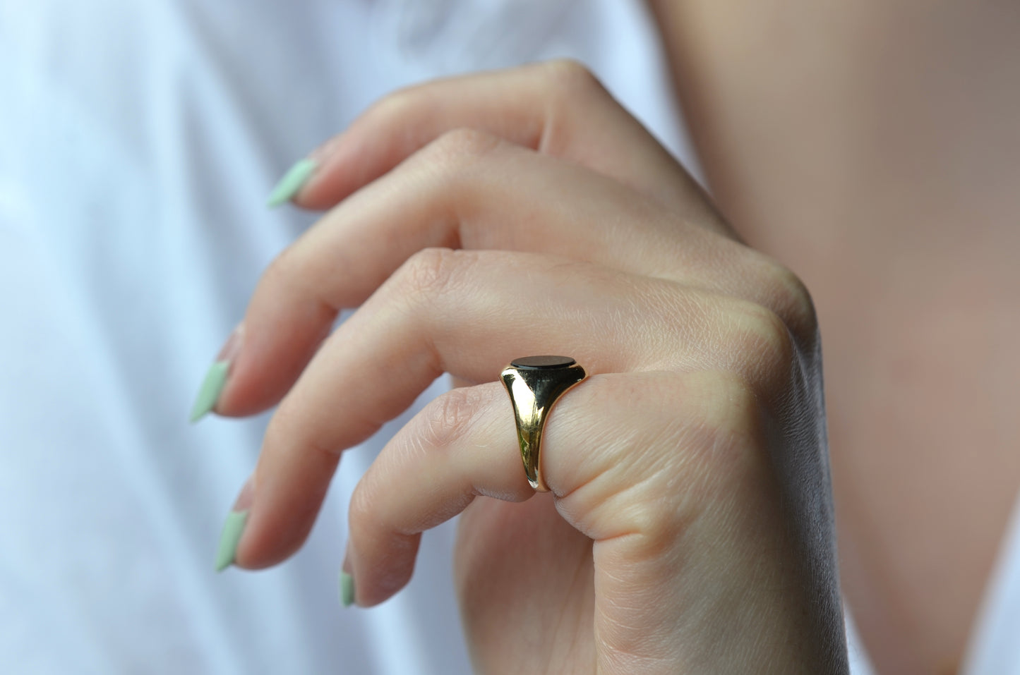 This is an absolute dream of a pinky ring and checks all our boxes: clean lines paired with smooth curves, a bold contrast between inky onyx and yellow gold, a low profile, and so comfortable you'd forget it was there if it didn't keep catching your eye! This ring is bound to be one you reach for again and again - adding a dose of glamour to jeans and a white button up, or some sexy androgynous appeal to a slinky silk dress, bold alone or grounding a whole stack.