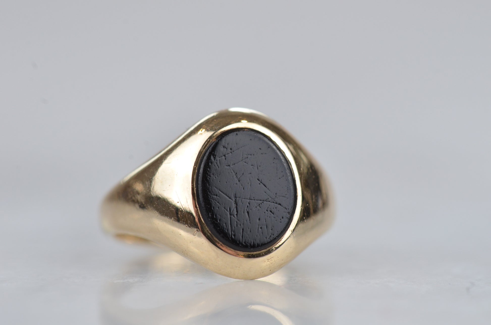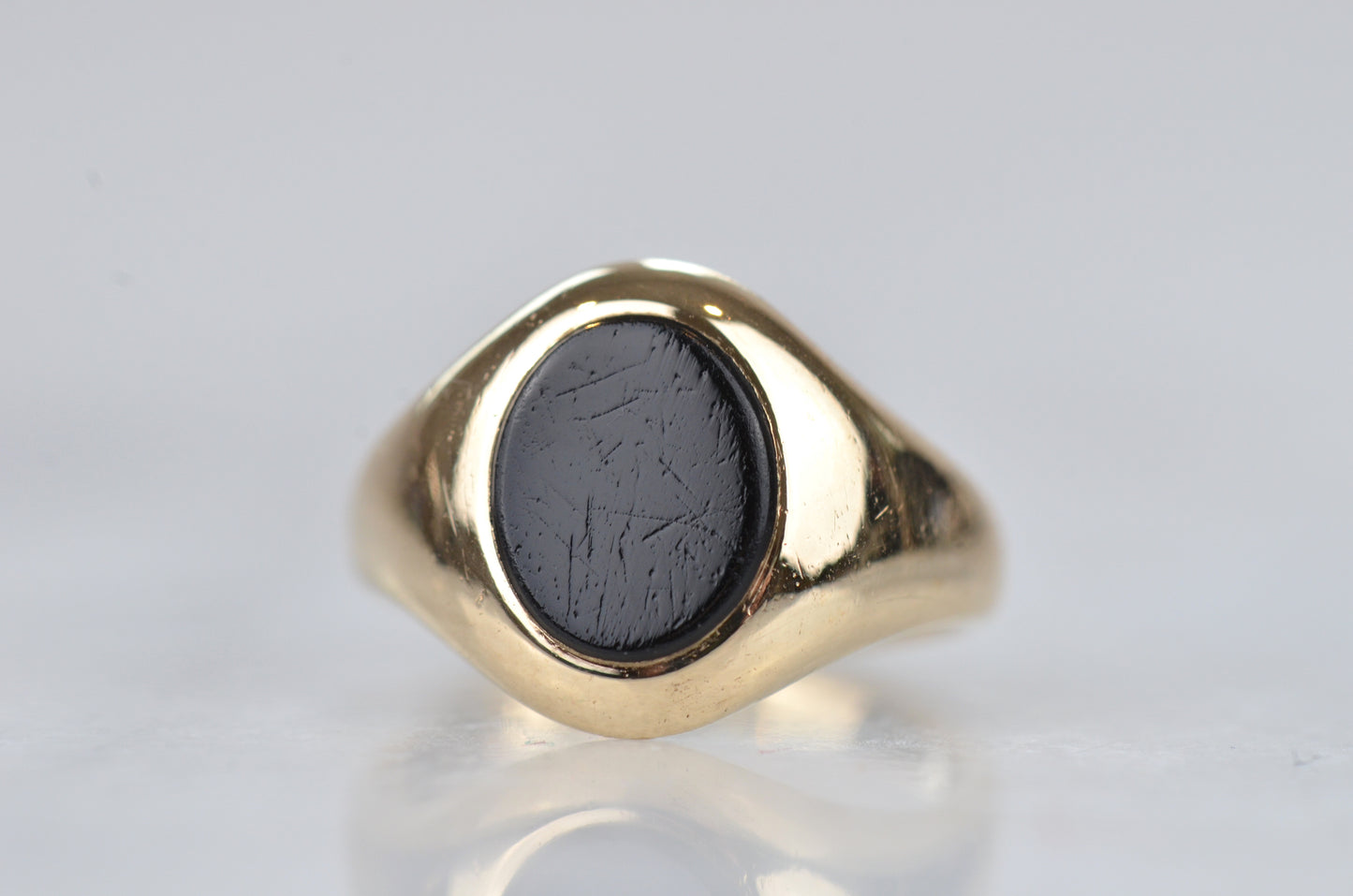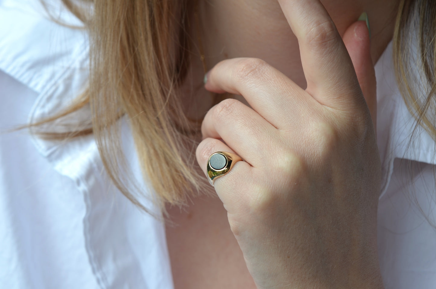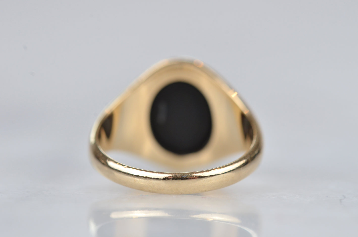 This is an absolute dream of a pinky ring and checks all our boxes: clean lines paired with smooth curves, a bold contrast between inky onyx and yellow gold, a low profile, and so comfortable you'd forget it was there if it didn't keep catching your eye! This ring is bound to be one you reach for again and again - adding a dose of glamour to jeans and a white button up, or some sexy androgynous appeal to a slinky silk dress, bold alone or grounding a whole stack.