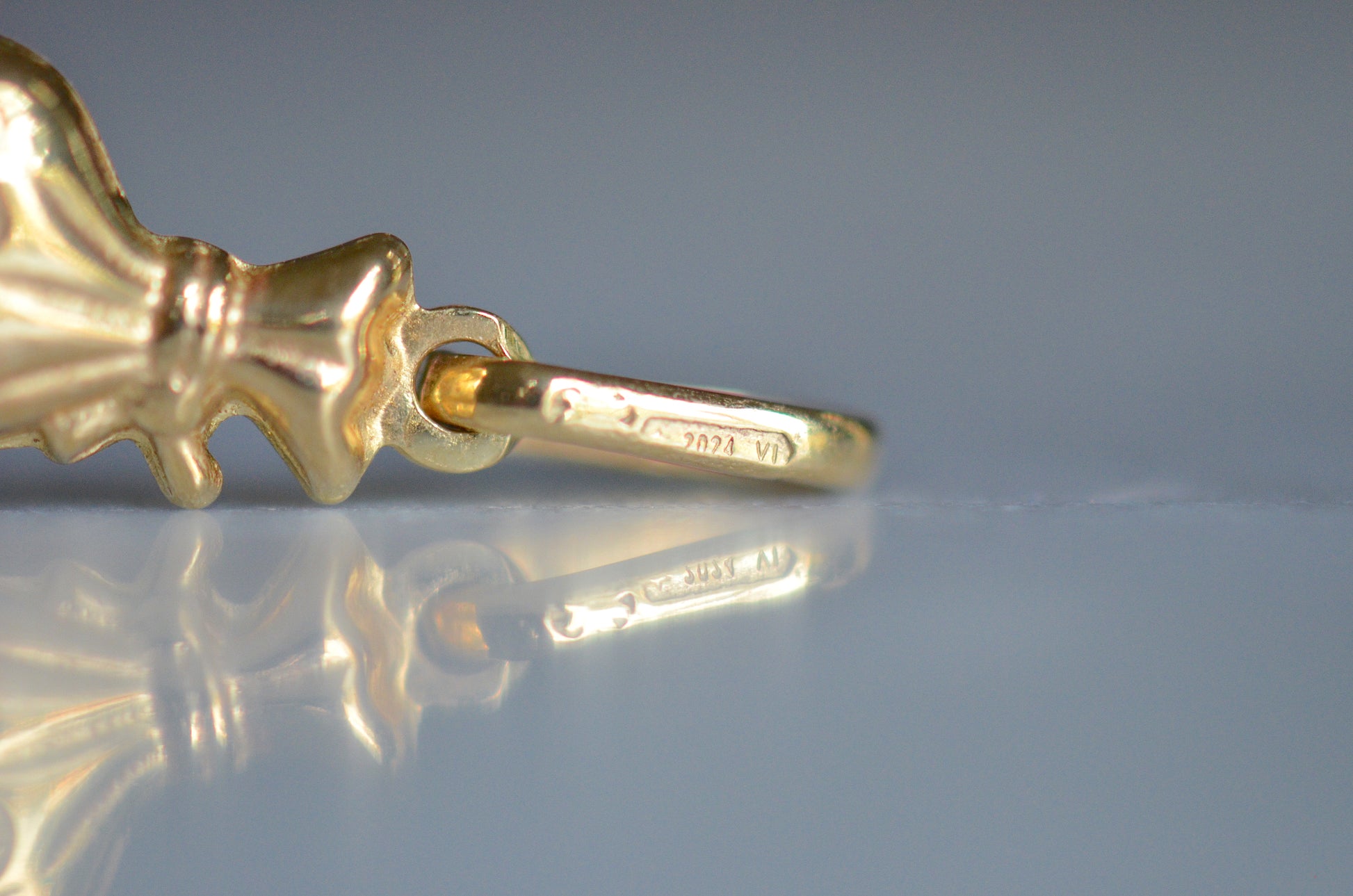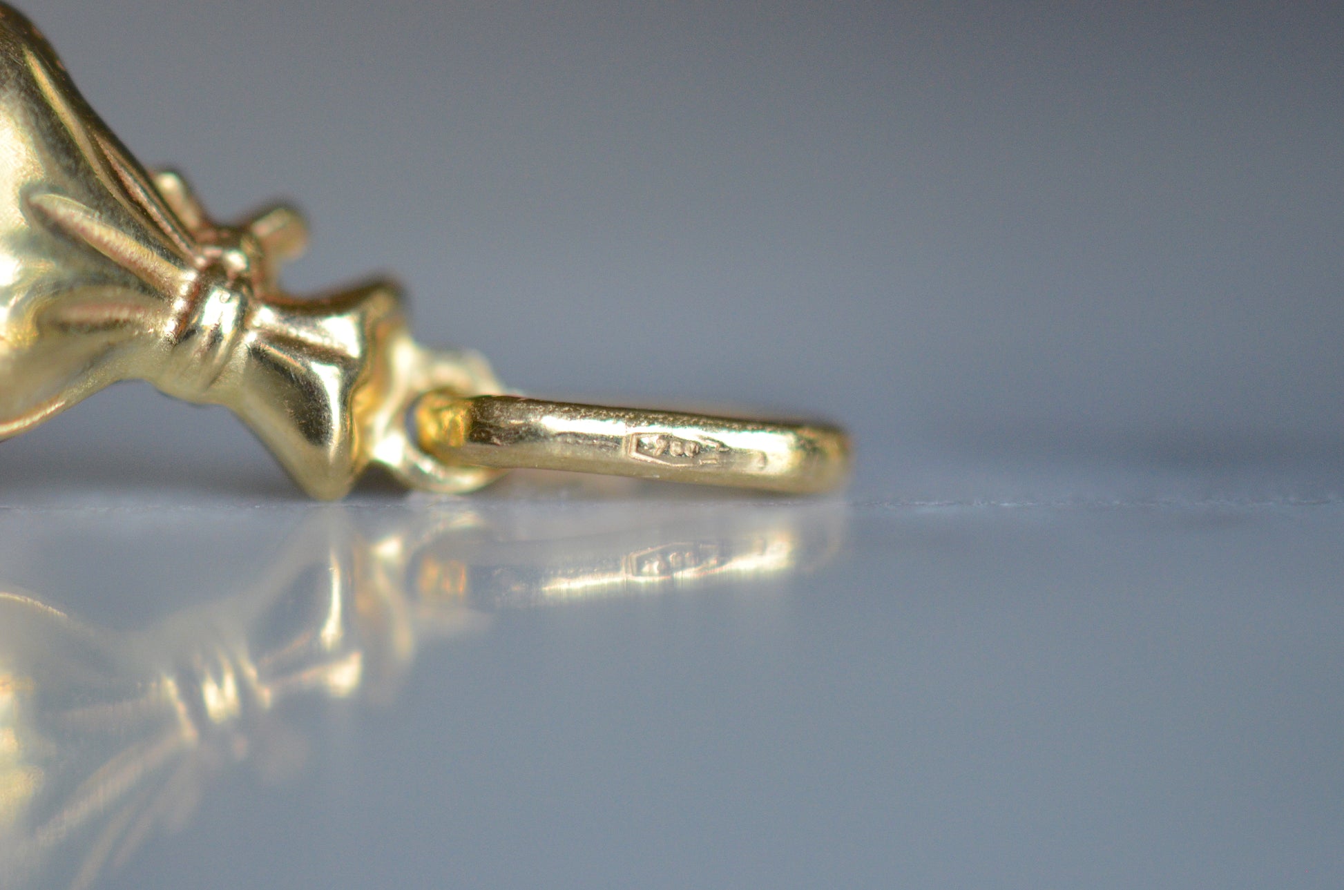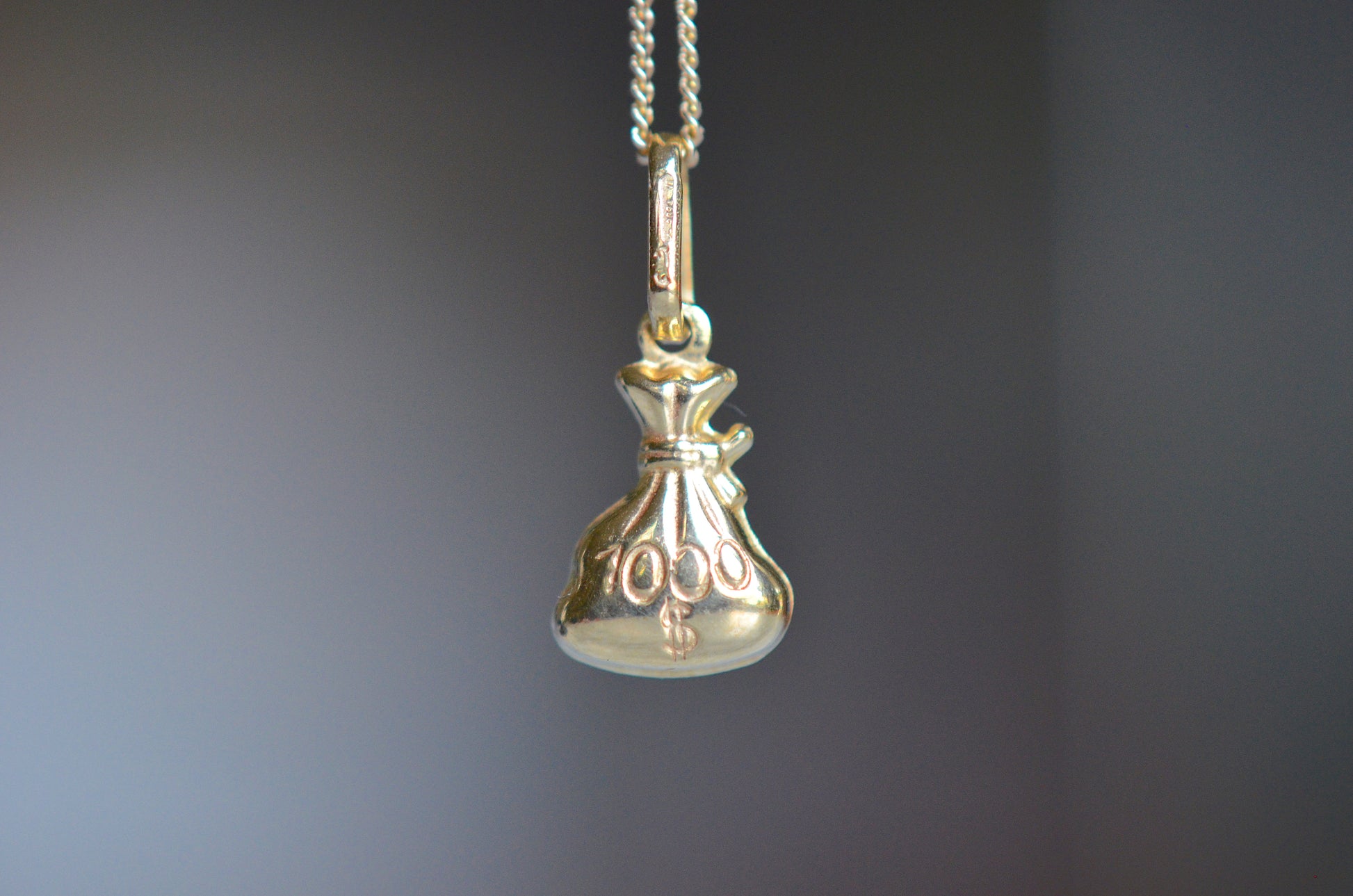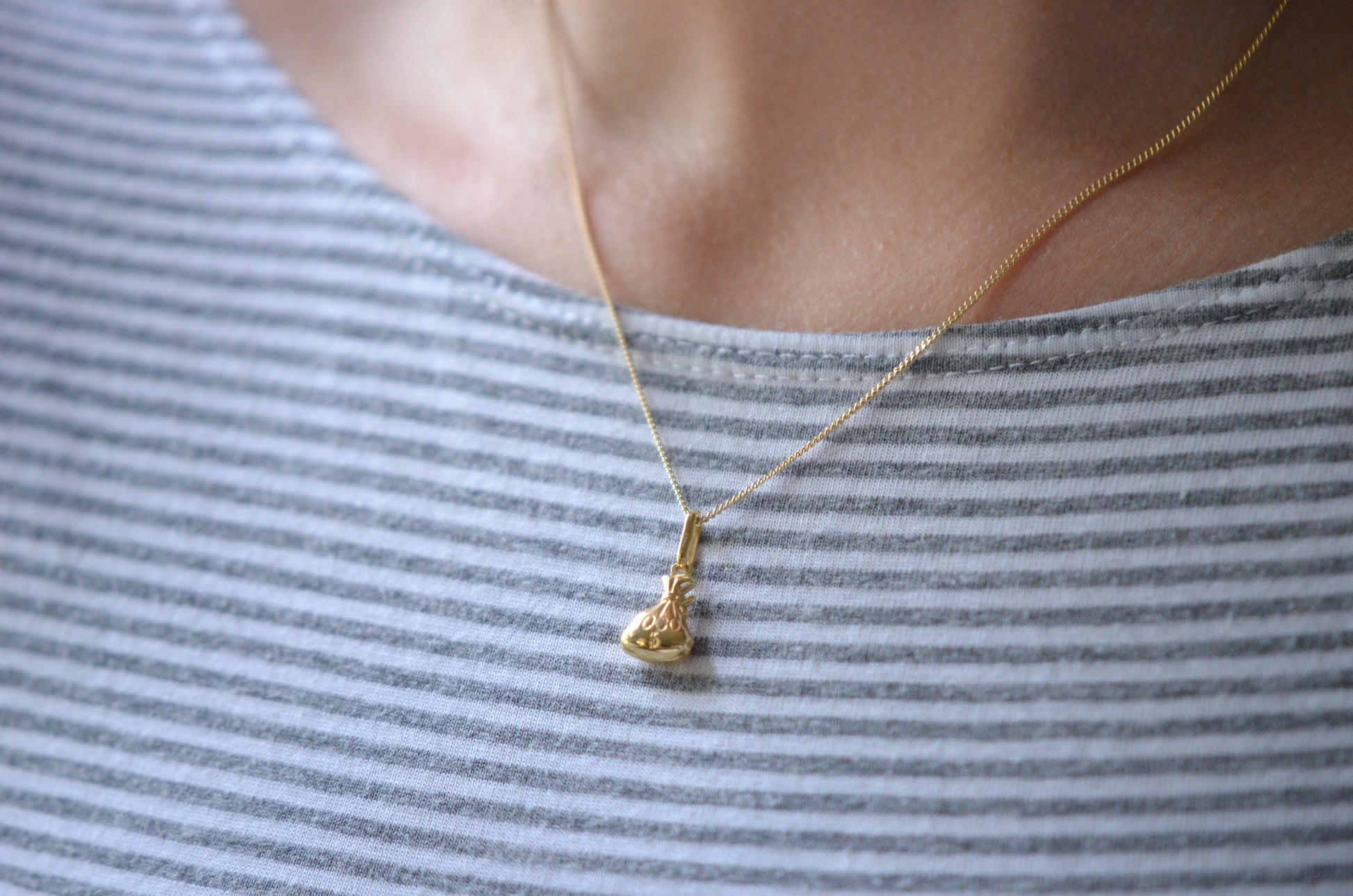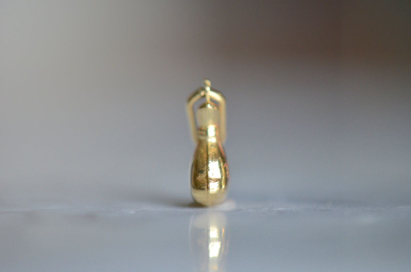 Charms were all the rage in the 1940s-1970s, and especially loved were tiny figural pieces like this bag of cash. We fantasized about finding a particularly photogenic mouse and outfitting her with a little ski mask for a photoshoot, but alas - let this piece remind you to tuck a little something away for a rainy day or that special something you've been saving for. Or, you know, to decide what you want and to just go for it, "safes" or "security" or "laws" be damned!