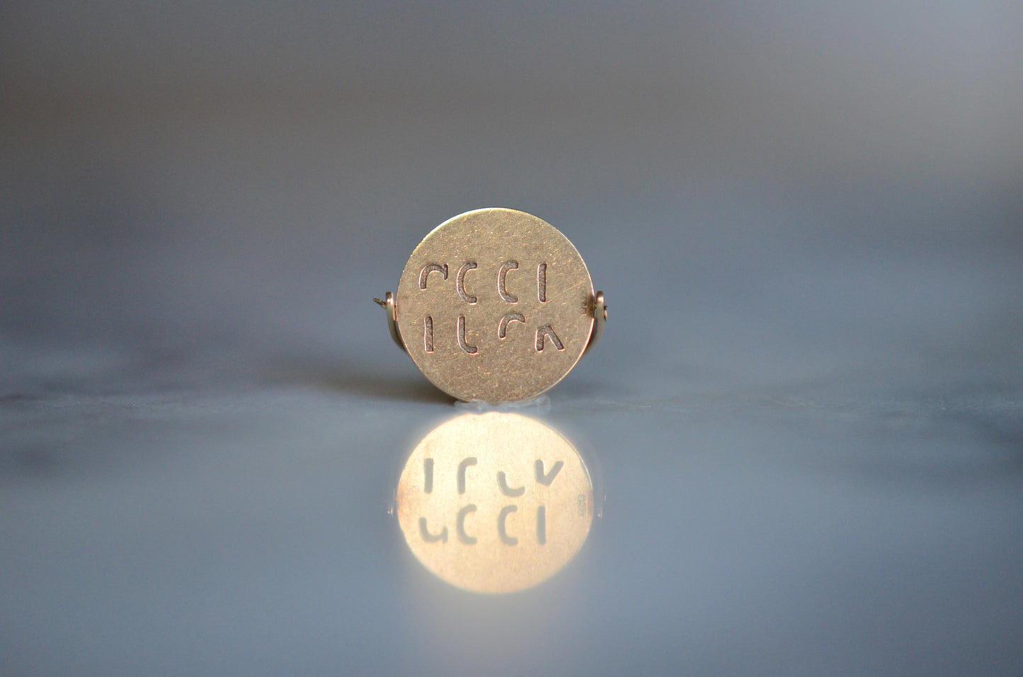 Straight from the mid-century charm craze, these delightful pieces can be added to your own charm bracelet or necklace, or worn alone on a chain to give them all the focus. Each side of the disc bears only a portion of each letter, creating a secret message that is only revealed when the disc is spun and in motion.
