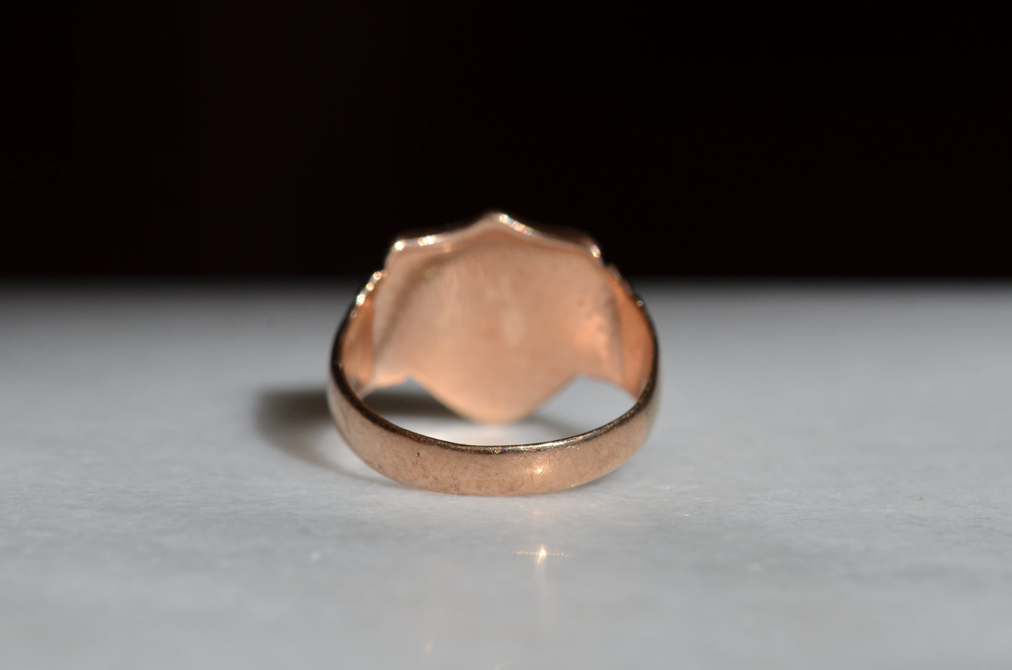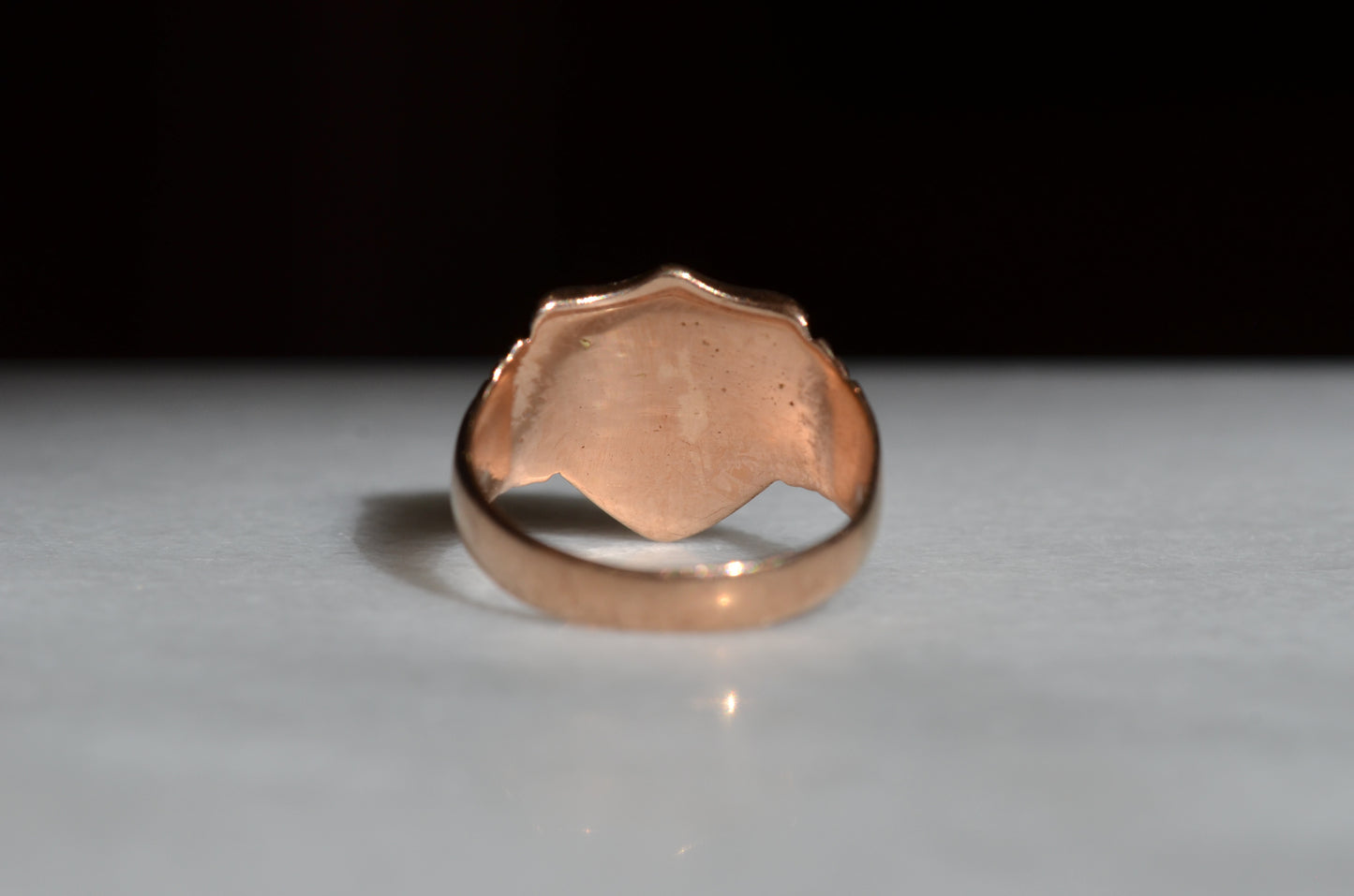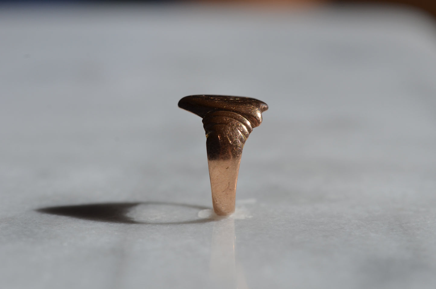 • Face of ring measures 13.8mm wide, 11.7mm across, with a 2.1mm rise; back of band measures 3mm wide and 0.7mm thick