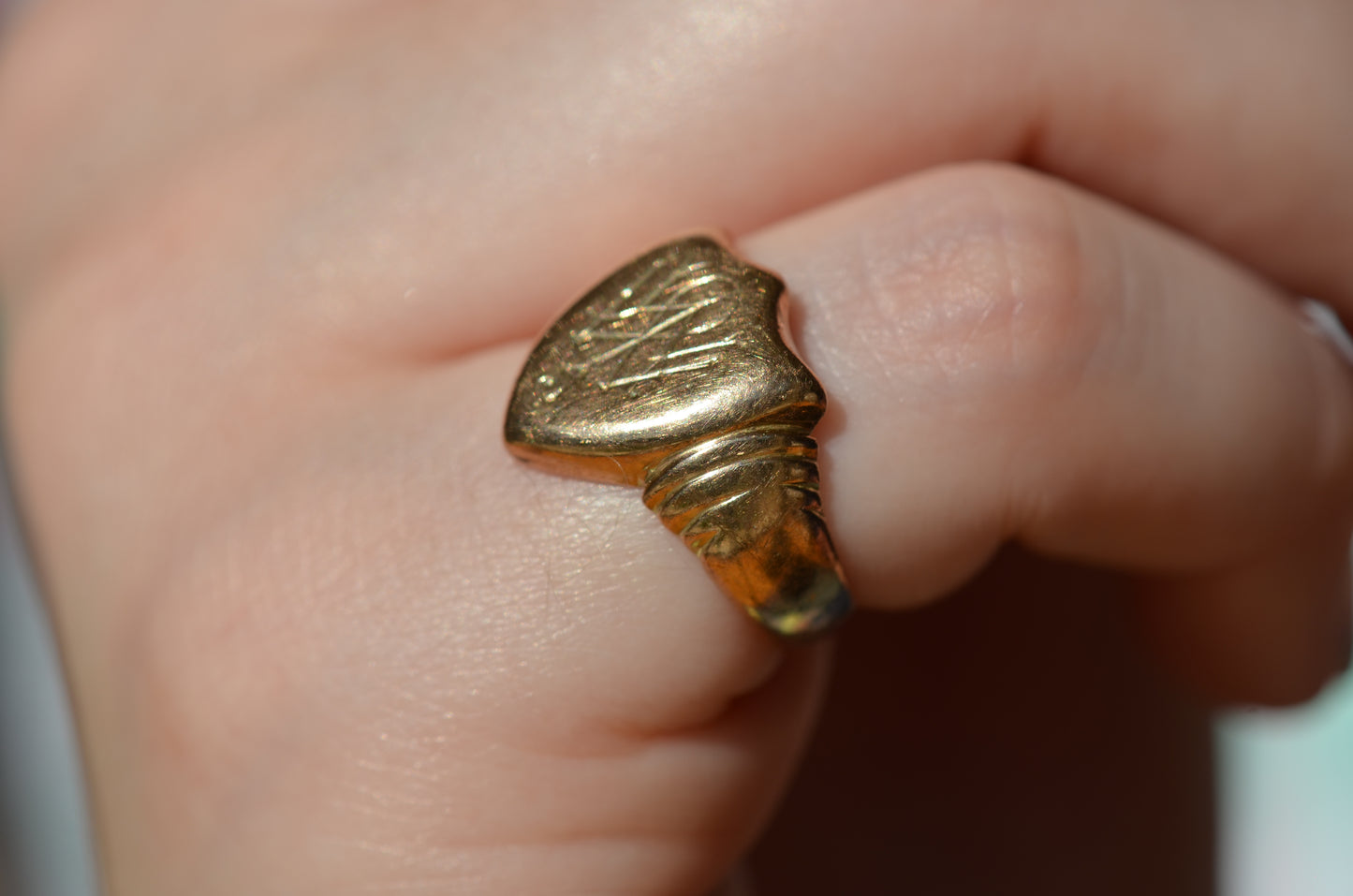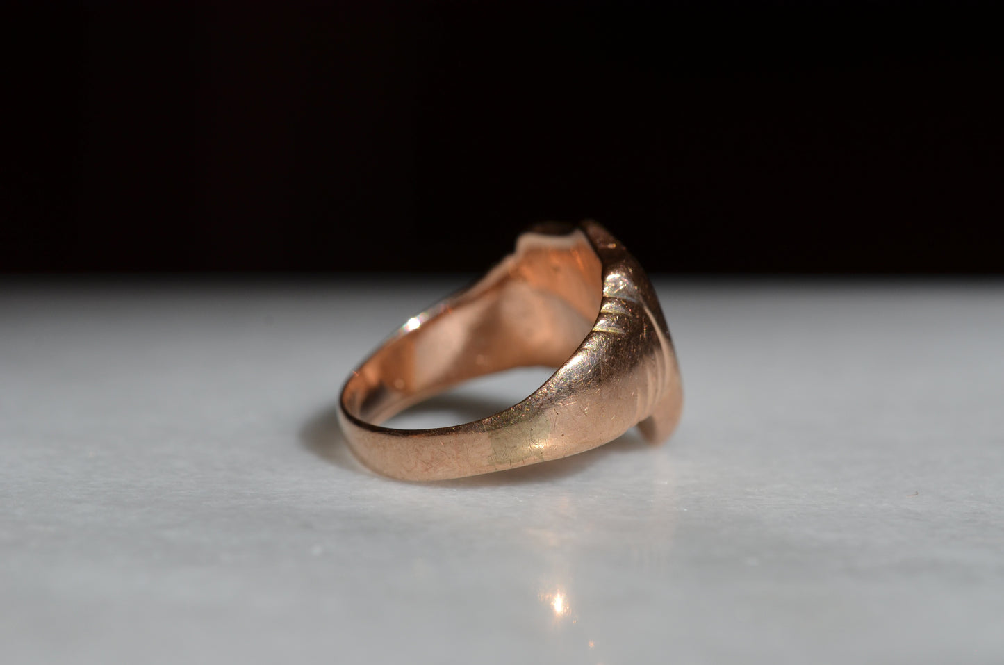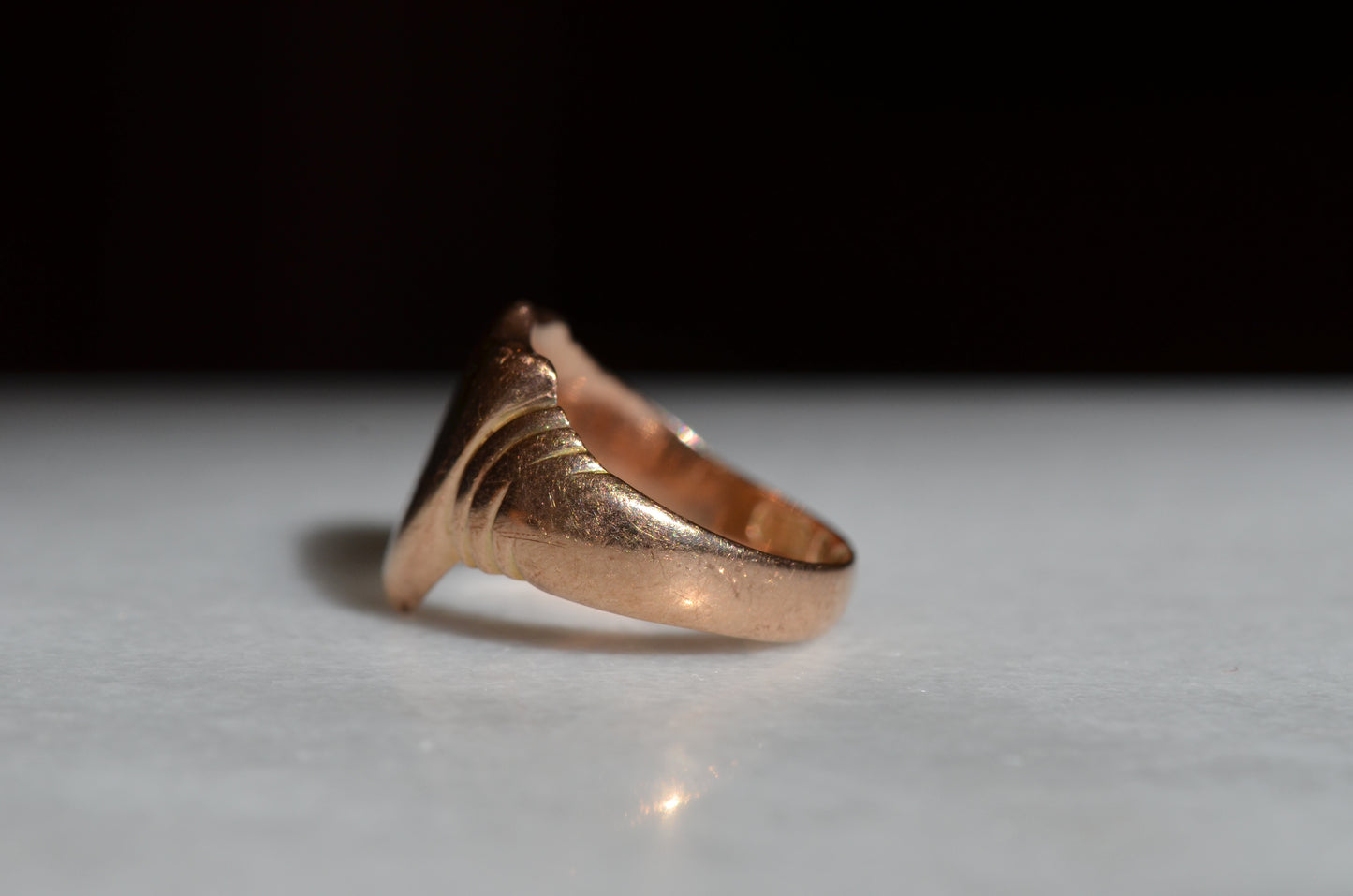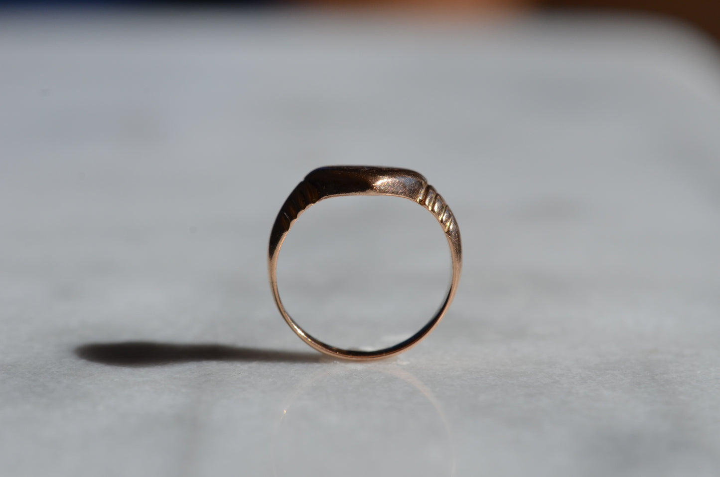 • Face of ring measures 13.8mm wide, 11.7mm across, with a 2.1mm rise; back of band measures 3mm wide and 0.7mm thick