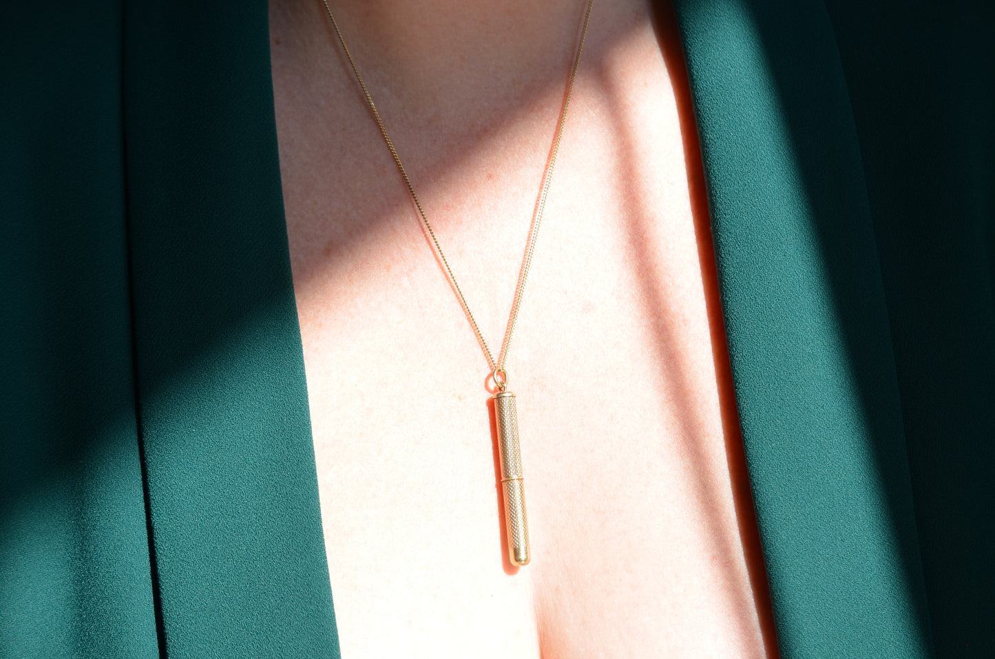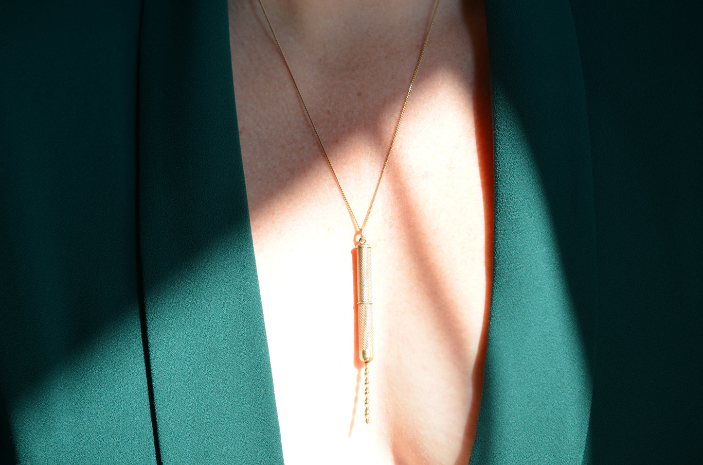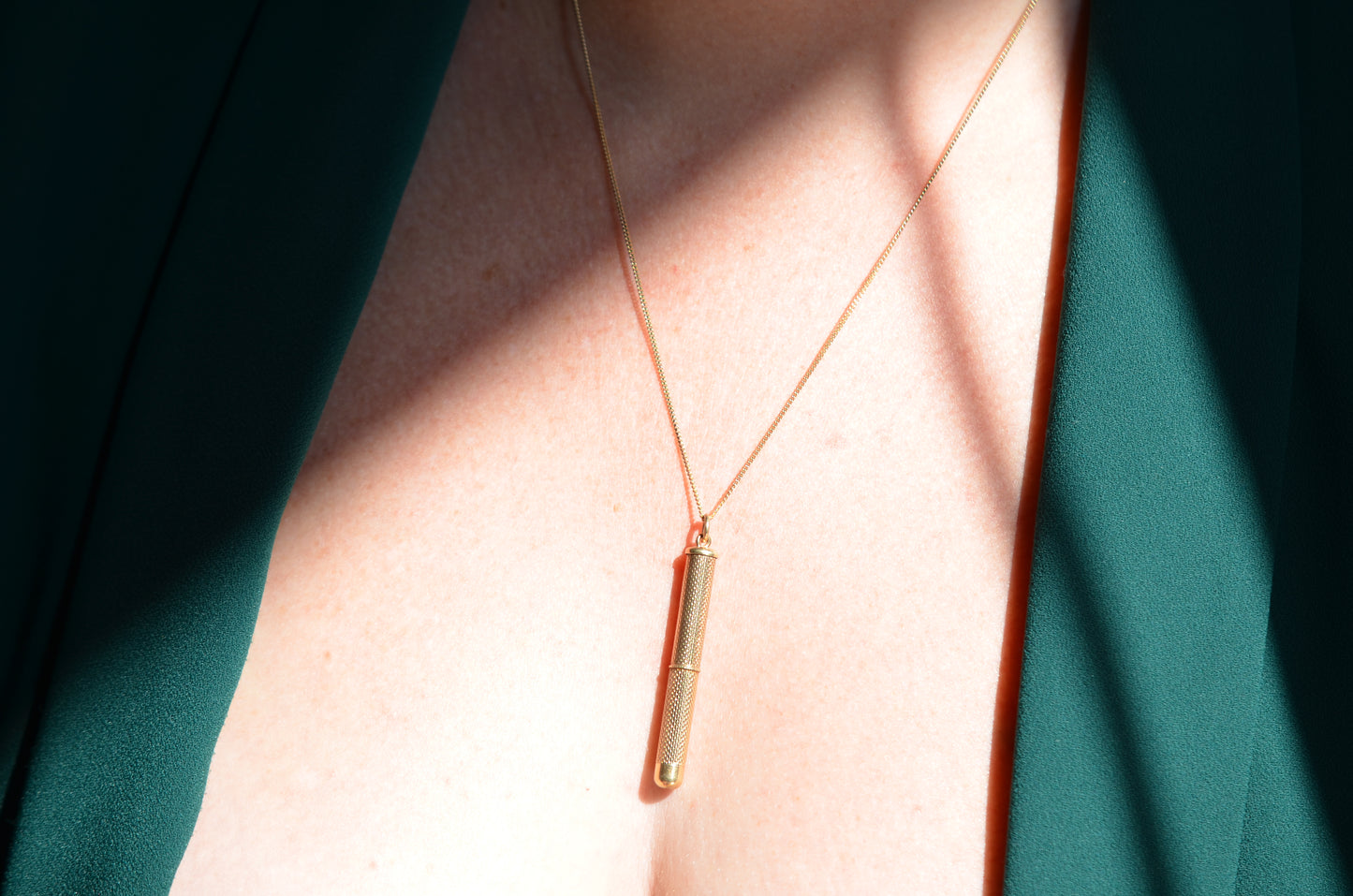 This positively glamorous object - a solid gold propelling toothpick, with a swirling, hypnotic form - calls to mind a bygone era of items built to last a lifetime, while also communicating a certain something about the style and means of their owner. Though crafted in the 1970s, this piece feels like something more than half a century older, reminiscent of the popular Edwardian era retractable pencils before it, and even midcentury cocktail swizzlers styled as pendants. This dreamy article ensures that you'll never be caught looking any less than your best.