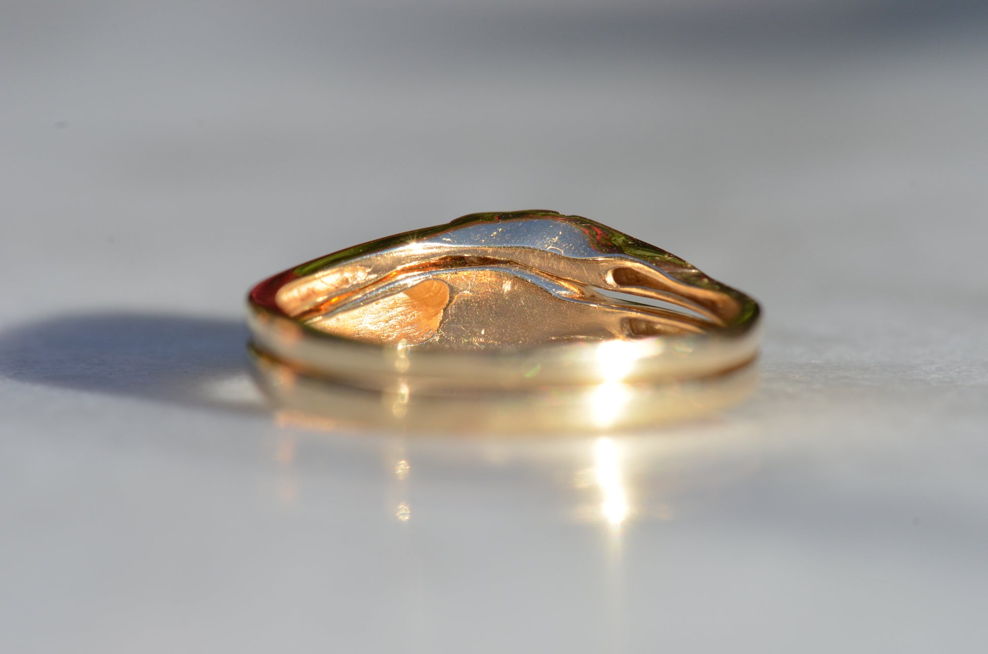 • Face of ring (assembled) measures 6.2mm wide, 12mm across with a rise of 4.1mm; back of band measures 3.4mm wide and 0.9mm thick