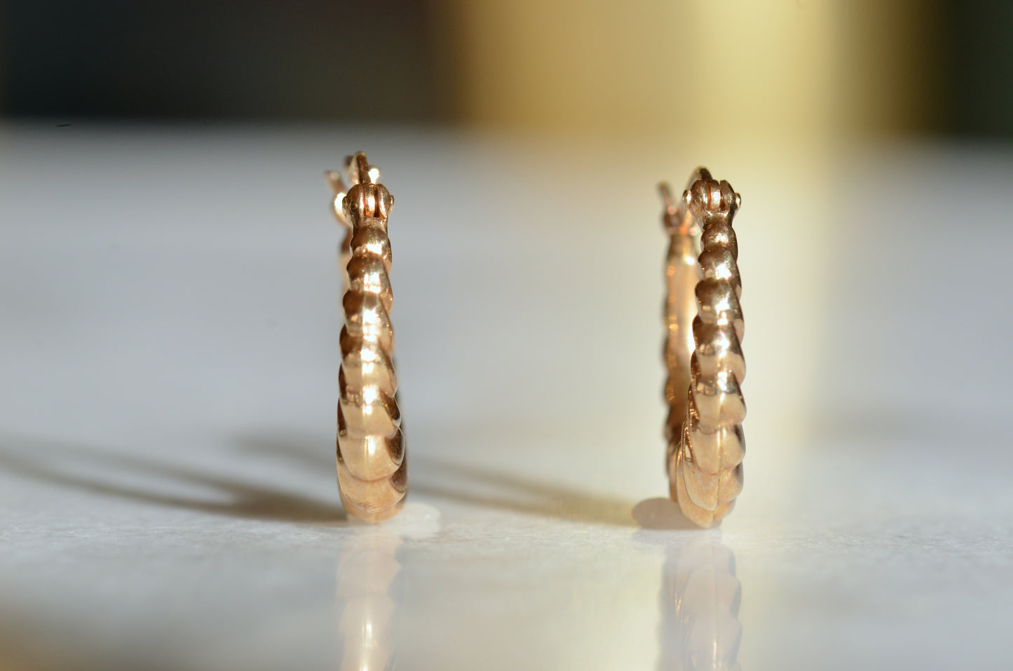 Small, slim, and perfectly detailed, these lovely little hoops are the kind you'll slip in and never want to change. Lightweight and comfortable but with a soft rippling texture that perfectly captures the light, these hoops are sure to delight.