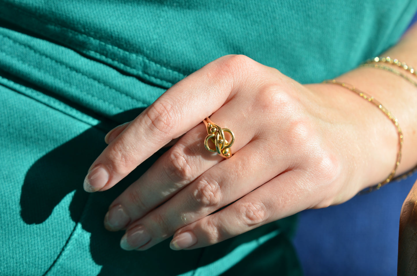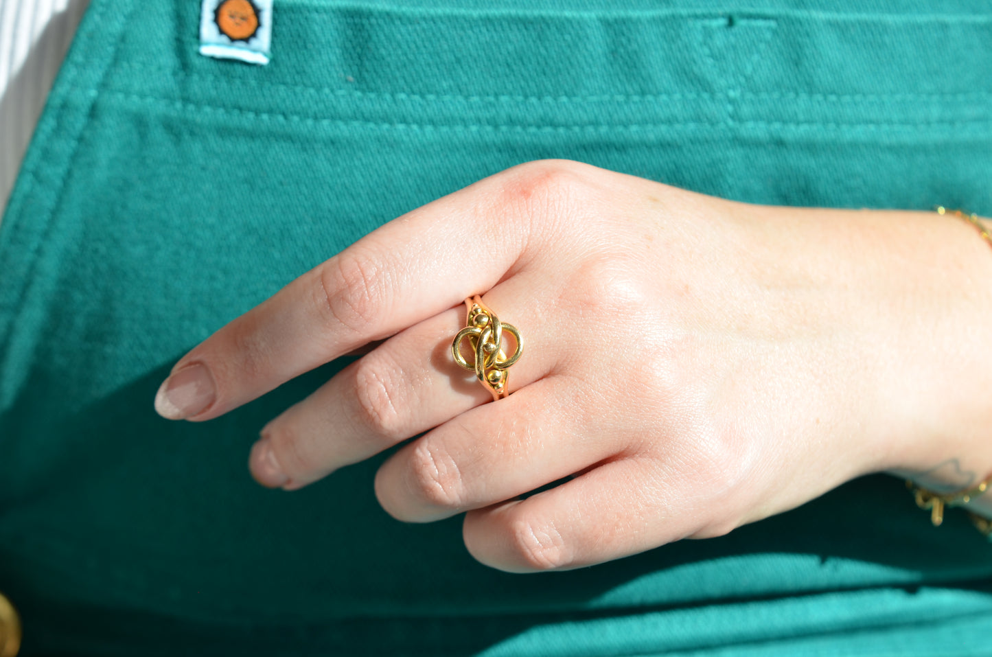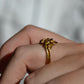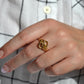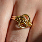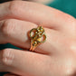 A lovely Edwardian ring in the style of a lovers' knot, with two bands locked together in a pair of nestled knots. Perfect as a symbol of affection and commitment between lovers (and dreamy as an alternative engagement or wedding ring), friends, or family.