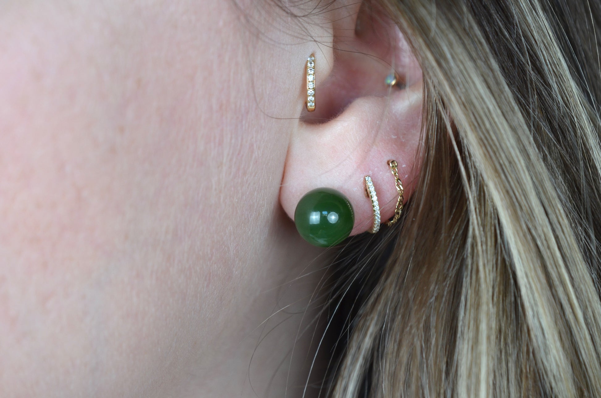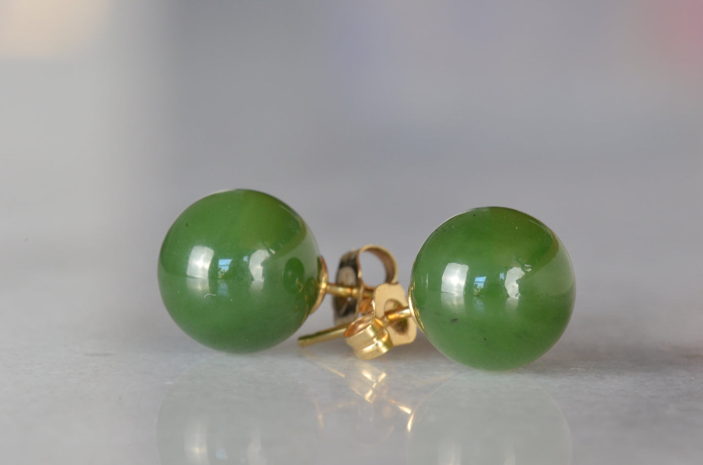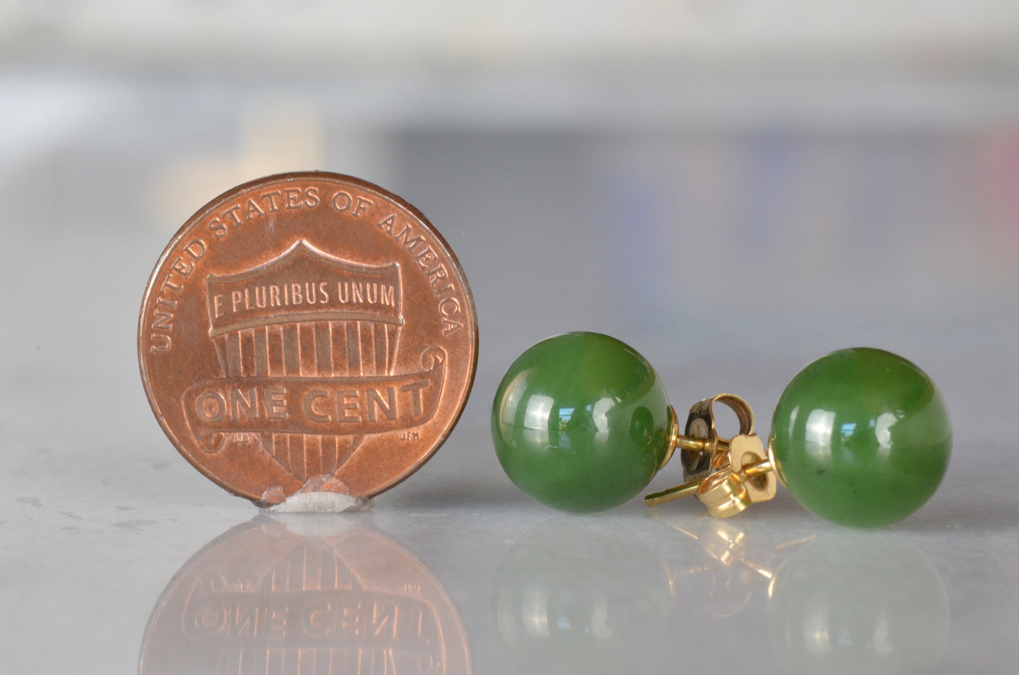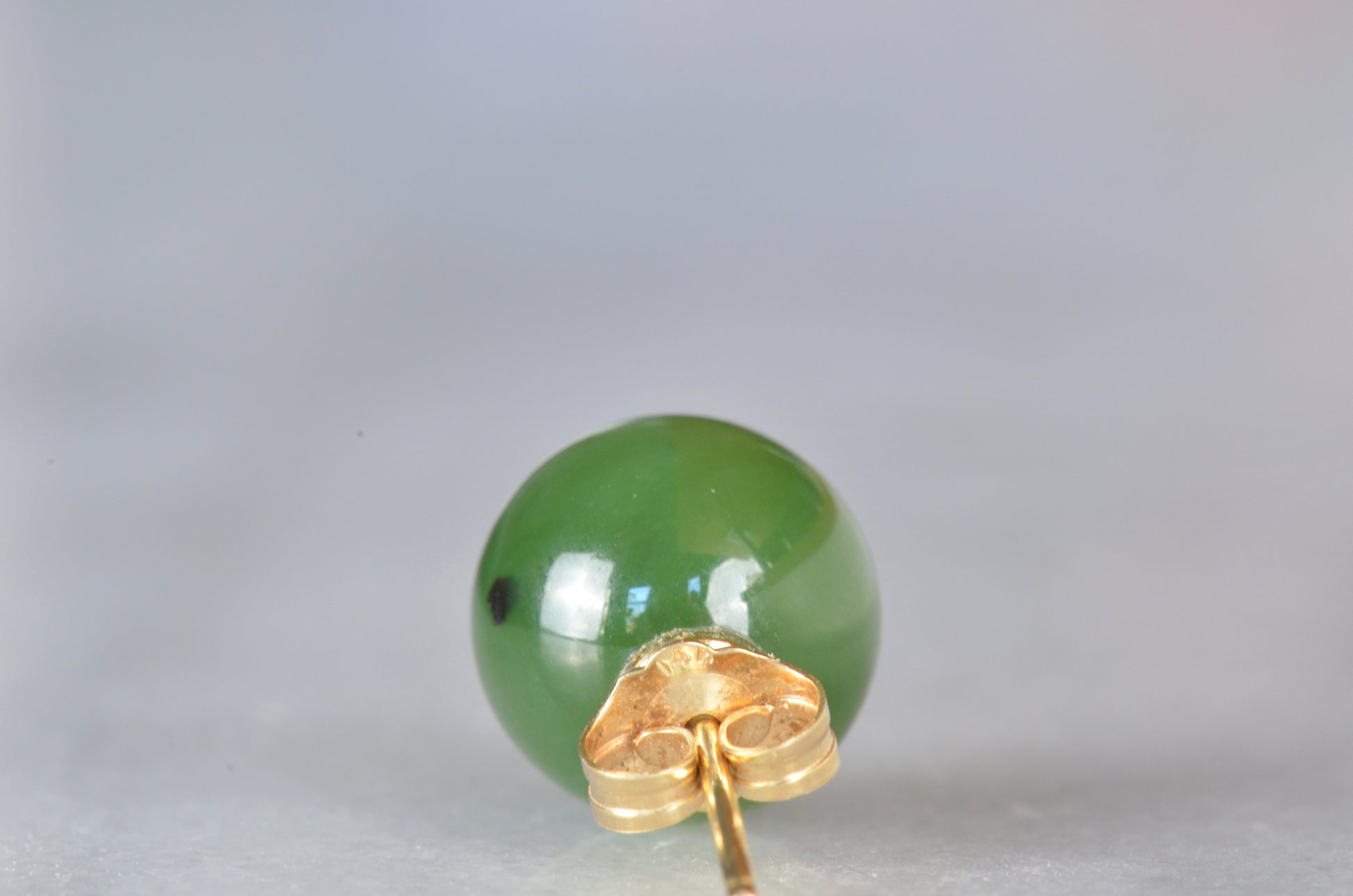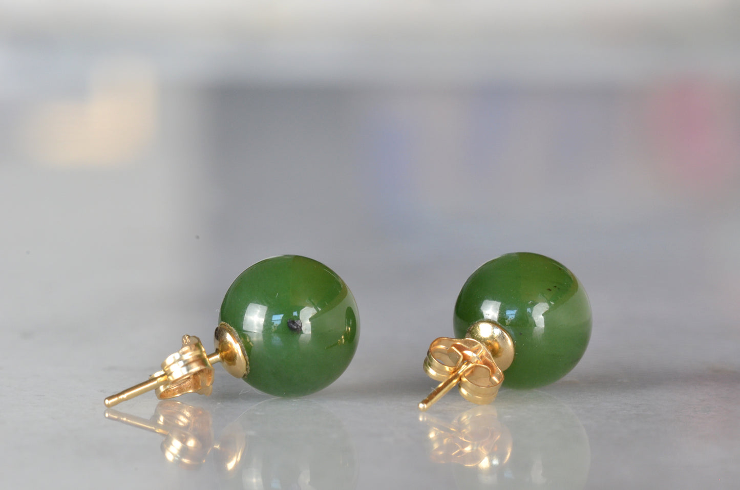 Rich and vibrant, these earrings are simple in design but pack a punch in their impact. Deep nephrite jade spheres in the perfect shade to match your beloved pothos, monsteras and fiddle leaf fig trees - a must for the gardener or plant lover!