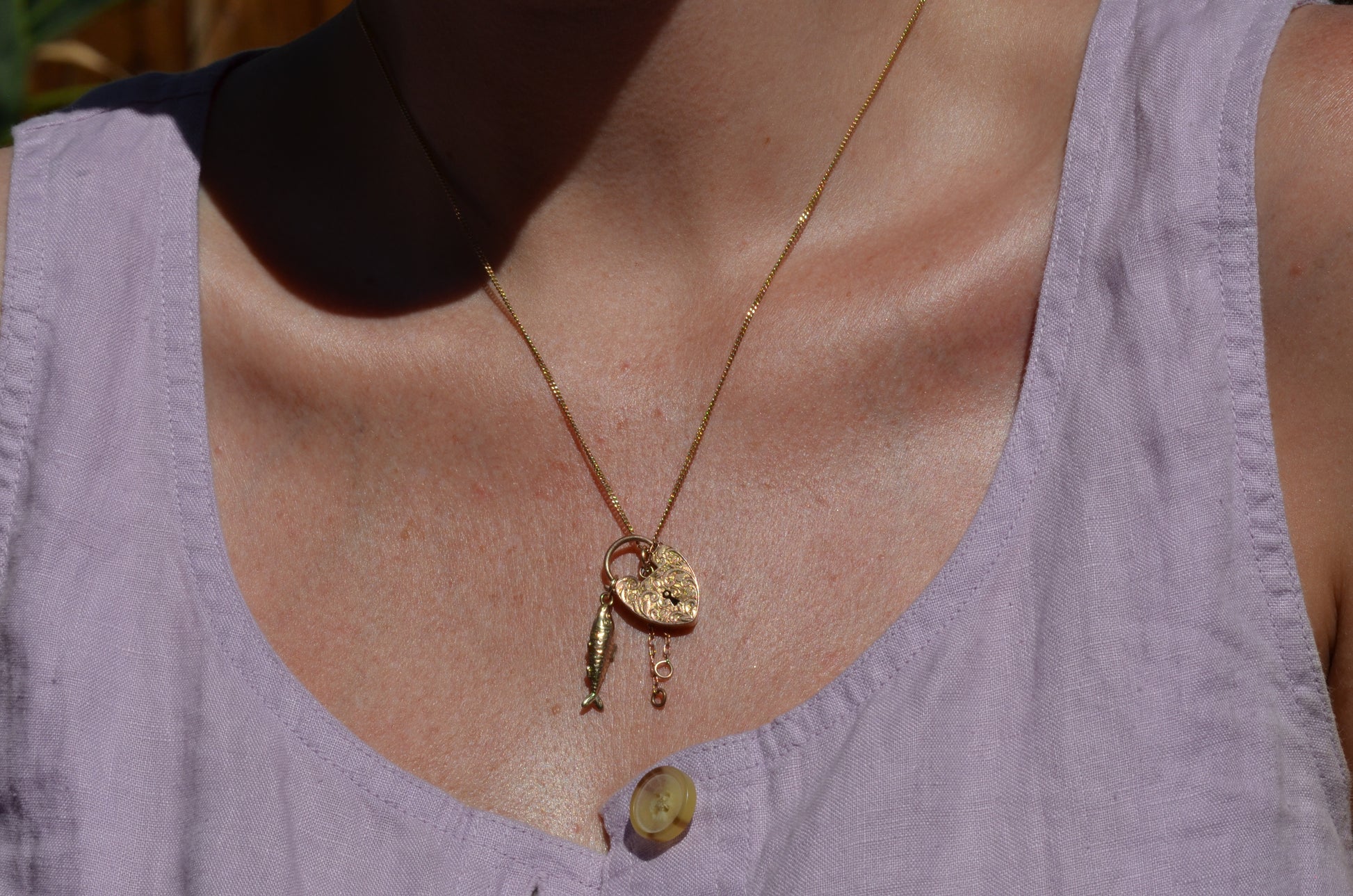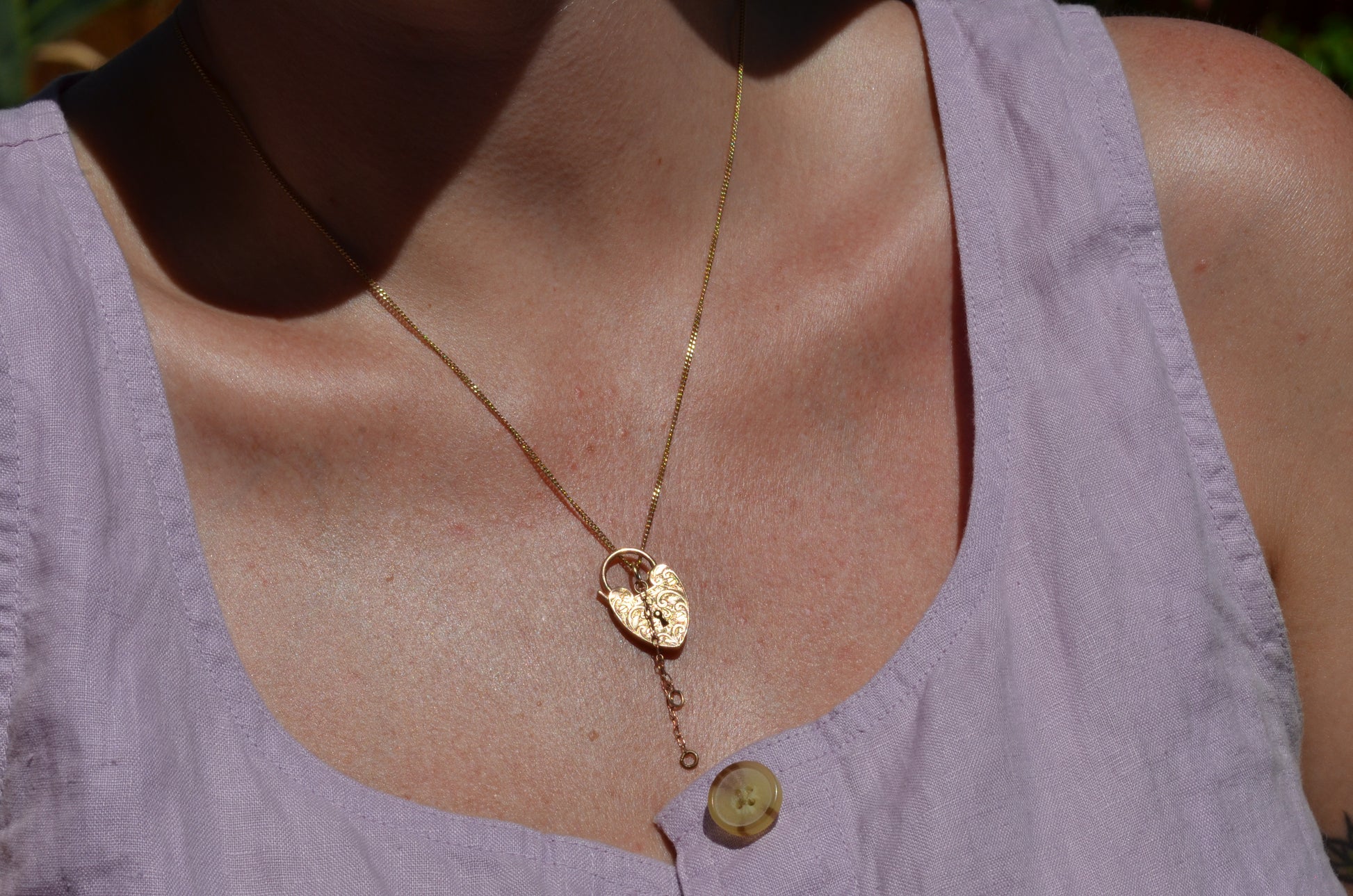 A classic style loved in the Victorian and Edwardian eras (and revived mid-century!), these fun and functional padlocks were used as bracelet clasps, with a small loop holding them secure along a safety chain. Now and then we find a lock that's been separated from its original bracelet, and we love how versatile they are - wear it alone as a pendant, or as a charm ring clustering your favourites, or to enhance the clasp on your own favourite chain. The perfect gift for the one who can unlock your heart, or for yourself as a reminder to keep safe that which you love.