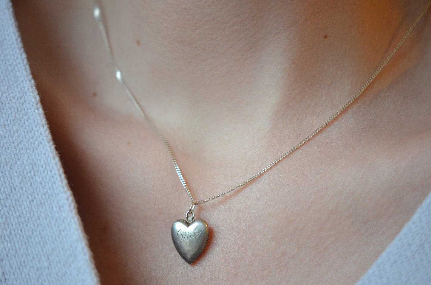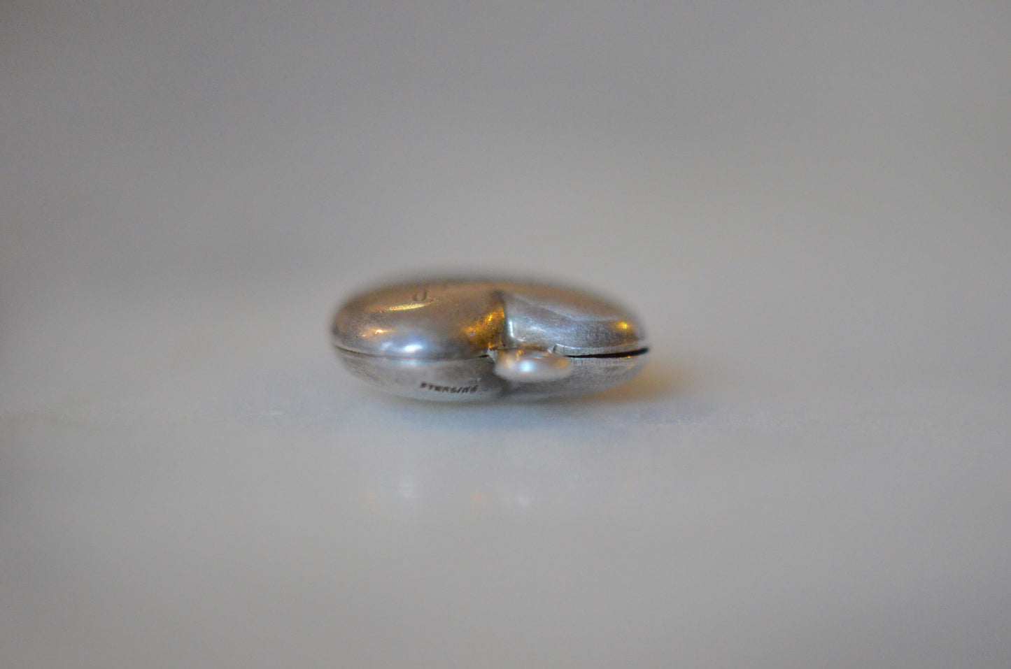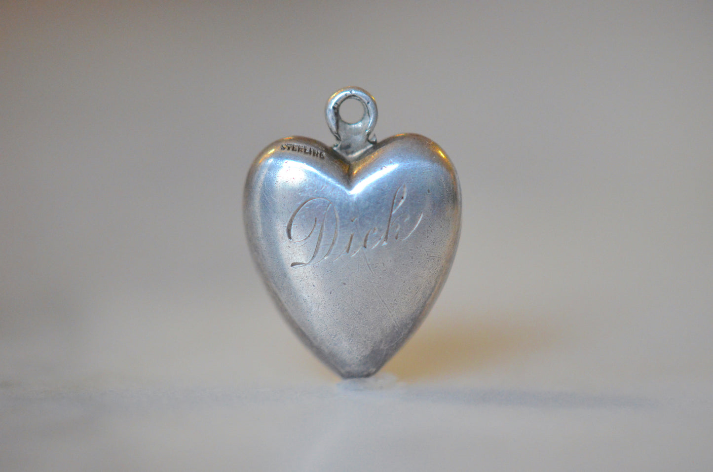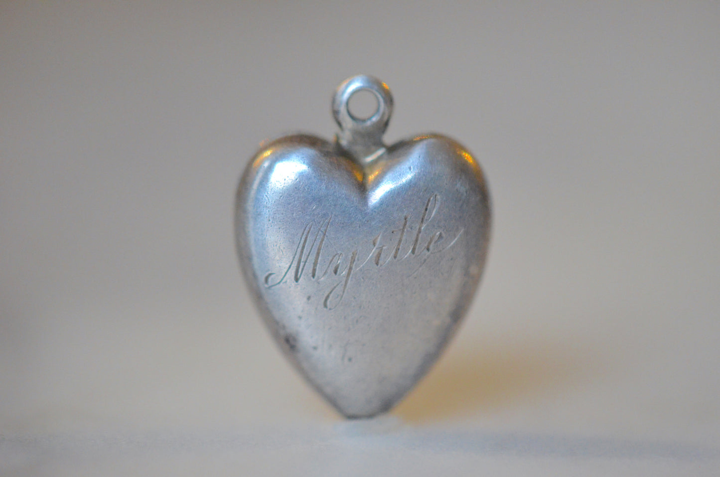 The warm patina on this retro silver charm is like a soft embrace, and we love to imagine the sweet couple who committed their love to metal on this charm. The soft puff of the heart looks almost like a locket, but was die struck and folded together to create a hollow, lightweight volume that catches the light just right.