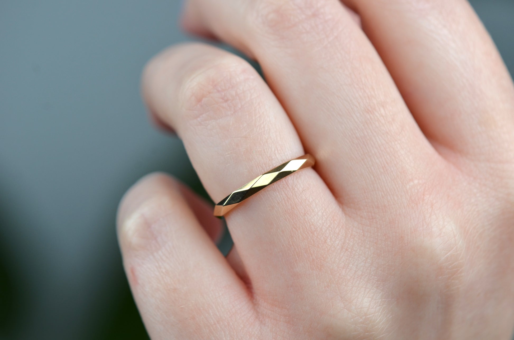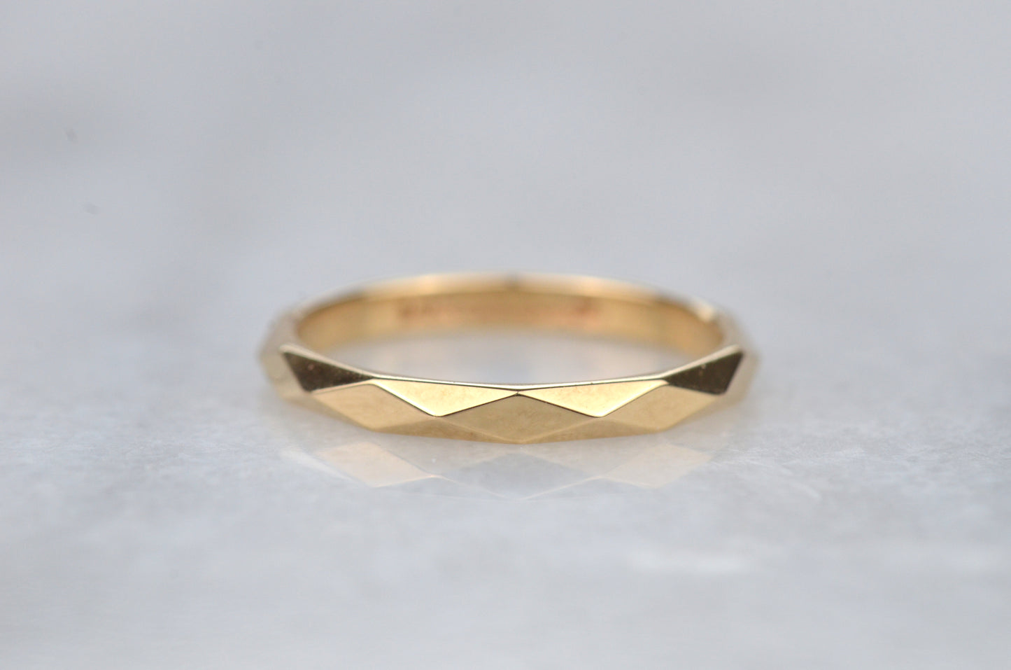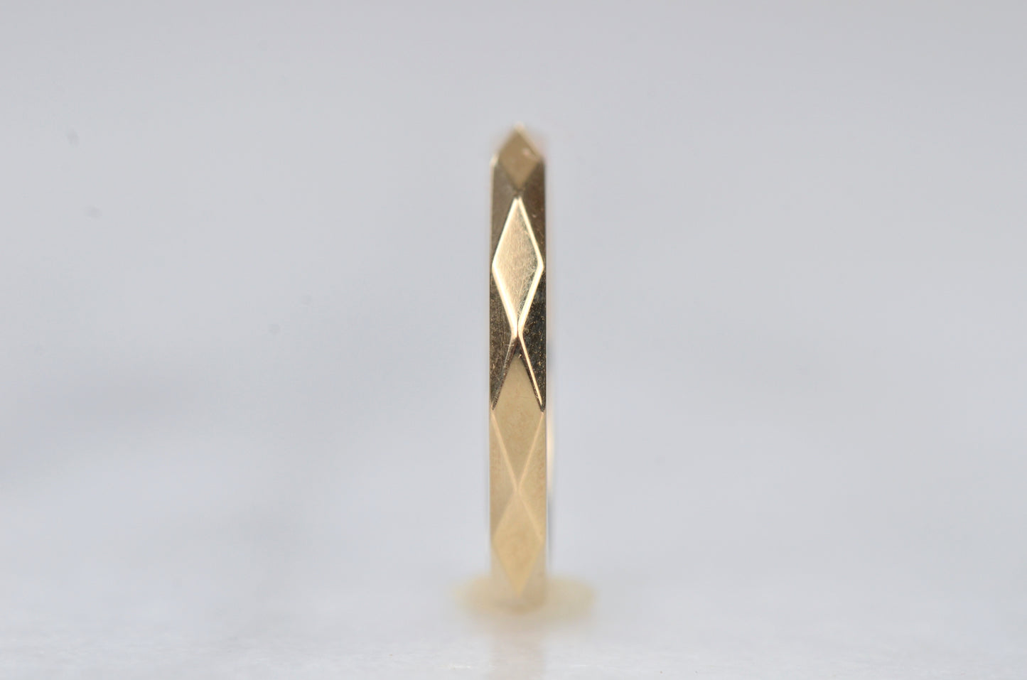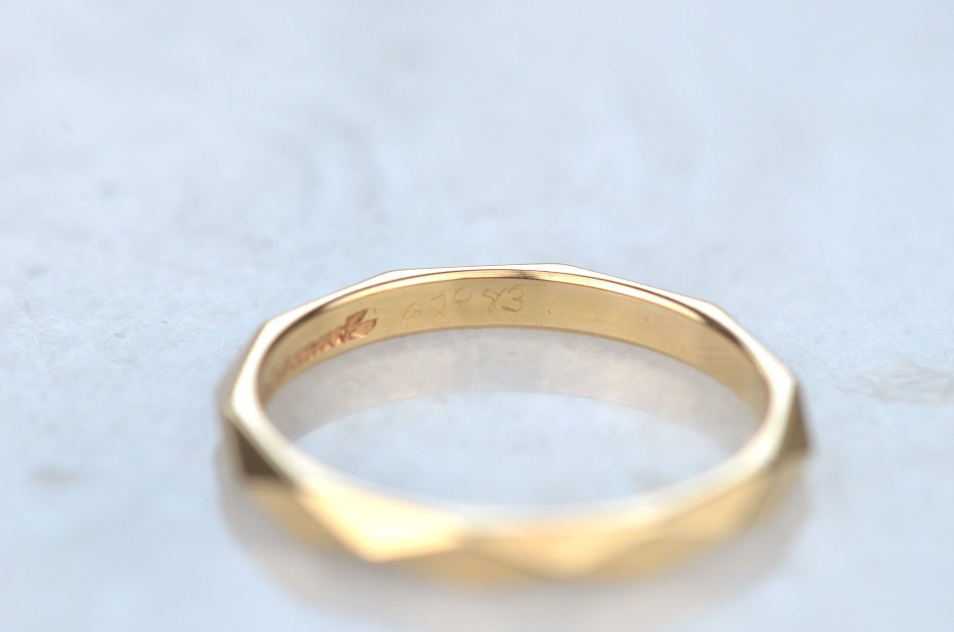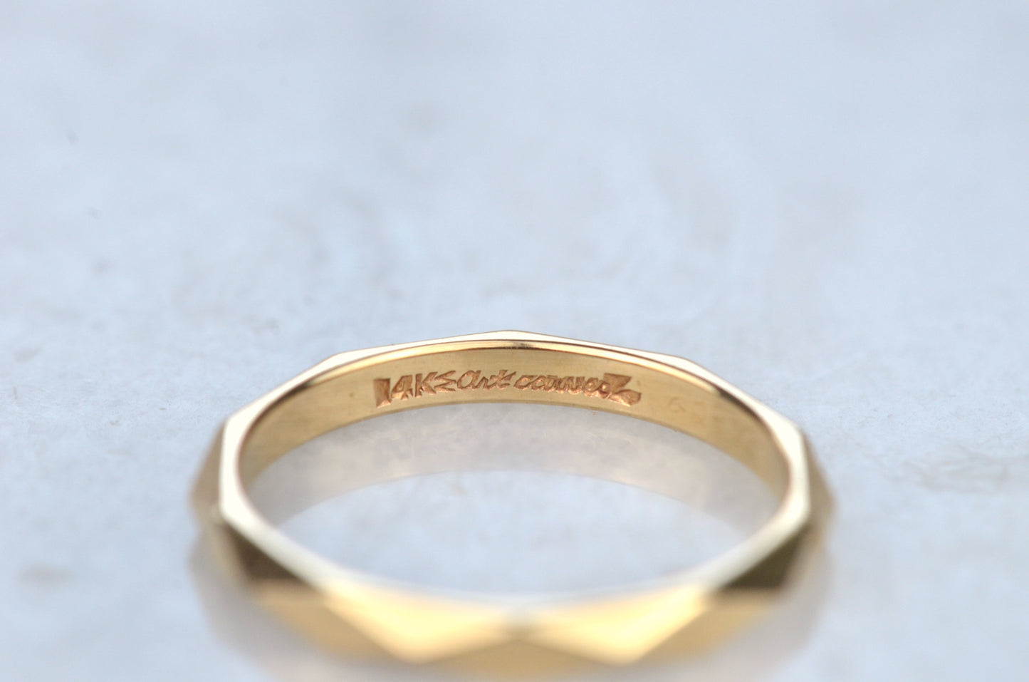 My absolute favourite band, I confess - I wear this exact ring as my own wedding band, and was thrilled to find another, albeit in near pristine condition. Sleek and smooth, boldly geometric yet subtle enough to wear every day, this ring has complemented without competing with every ring I've paired with it. Crafted by historic New York jewelry manufacturers J.R. Wood & Sons under their storied Artcarved brand, it's easy to see how a firm founded in 1850 continues to be in operation today with a reputation for standout wedding bands that hold up to the test of time. Perfect as a wedding band, stacking ring, or everyday staple.