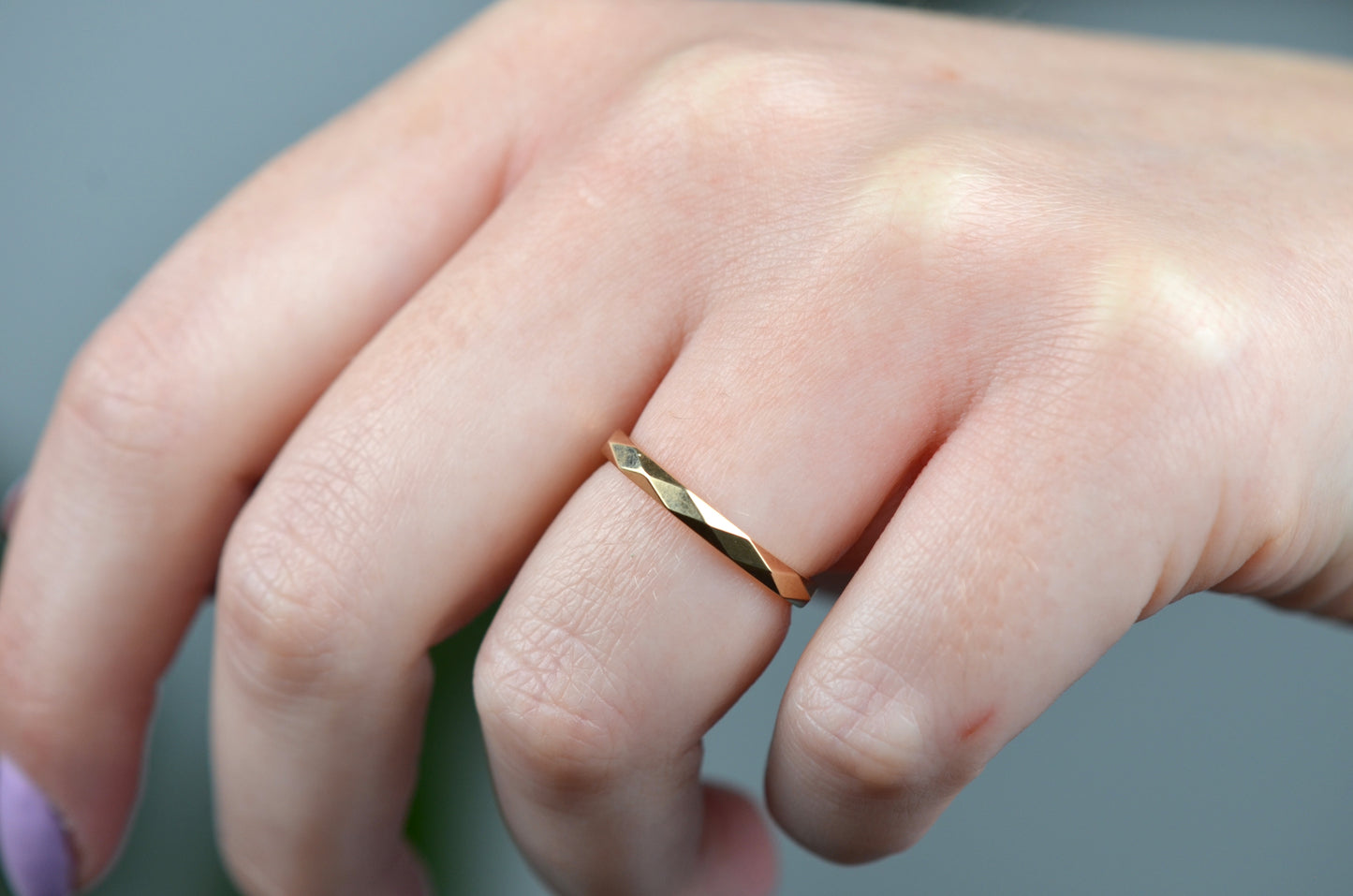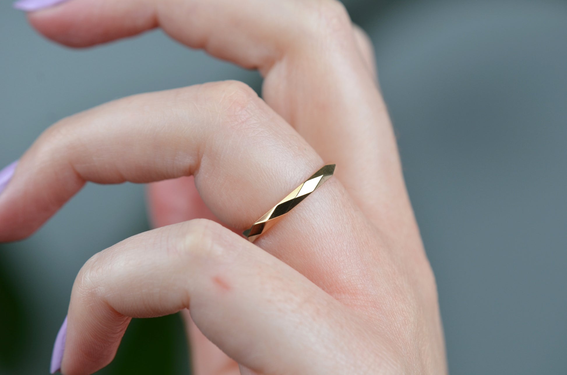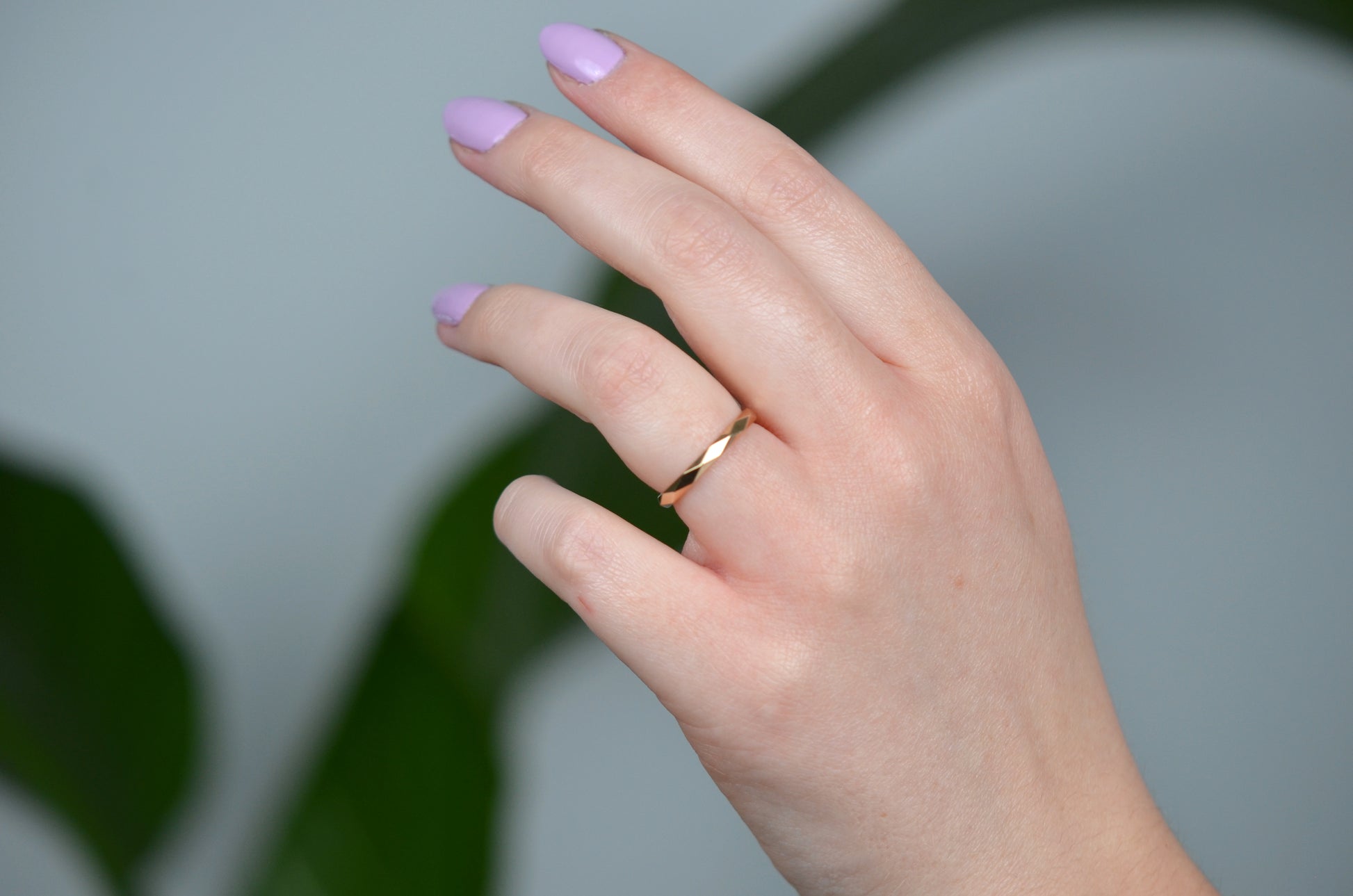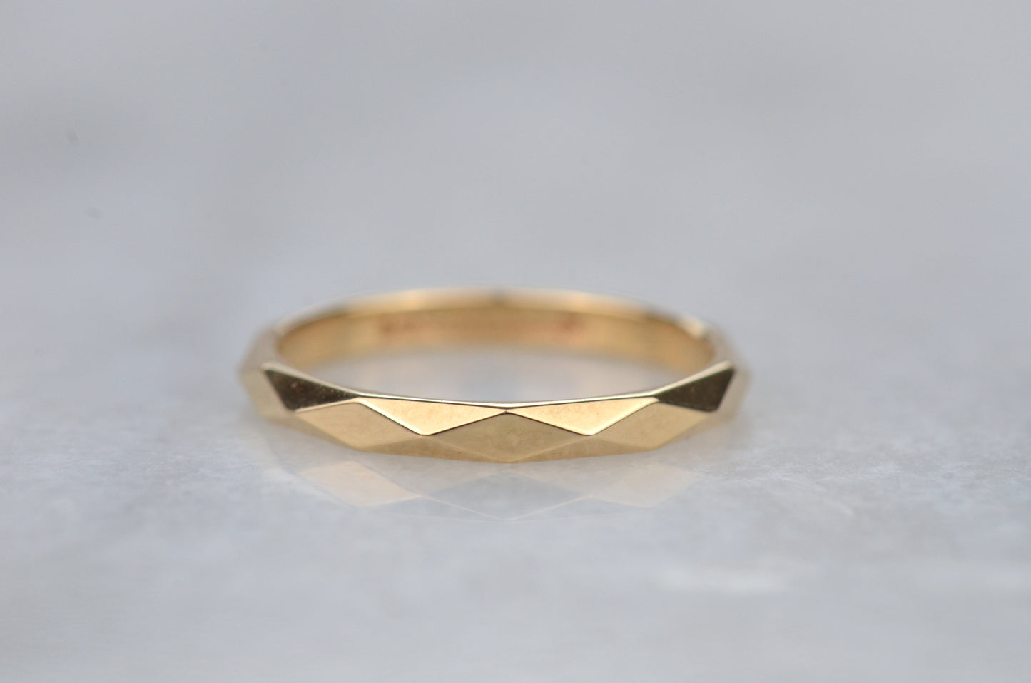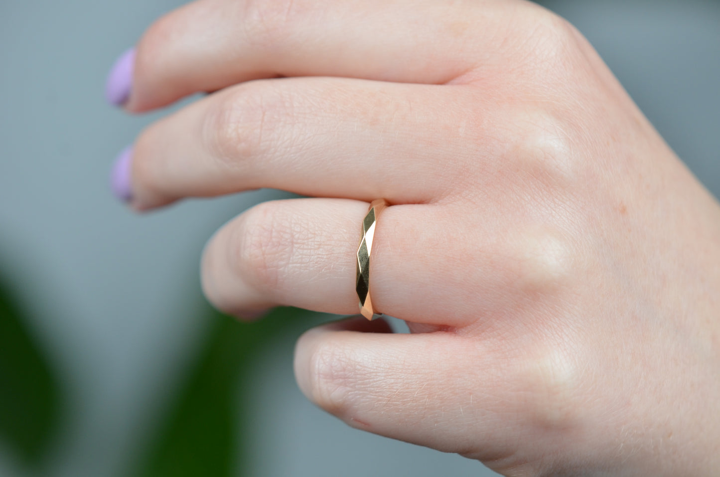 My absolute favourite band, I confess - I wear this exact ring as my own wedding band, and was thrilled to find another, albeit in near pristine condition. Sleek and smooth, boldly geometric yet subtle enough to wear every day, this ring has complemented without competing with every ring I've paired with it. Crafted by historic New York jewelry manufacturers J.R. Wood & Sons under their storied Artcarved brand, it's easy to see how a firm founded in 1850 continues to be in operation today with a reputation for standout wedding bands that hold up to the test of time. Perfect as a wedding band, stacking ring, or everyday staple.