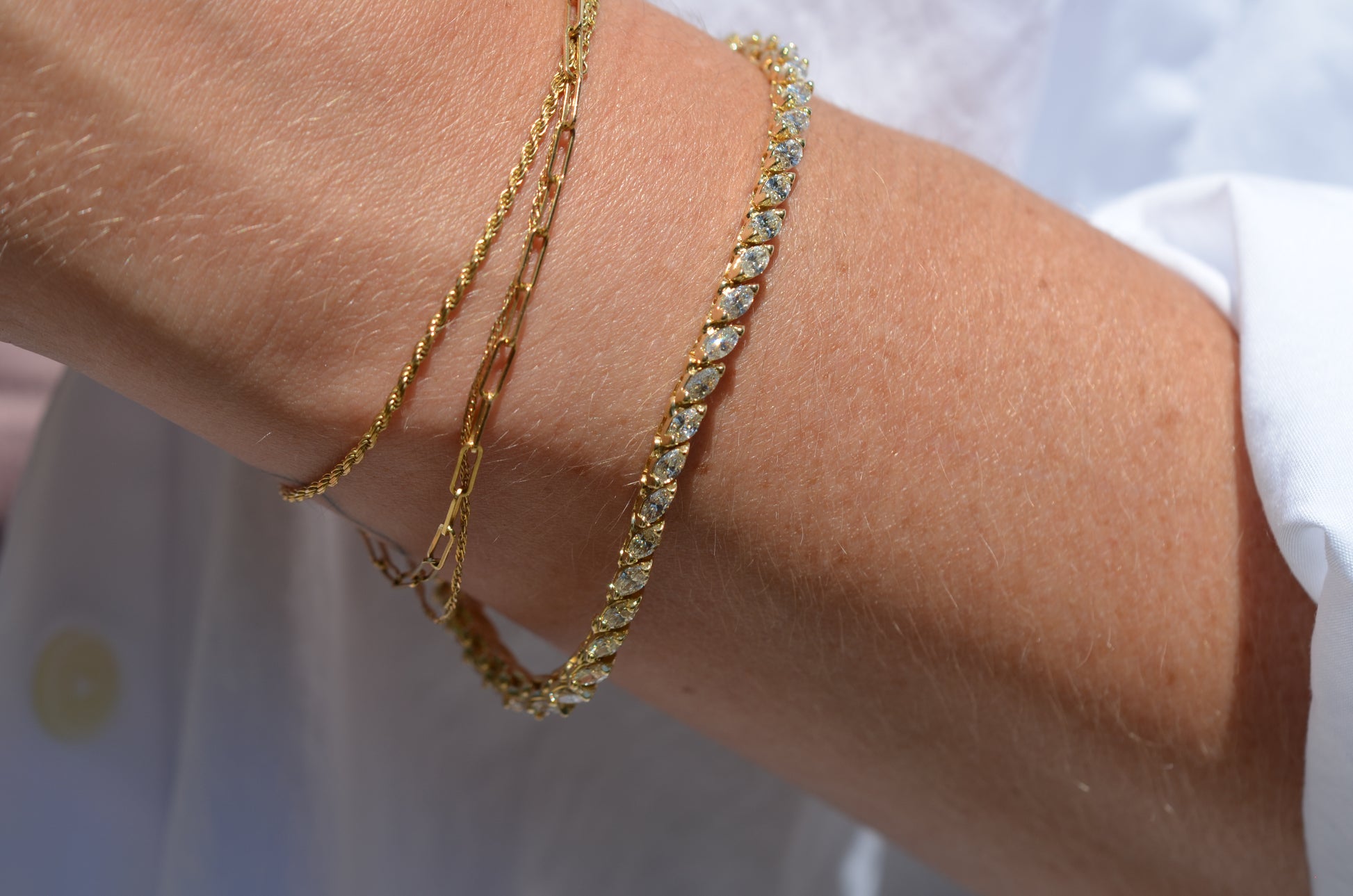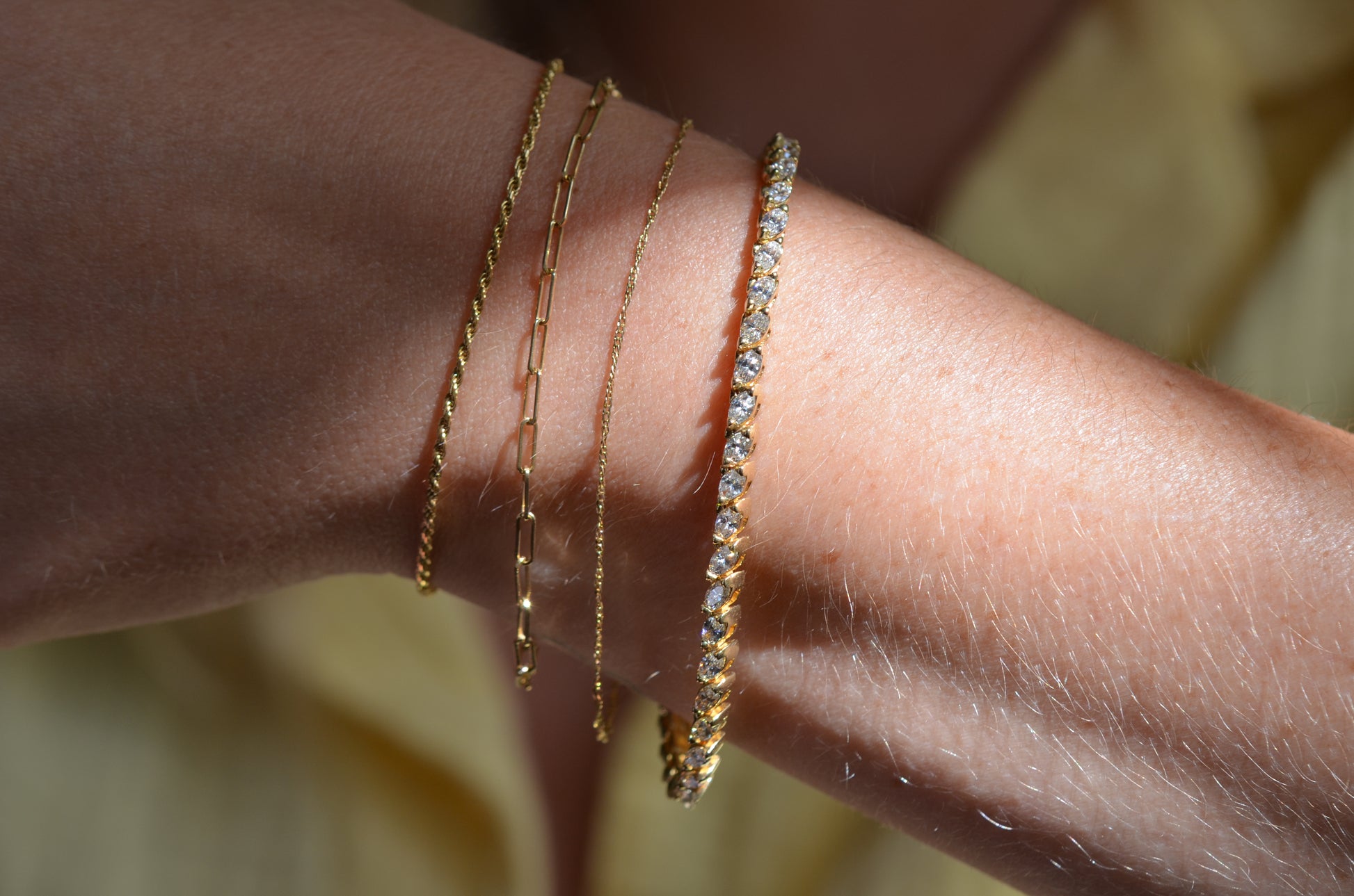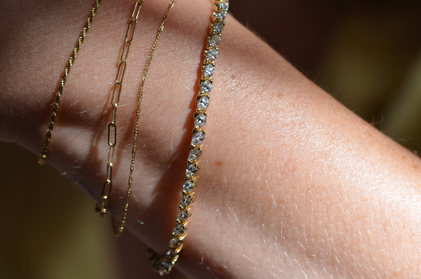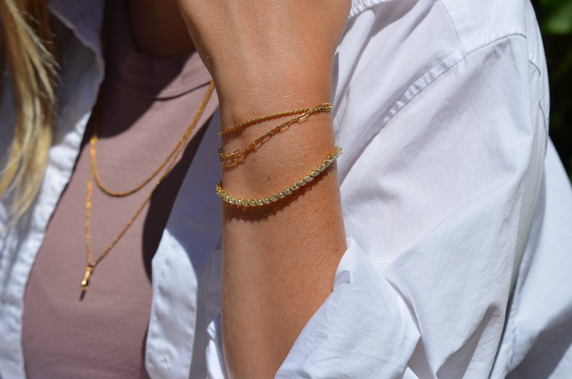 There comes a time in every jewelry-lover's life when they decide their collection is incomplete without a diamond bracelet. While diamond line bracelets go back to at least the early 20th century, the "tennis" part of their name is usually traced back to athletic superstar Chris Evert's affinity for a diamond bracelet (among other jewels) that she wore while playing and, famously, nearly lost in a 1978 US Open match. Easily pictured on a country club-going, twin set-wearing type, tennis bracelets and necklaces alike have stormed their way into wider popularity as jewelry lovers everywhere look to up their wrist and neck messes.