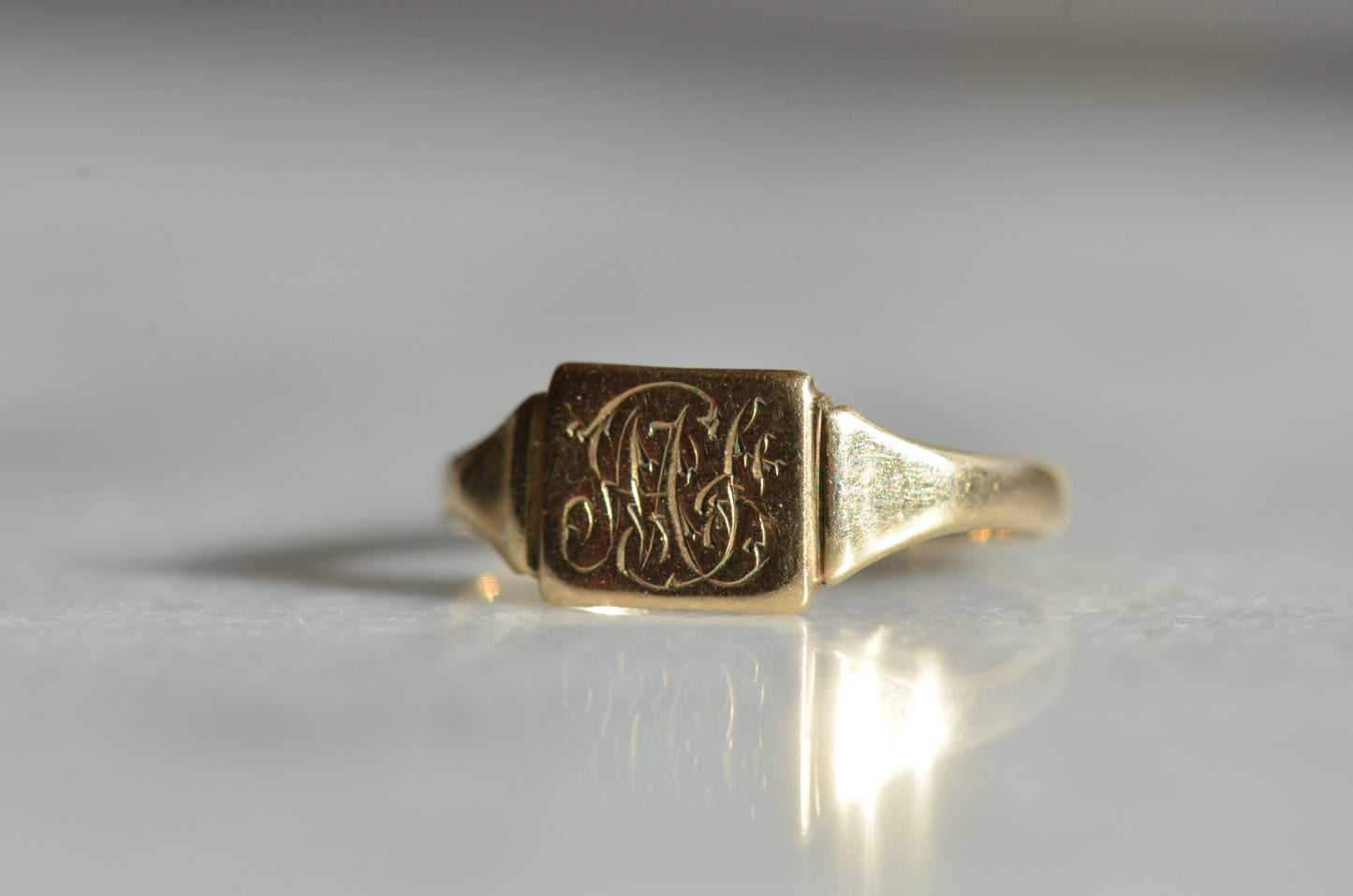 • Please note that we have what appears to be the corresponding signet, engraved MF to DG in the shop - if you're able to keep these rings together, a 15% discount will be applied to the pair at checkout