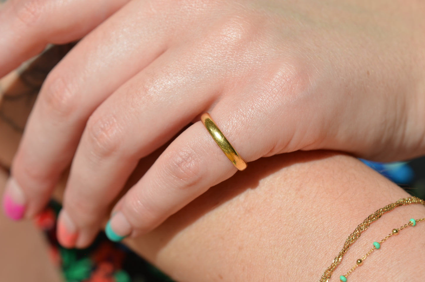 We just adore the quiet luxury of high karat gold - a simple, stoneless band in a completely timeless style.