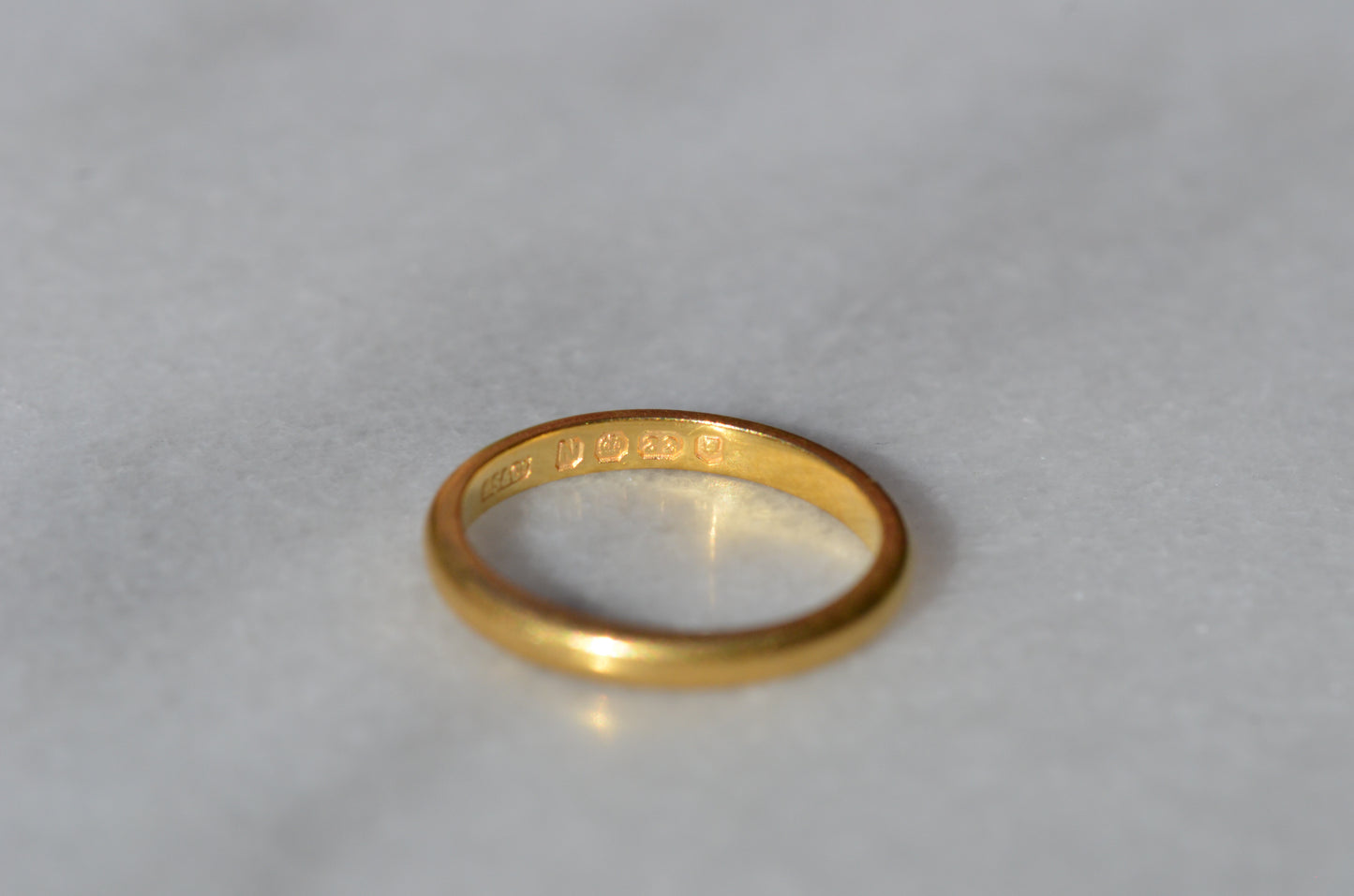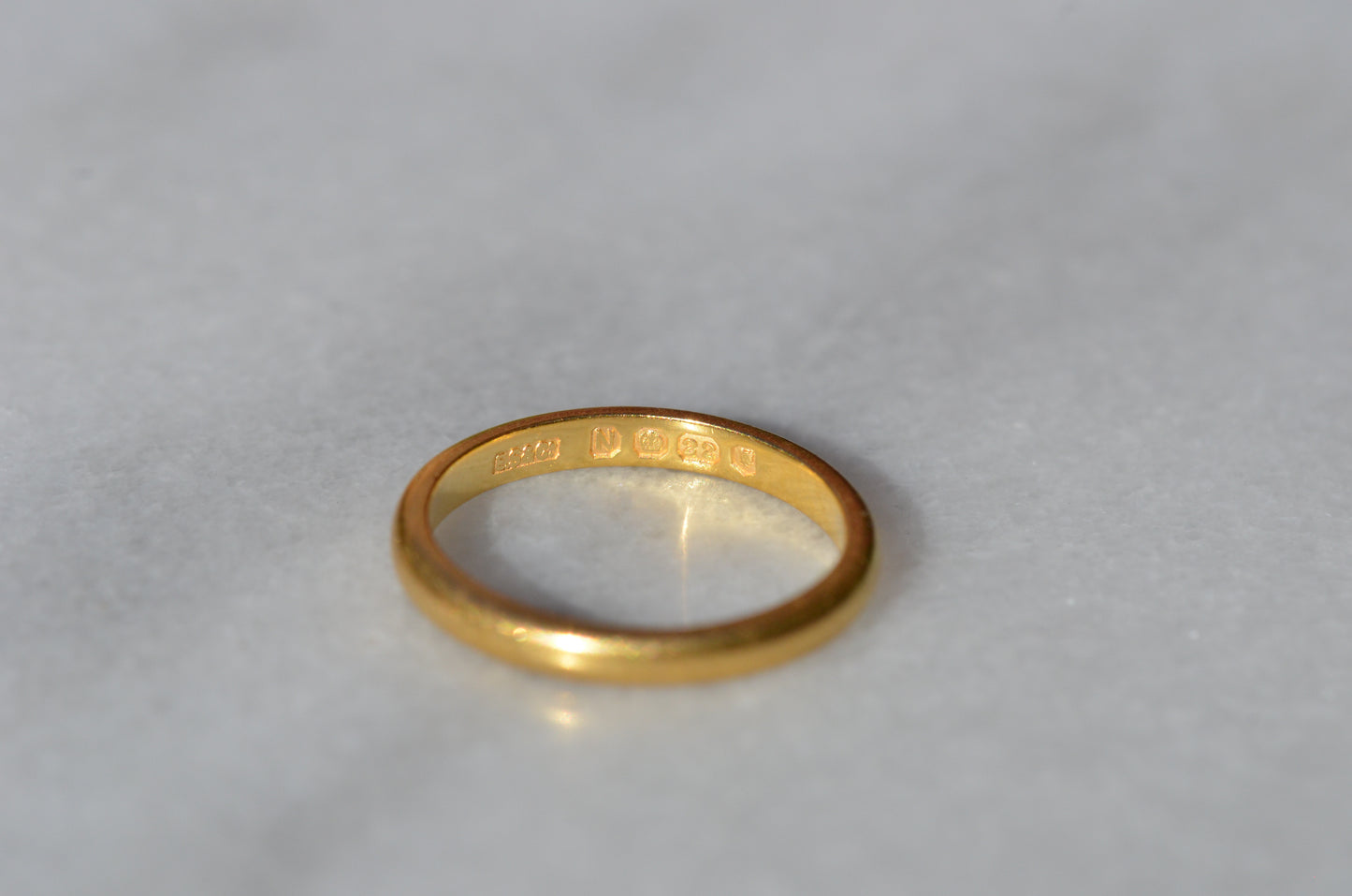• 22k yellow gold, stamped and tested, with British hallmarks for London 1948, maker's mark ES&Co