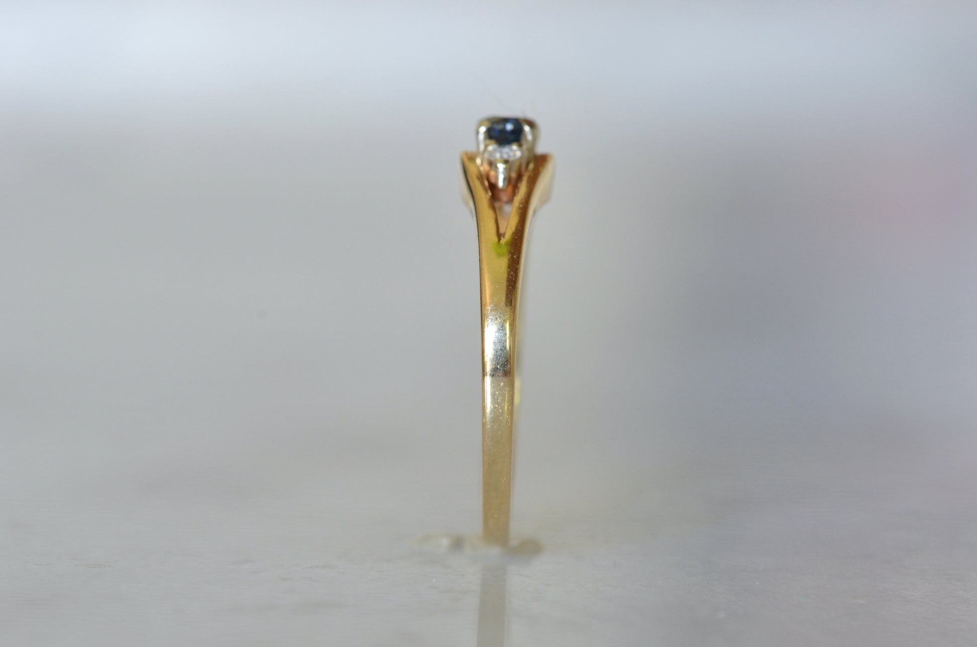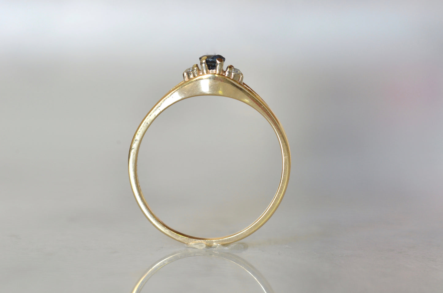 • One natural sapphire approximately 3mm/0.15ct, two single cut natural diamonds approximately 0.03ctw