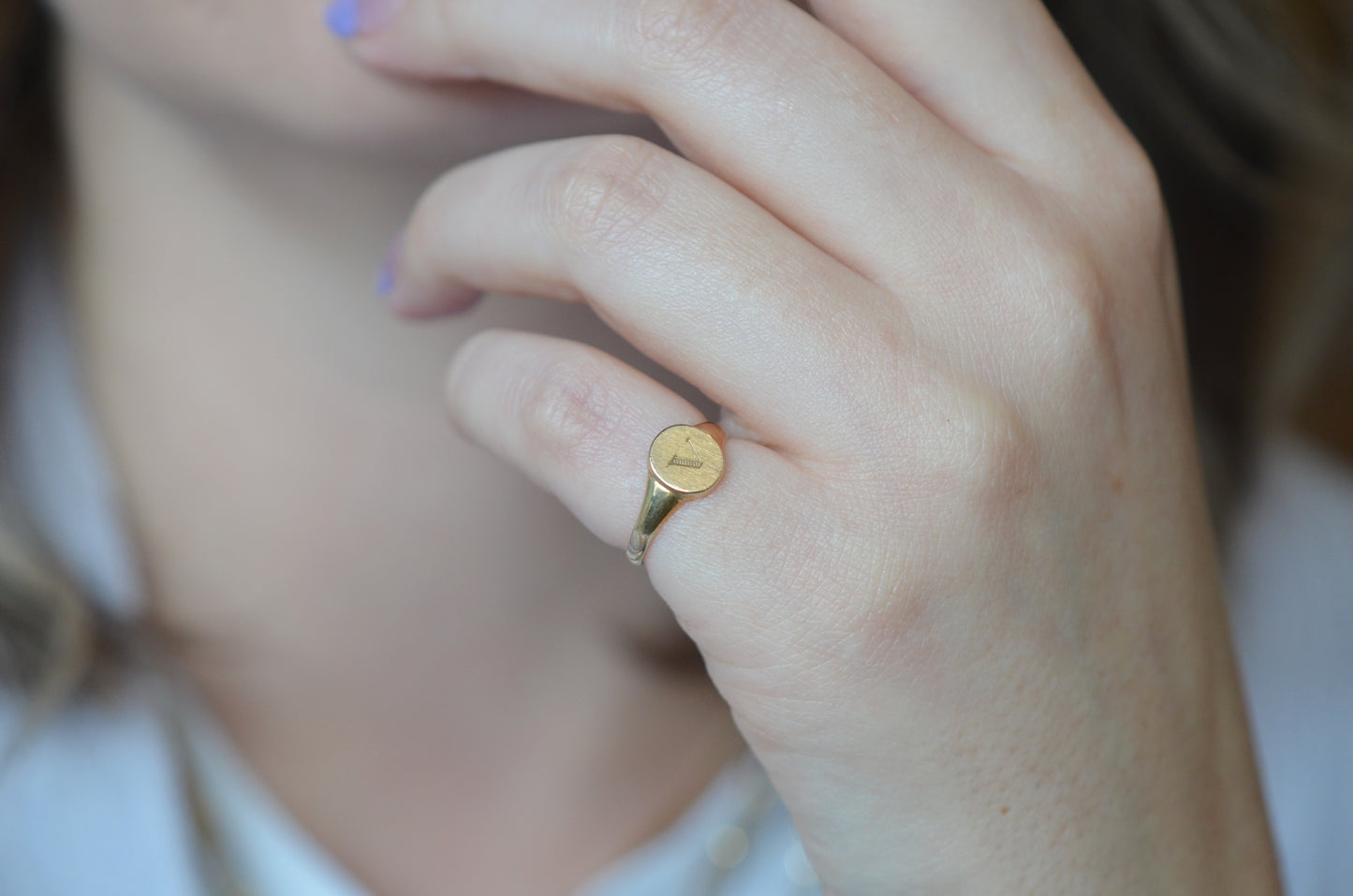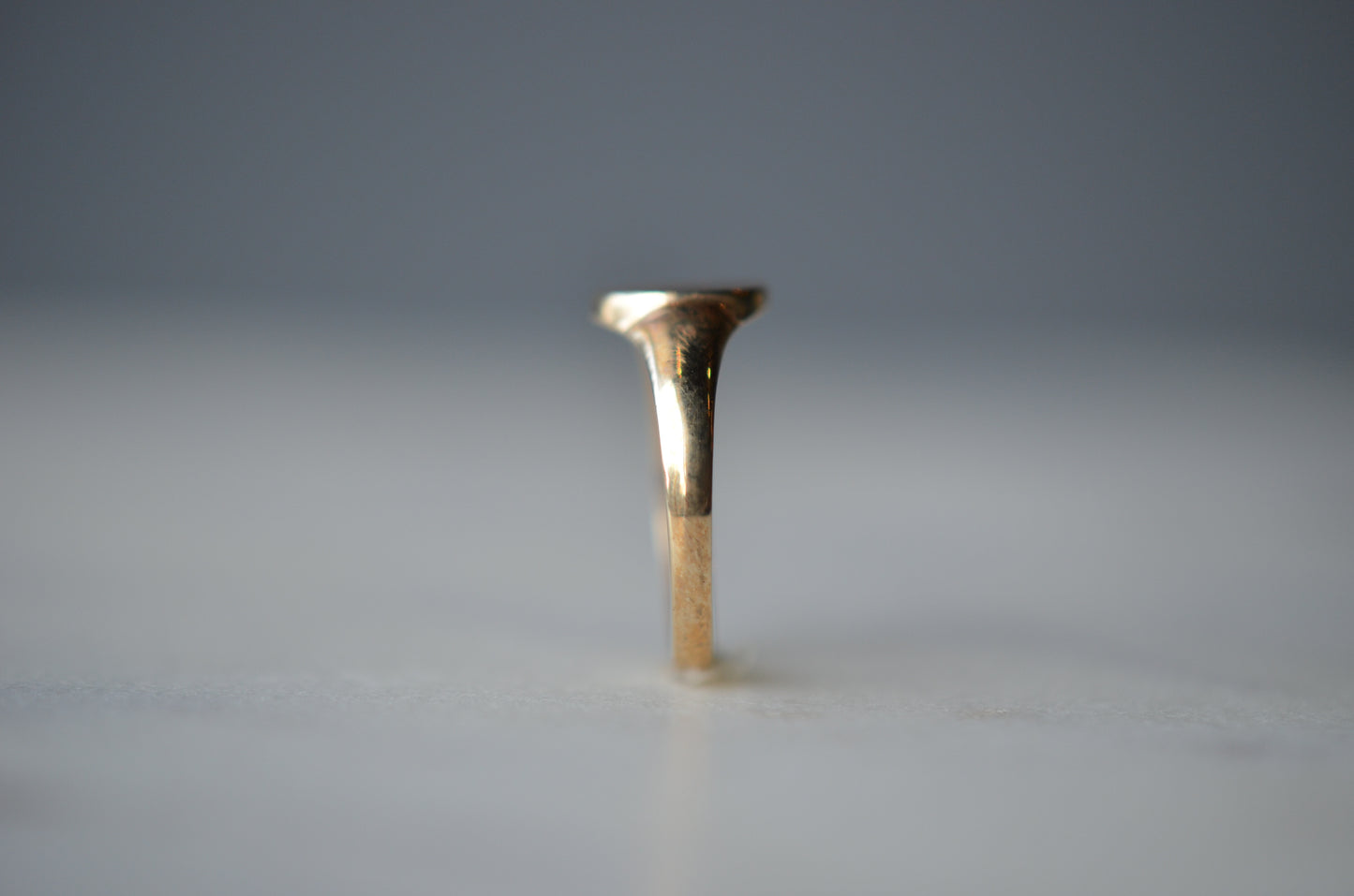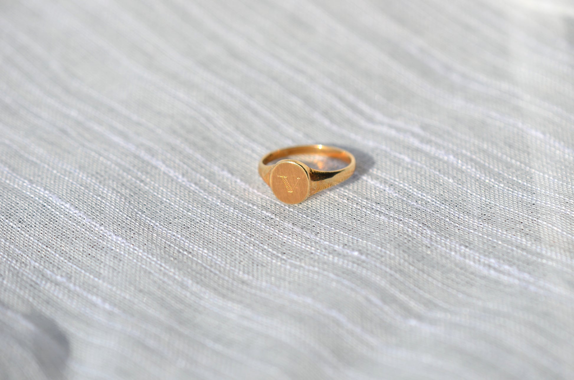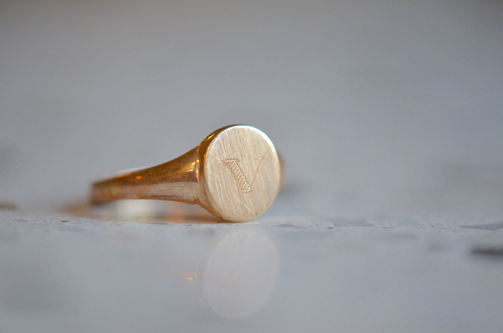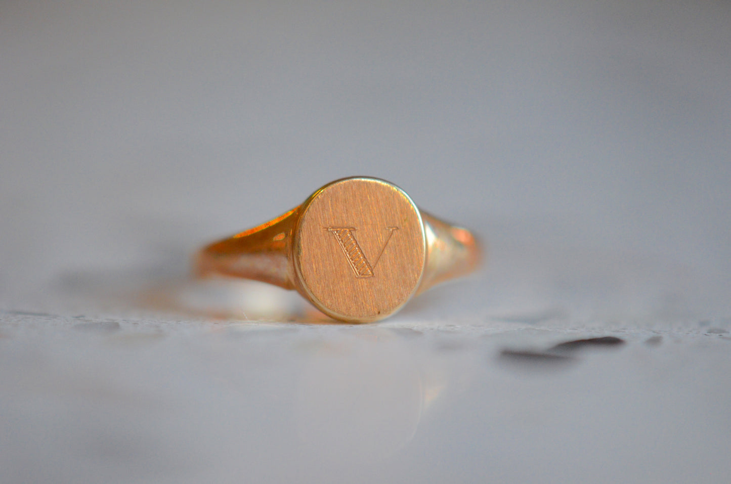 Simple and sweet, this is an absolute dream of a pinky ring. Soft lines, a brushed face, and a crisp letter V are utterly timeless. A perfect everyday ring, and an ideal gift for the V you love - or your love who loves a V! Signets are so special in that we can imbue them with whatever is most meaningful to us, and this particularly minimalist version is like a blank slate.