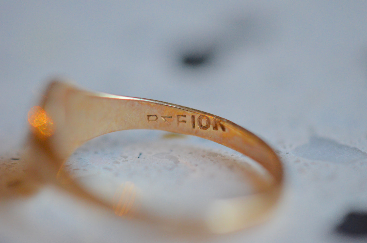 • 10k rosy yellow gold, stamped alongside a partially worn maker's mark