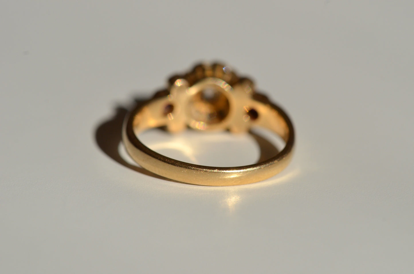• One old European cut diamond approximately 0.14ct, 10 old single cut diamonds approximately 0.10ct (diamonds 0.24ctw), two cushion cut rubies