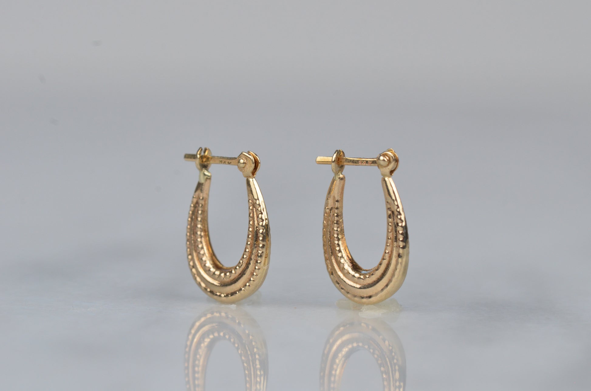Sweet and easy-wearing, these little hoops feature a slim oval drop shape enhanced by a double row of milgrain-inspired beaded detail along the sides and a slim front view. Lightweight and comfortable, with a securely latching post.