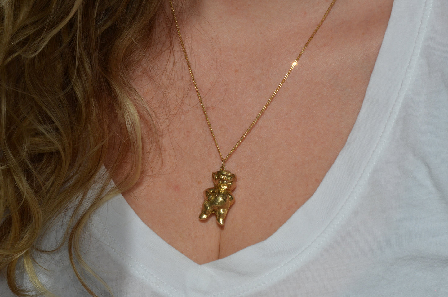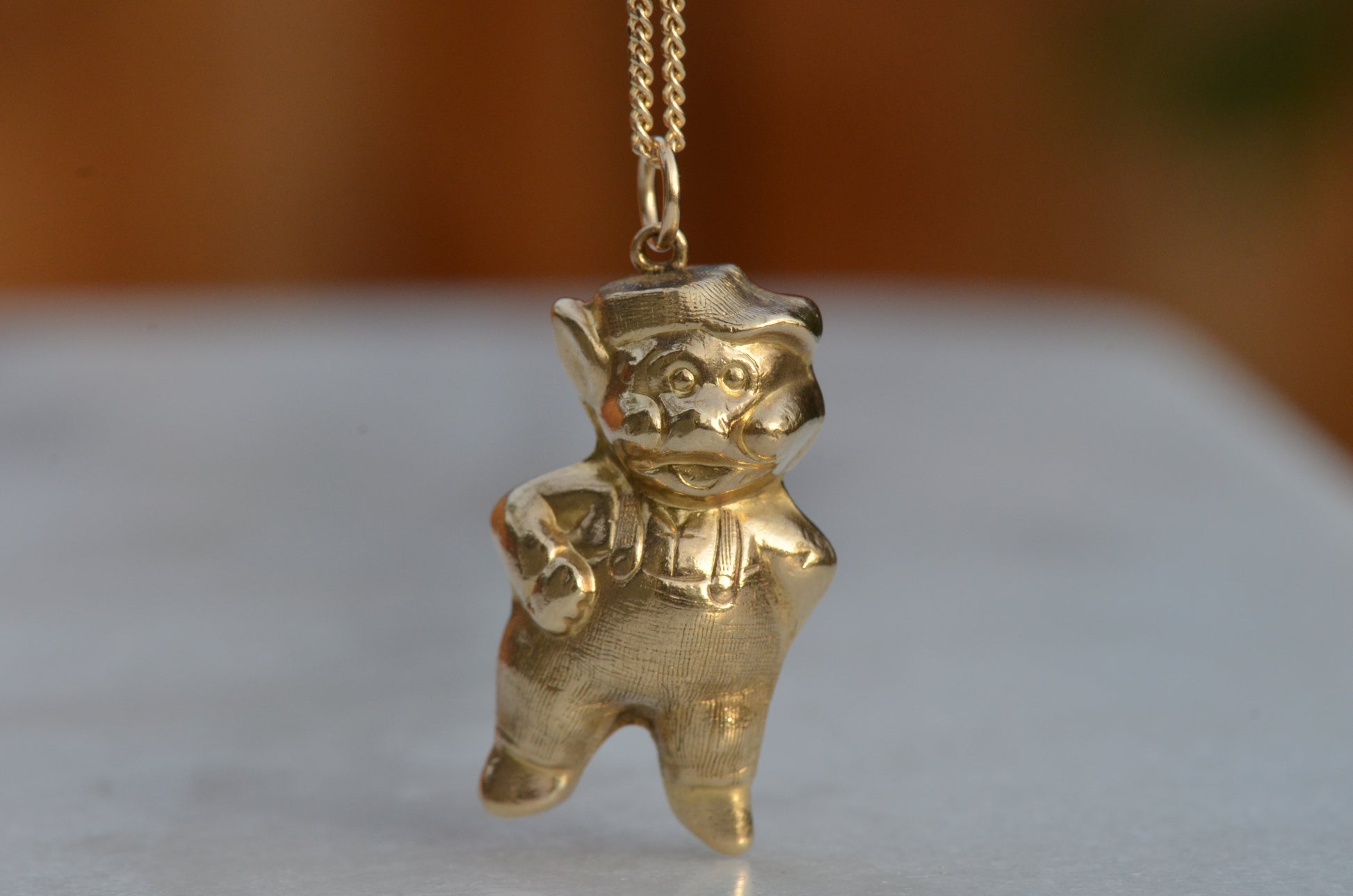 This sassy anthropomorphized pig is ready to join you on every adventure and bring you luck and prosperity! Plump, playful, and charming, this golden pig sports overalls, a kicky hat set askew, and a whole lot of attitude. Known for their beautiful personality and good fortune, recent pig years include 1971, 1983, 1995, and 2019.