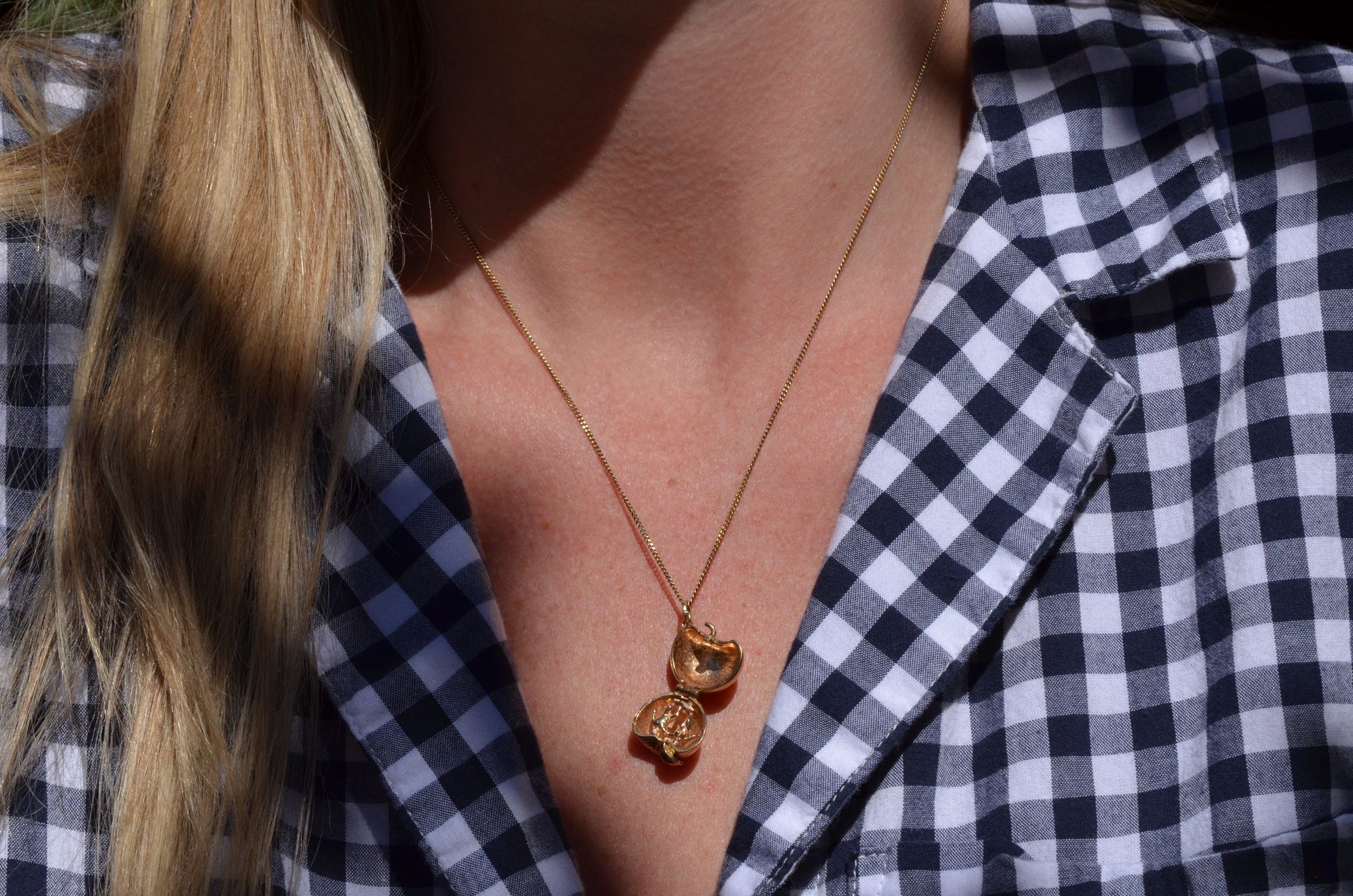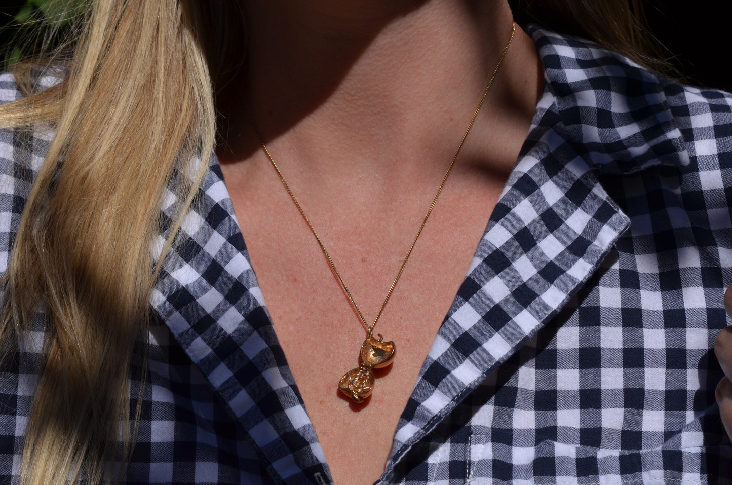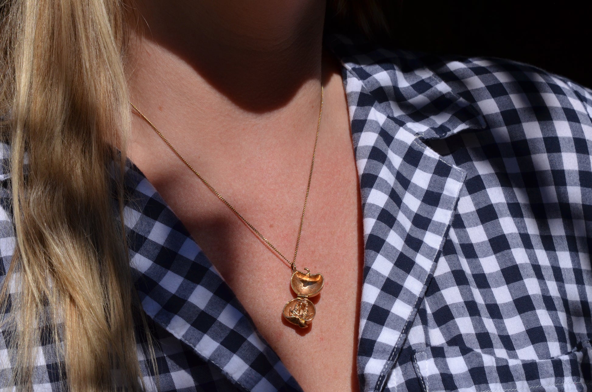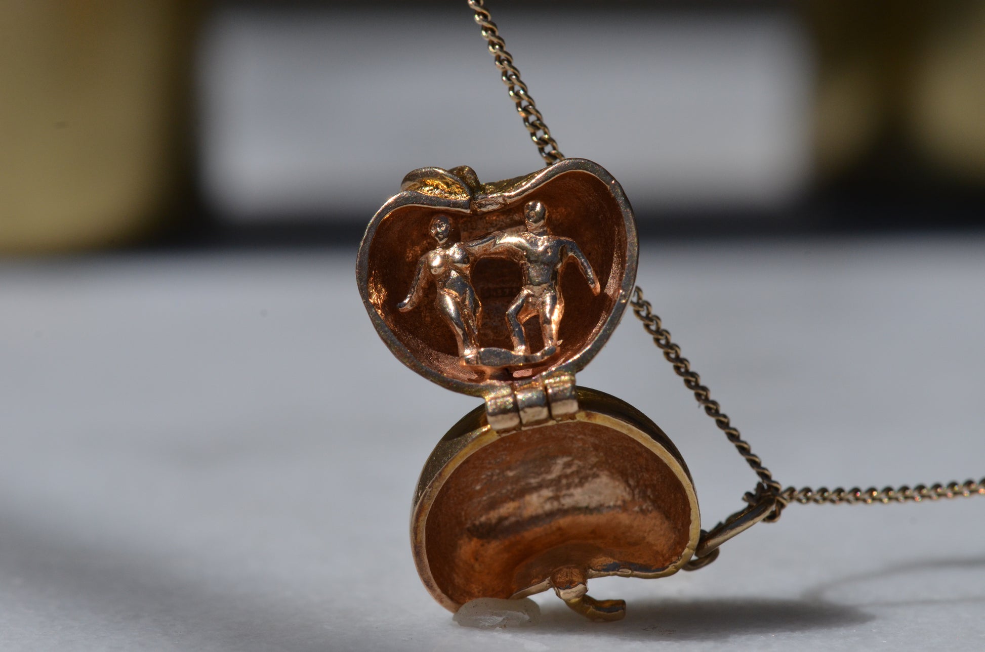 Straight out of Genesis, this little charm seeks to encapsulate the Biblical origin of humankind in miniature, with a petite pair of Adam and Eve dancing side by side and forever encased in that dreaded apple.