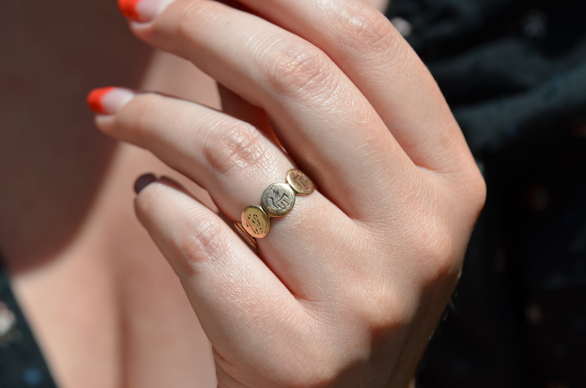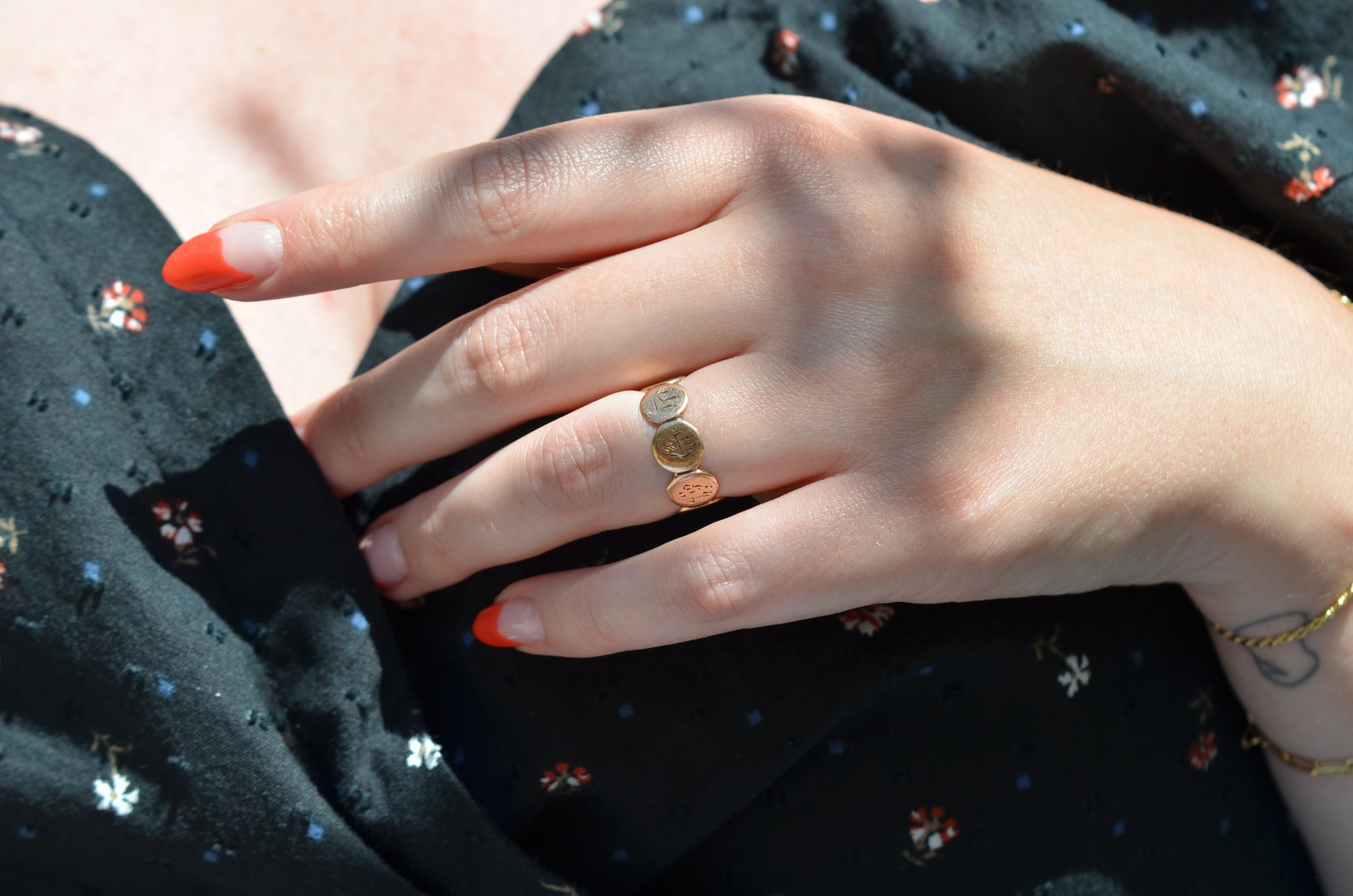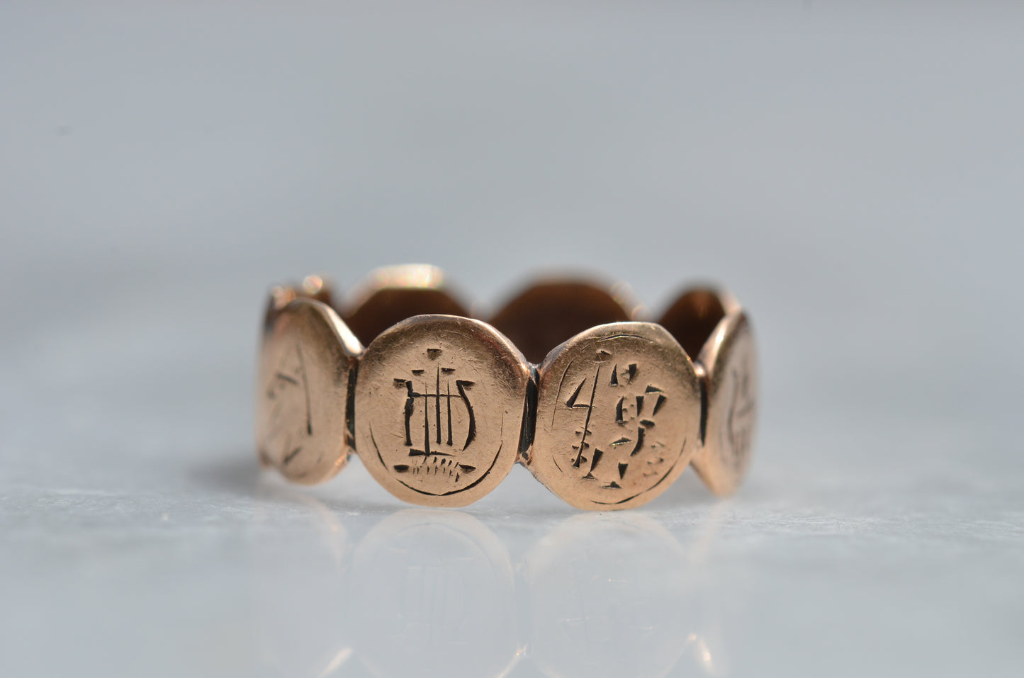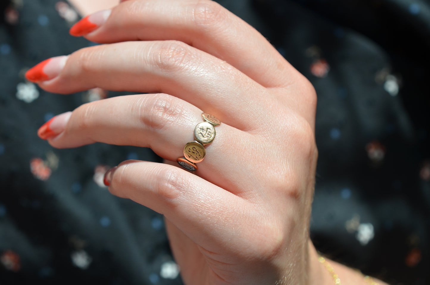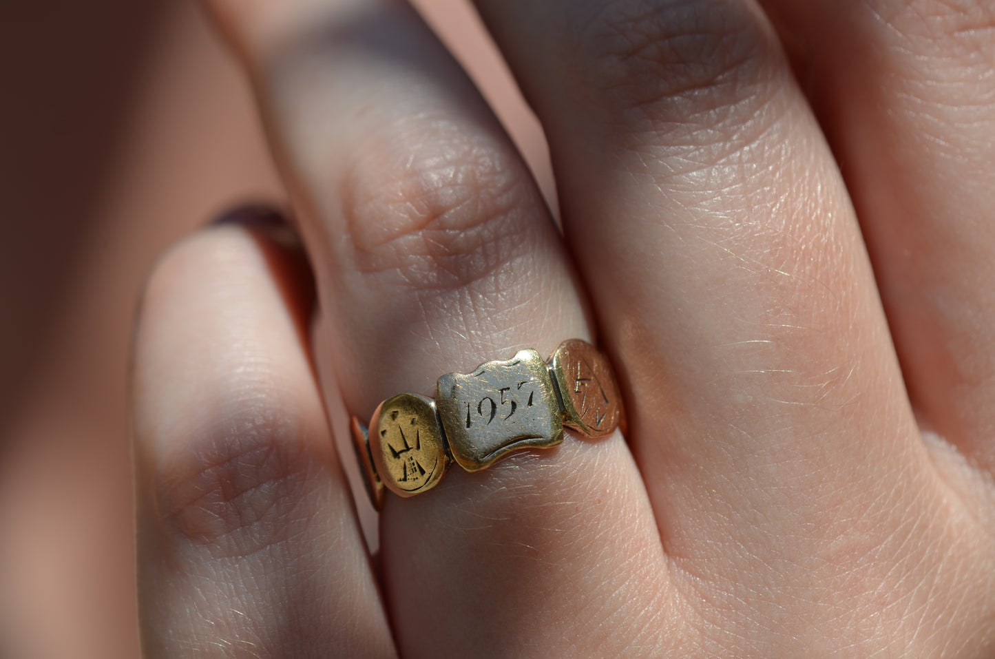 This stunning ring, hailing from the midcentury, has clearly been modelled after an antique favourite, and obviously well-loved. We could hardly say it better than The British Museum: