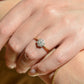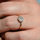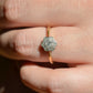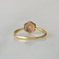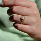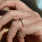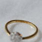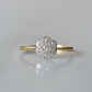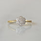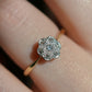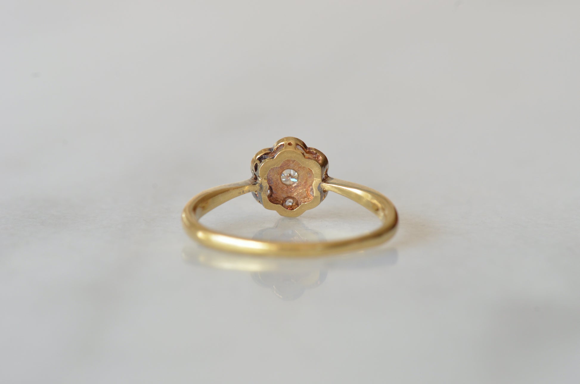 Delicate and charming, this gold and platinum ring is inspired by Victorian sentimentality and Edwardian femininity. Six bright diamonds surround a central seventh diamond like the petals on a daisy. A yellow gold band lends warmth and contrast and allows the ring to blend seamlessly into your jewelry wardrobe.