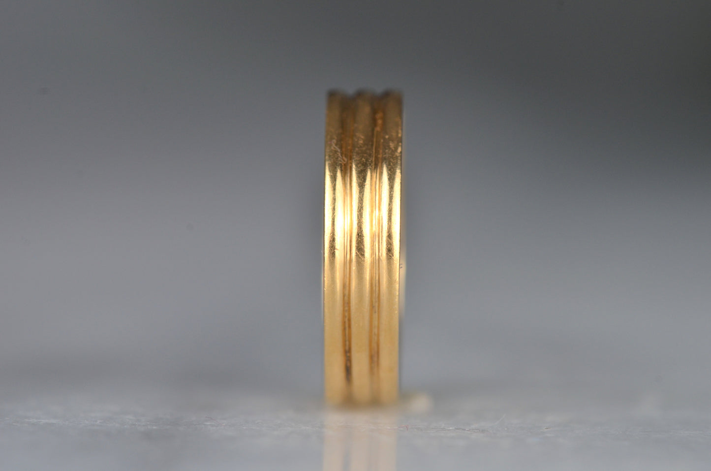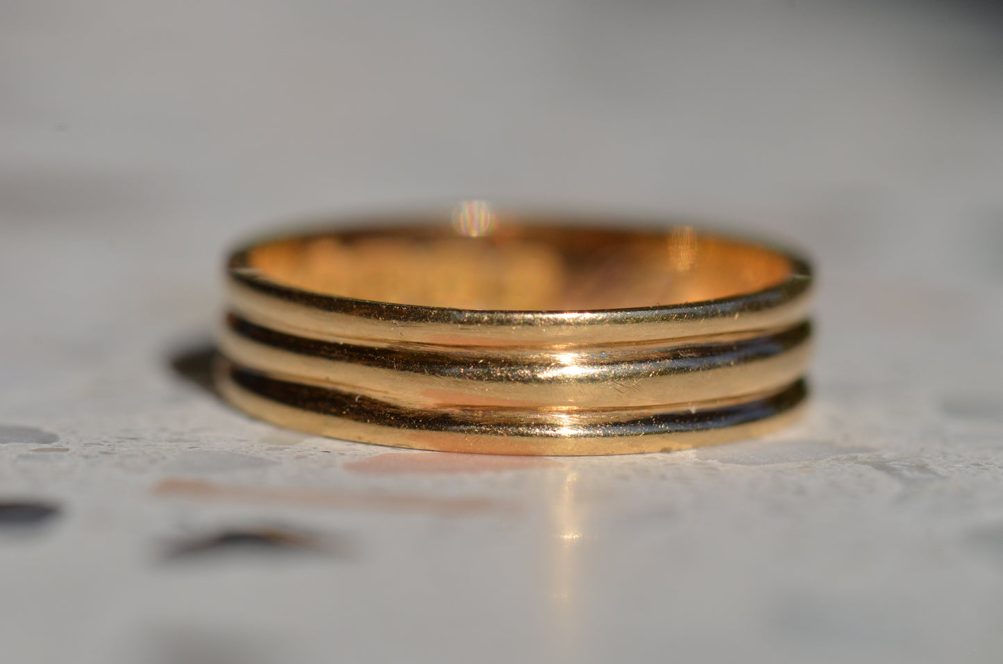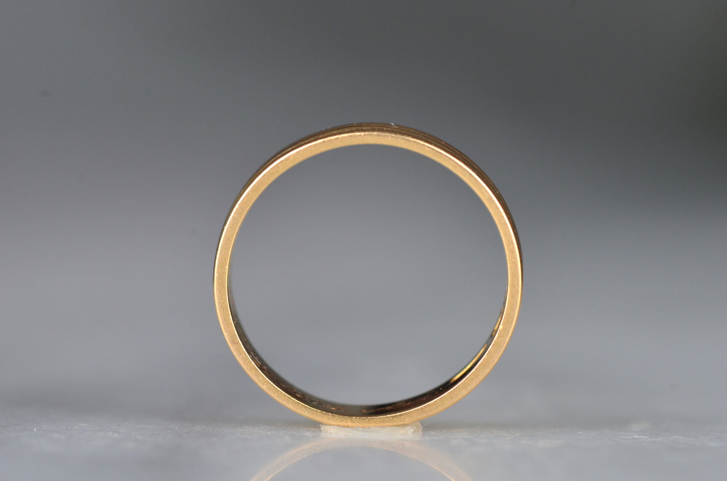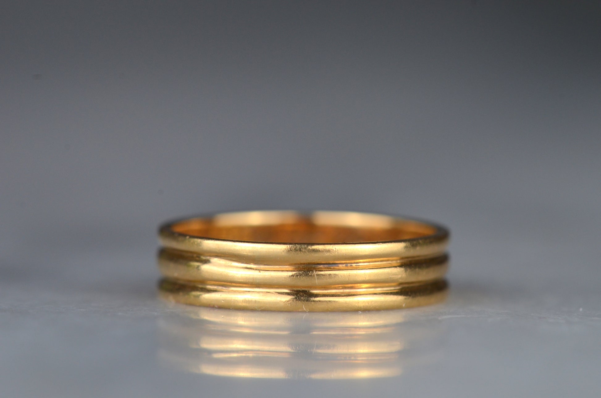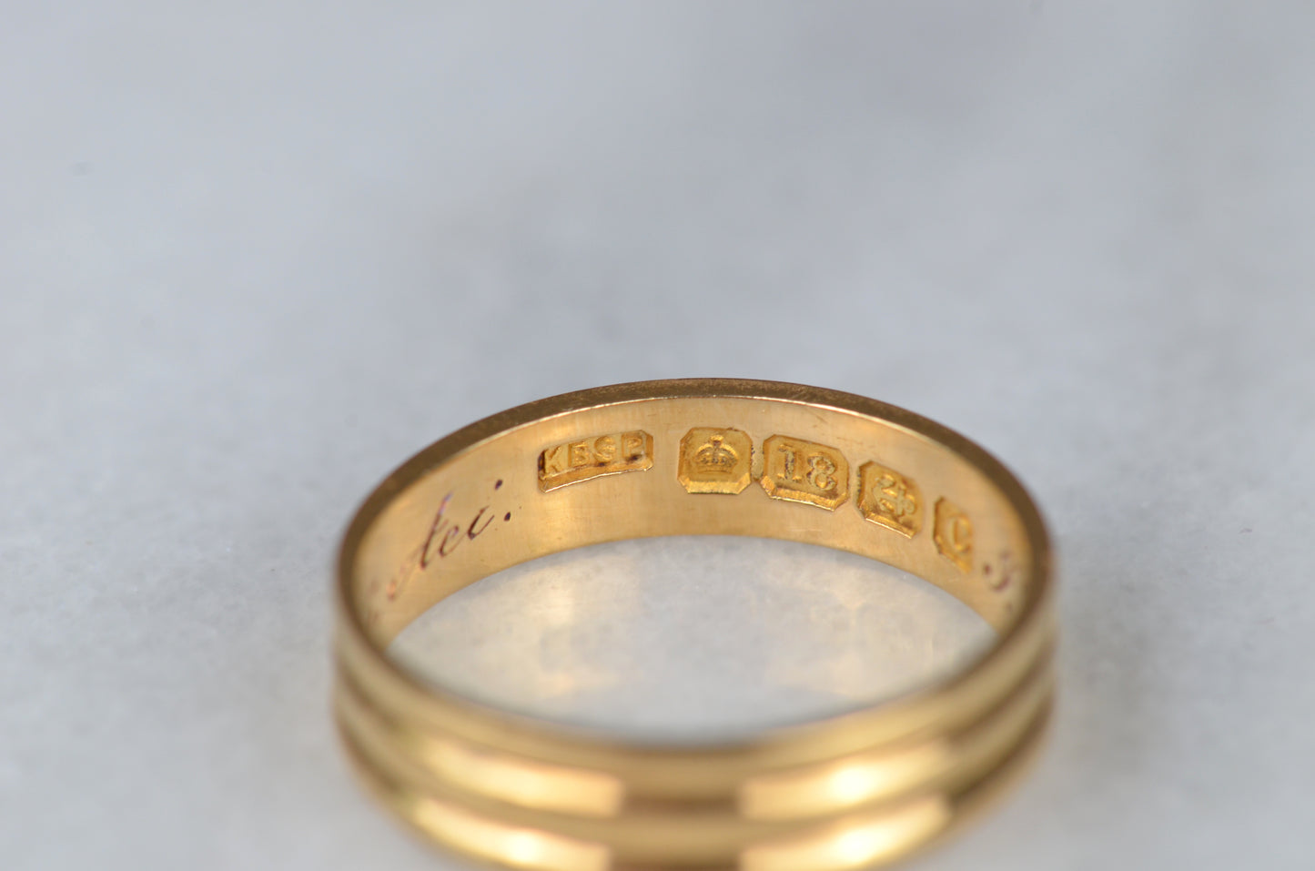 The hallmarks in the ring trace it back to jewellers Kinsey Brothers & Patrick Ltd - established in 1885 - and put its production near 1902. In the United Kingdom, goldsmiths and jewelry manufacturers must submit their finished articles to central assay offices, who are responsible for testing the gold's purity and applying the appropriate hallmarks as confirmation. As pieces of jewelry could not be sold without these stamps, business sense would hold that they were sent to assay as soon after their production as possible, but from there it can be impossible to know how long a piece sat on a retailer's floor before purchase.