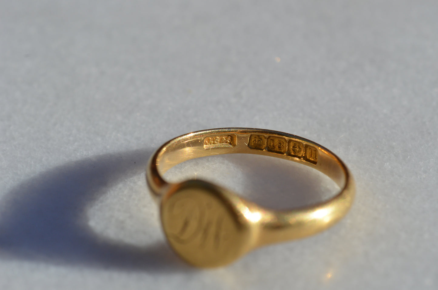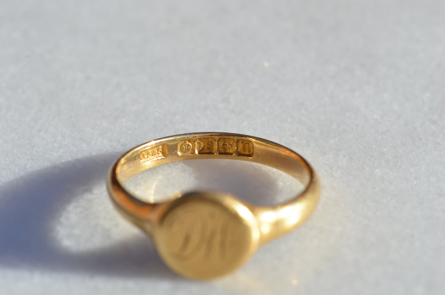 • 18k yellow gold, stamped and tested, with full British hallmarks for Birmingham 1919, maker's mark J.S&S