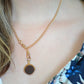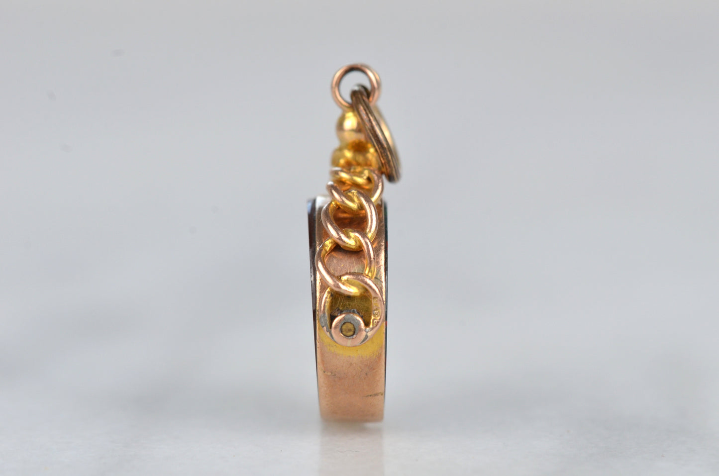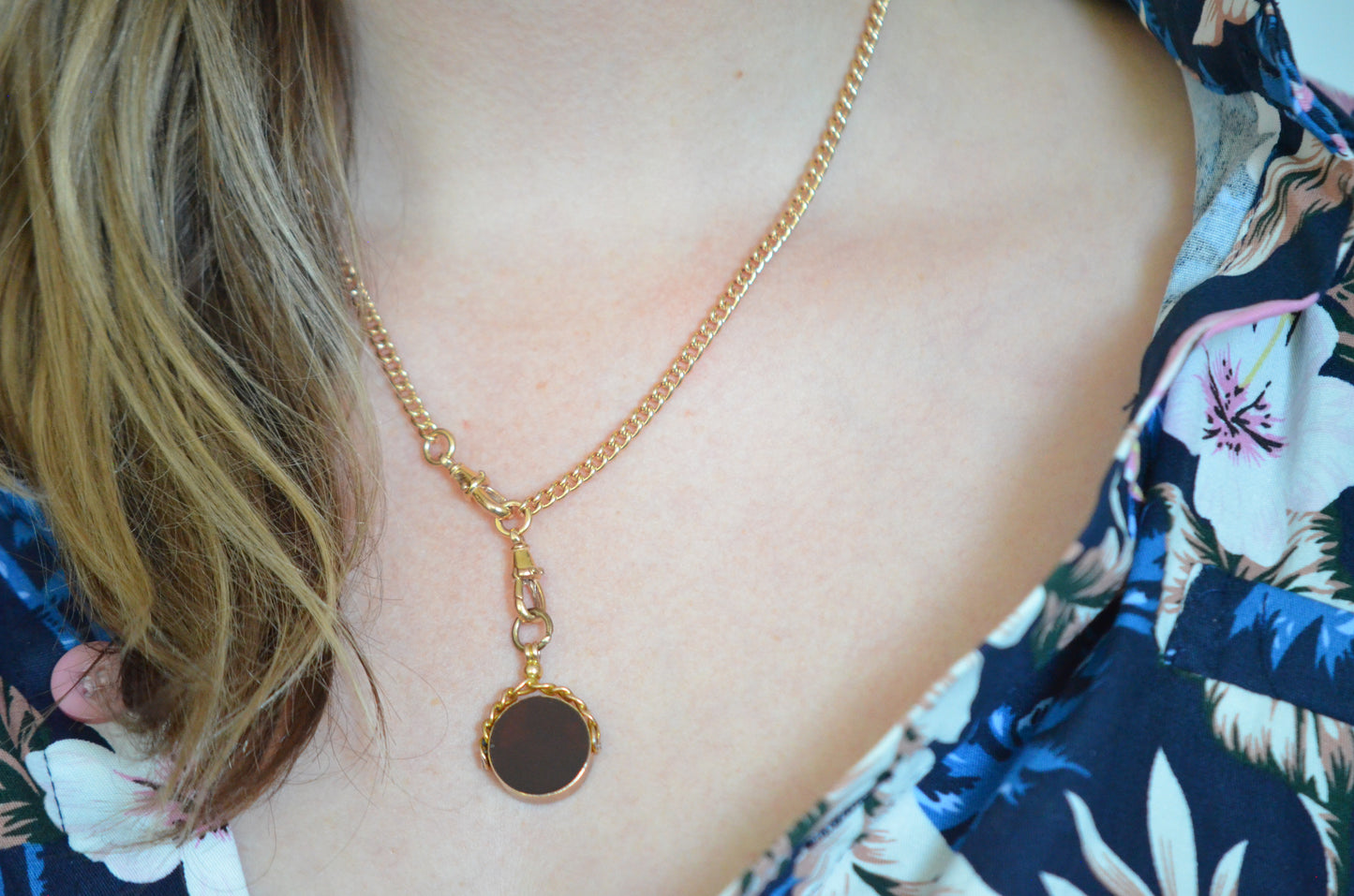 • Please select from drop-down menu, chains are new-stock 10k yellow gold curb link - please not that the chain available is the one pictured in photos 9 and 10, the chains and dogclips pictured in photos 11-14 are styling suggestions only and not included