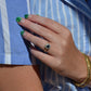 • Face of ring measures 10.4mm wide, 9.9mm across with a rise of 6.3mm; back of band measures 1.3mm wide and 1.3mm thick