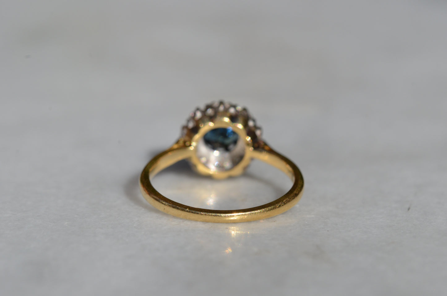 • One natural round sapphire approximately 0.66ct and ten natural single cut diamonds approximately 0.10 carat total weight