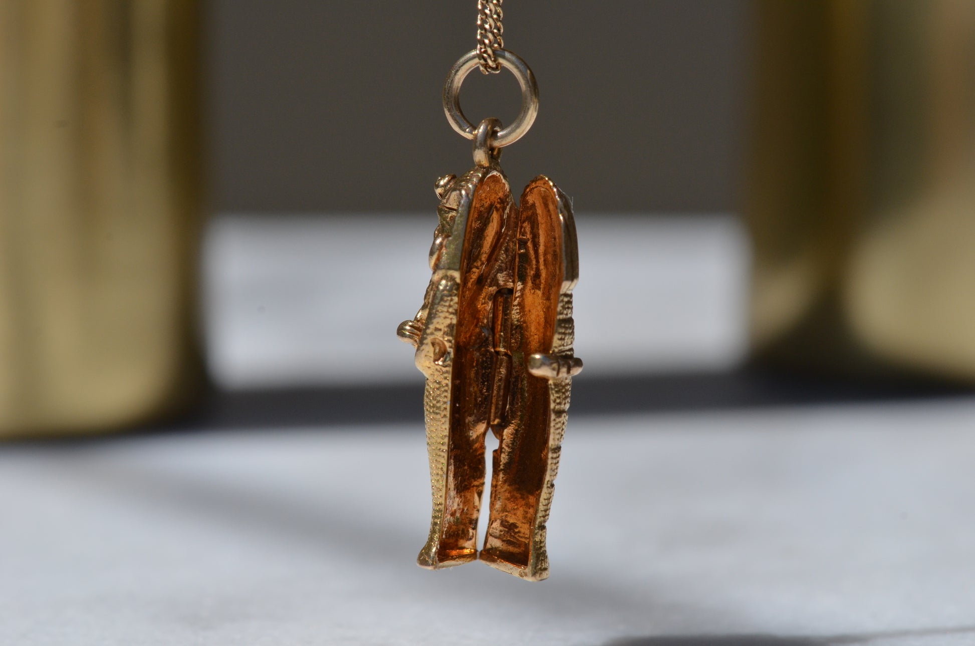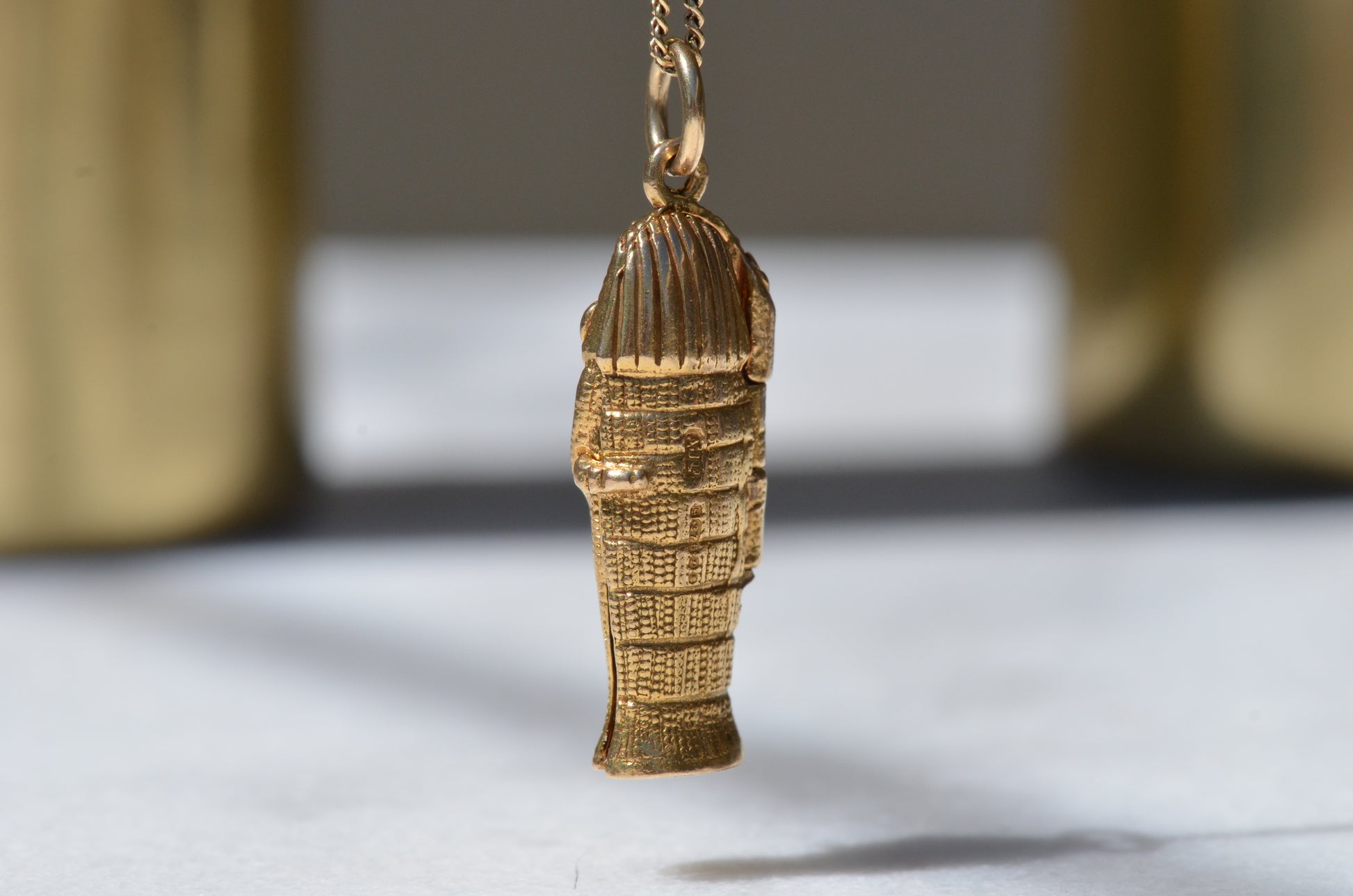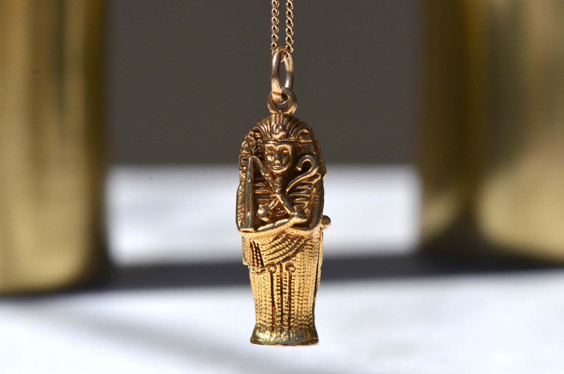 In 1972, the British Museum ran a nearly year-long exhibit called The Treasures of Tutankhamun which remains their most popular exhibit to date. This detailed charm, created to capitalize on the reignited interest, may likely have had a tiny mummy tucked within, though if so it's been lost to time. While we hope to continue to see vast improvements in repatriation efforts and far more nuance around plundered history, there's no question that ancient Egypt continues to pique interest around the world.
