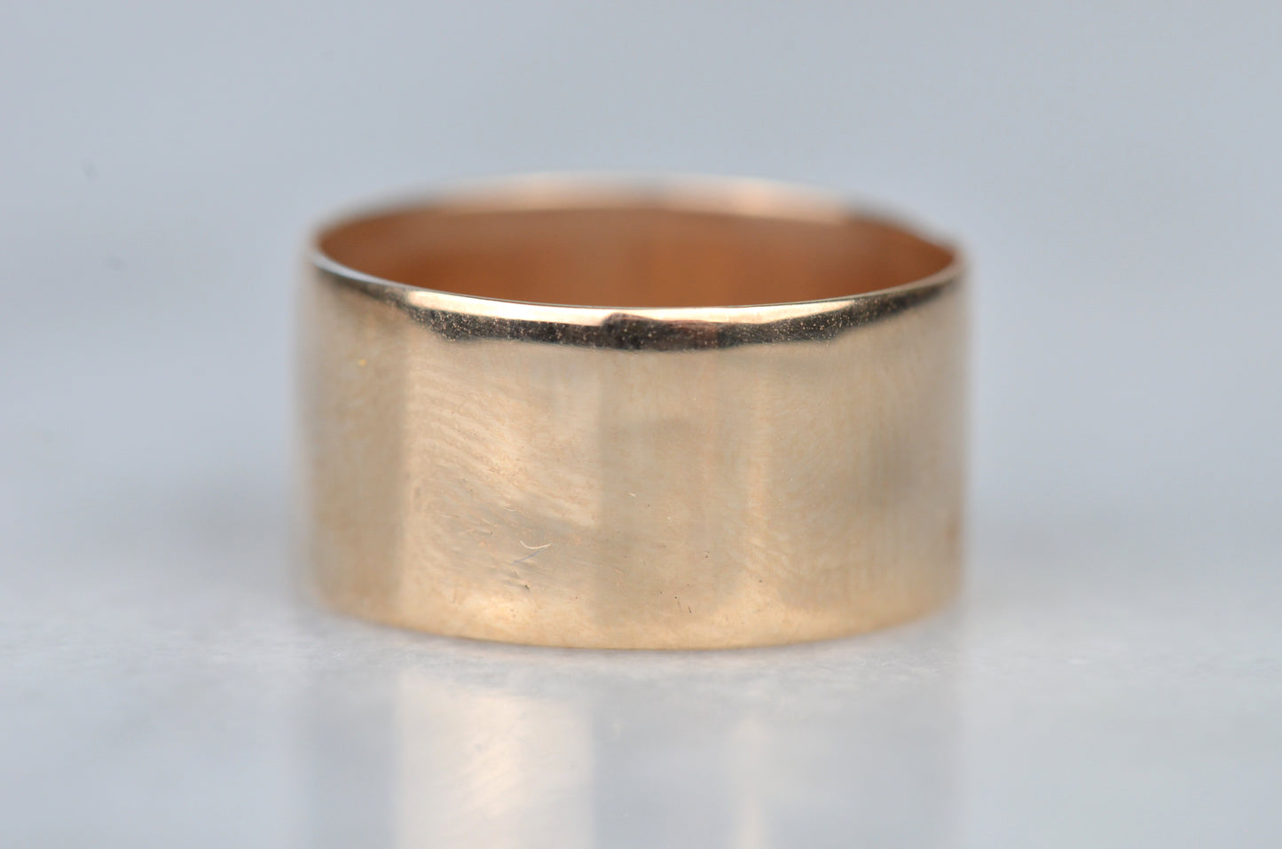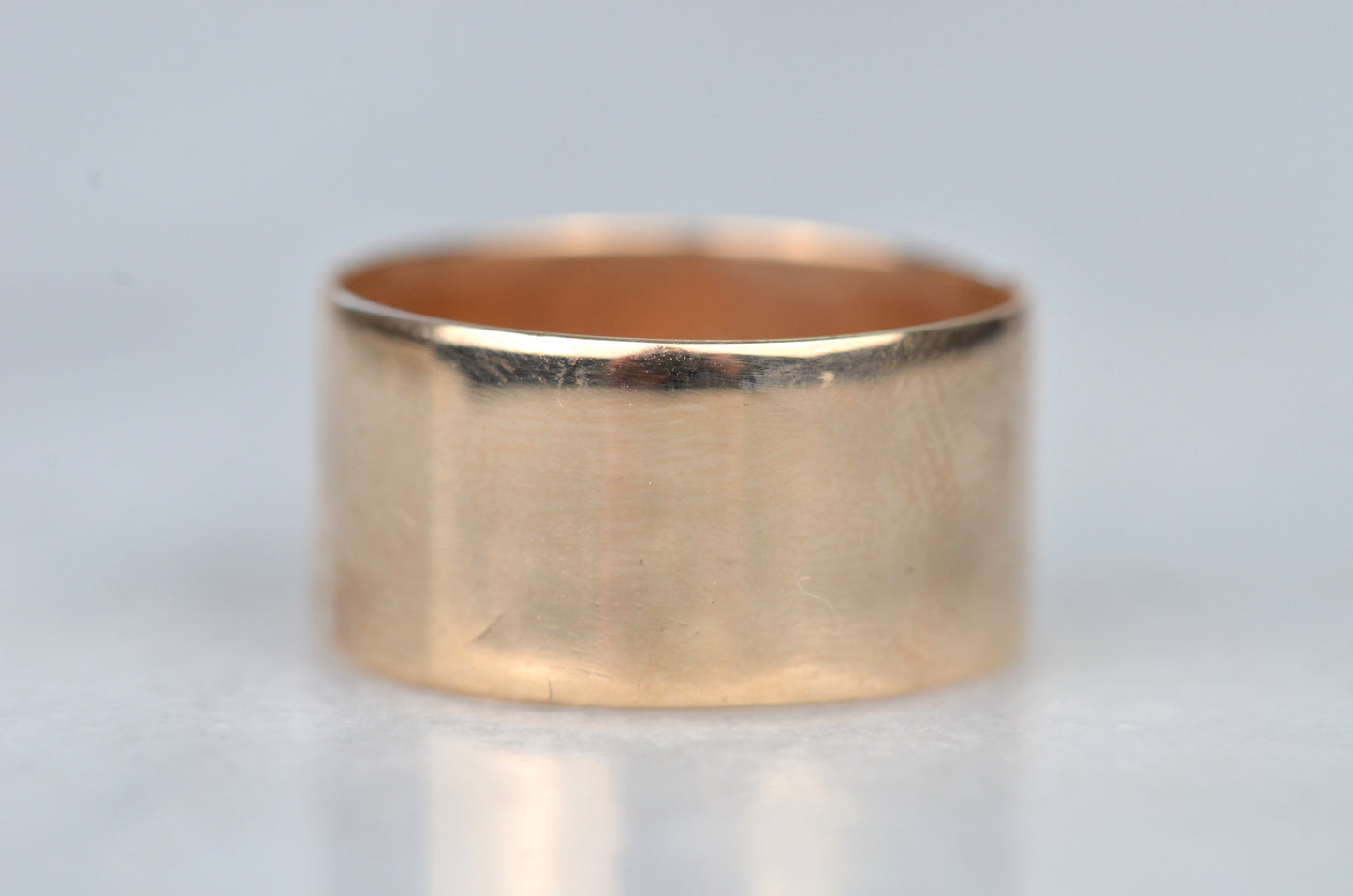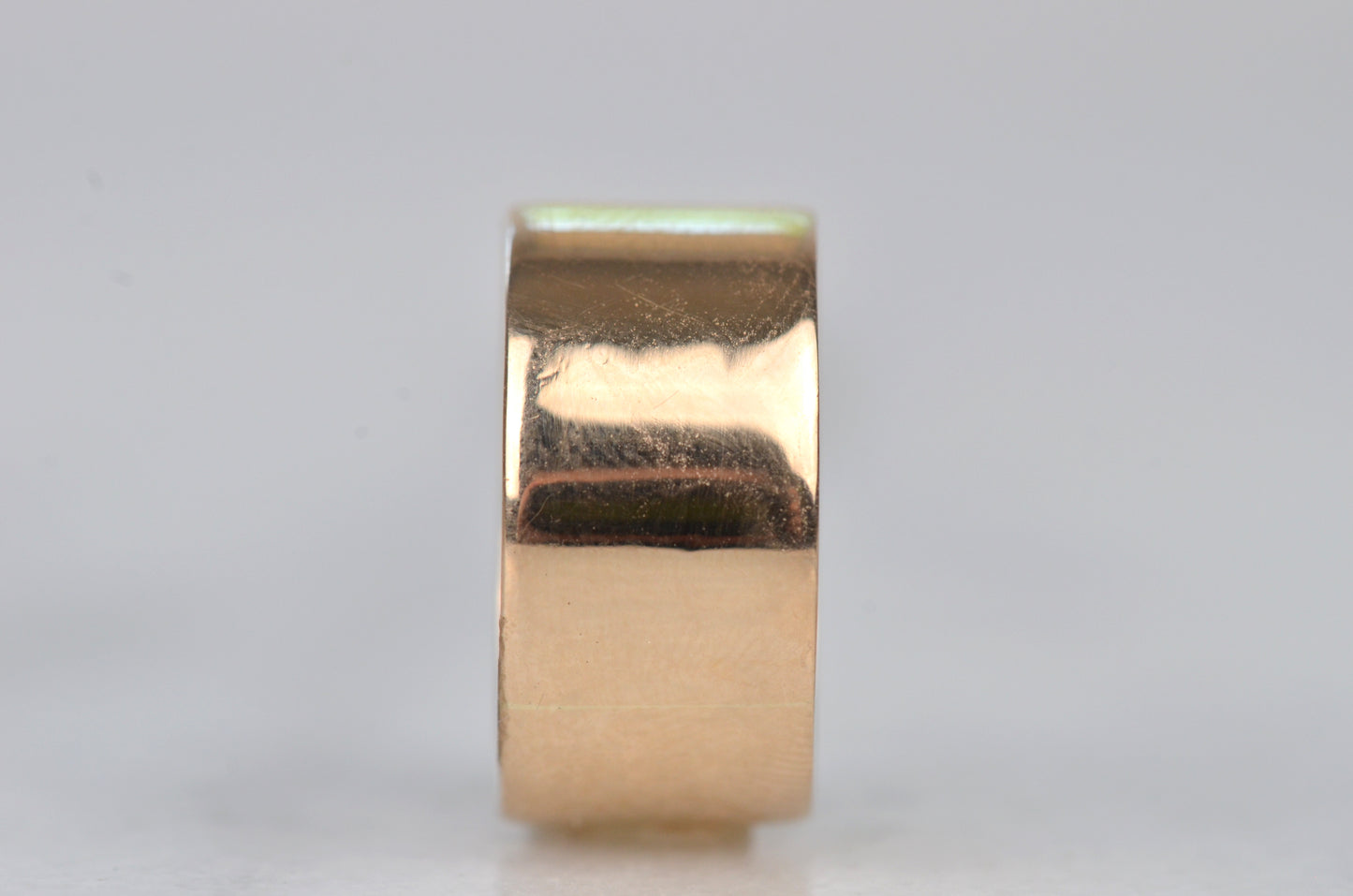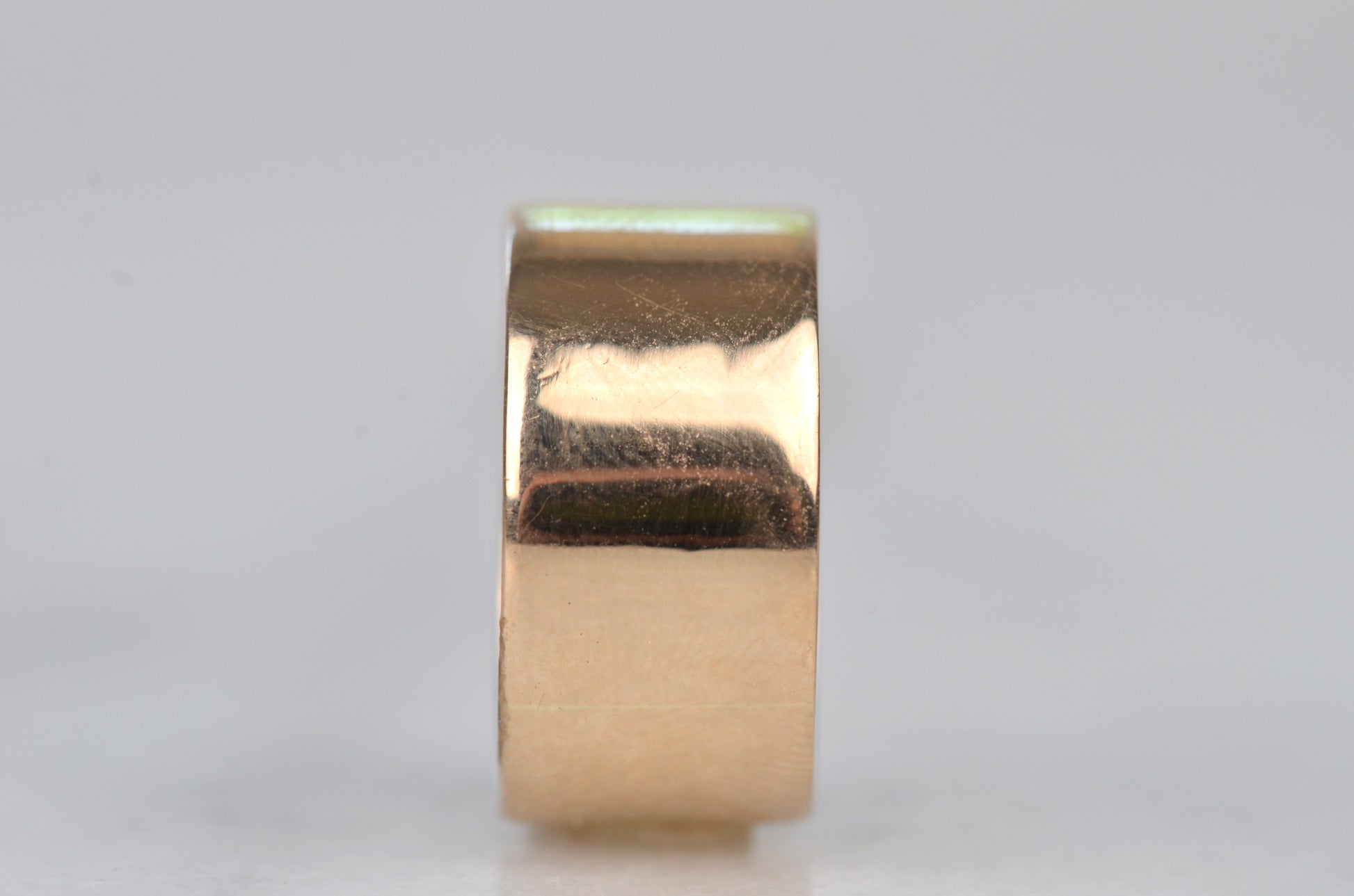 We love the bold and effortlessly glamorous look of an antique cigar band, but we can't deny that the real win here is a romantic engraving hidden inside. The high shine of this band will catch eyes, but the inside with melt hearts: Geo to Leota 6-26-10. On a June Sunday fresh into a whirlwind new century, two lovers commit to one another - and how fortunate are we to still bear witness to that more than one hundred years later.