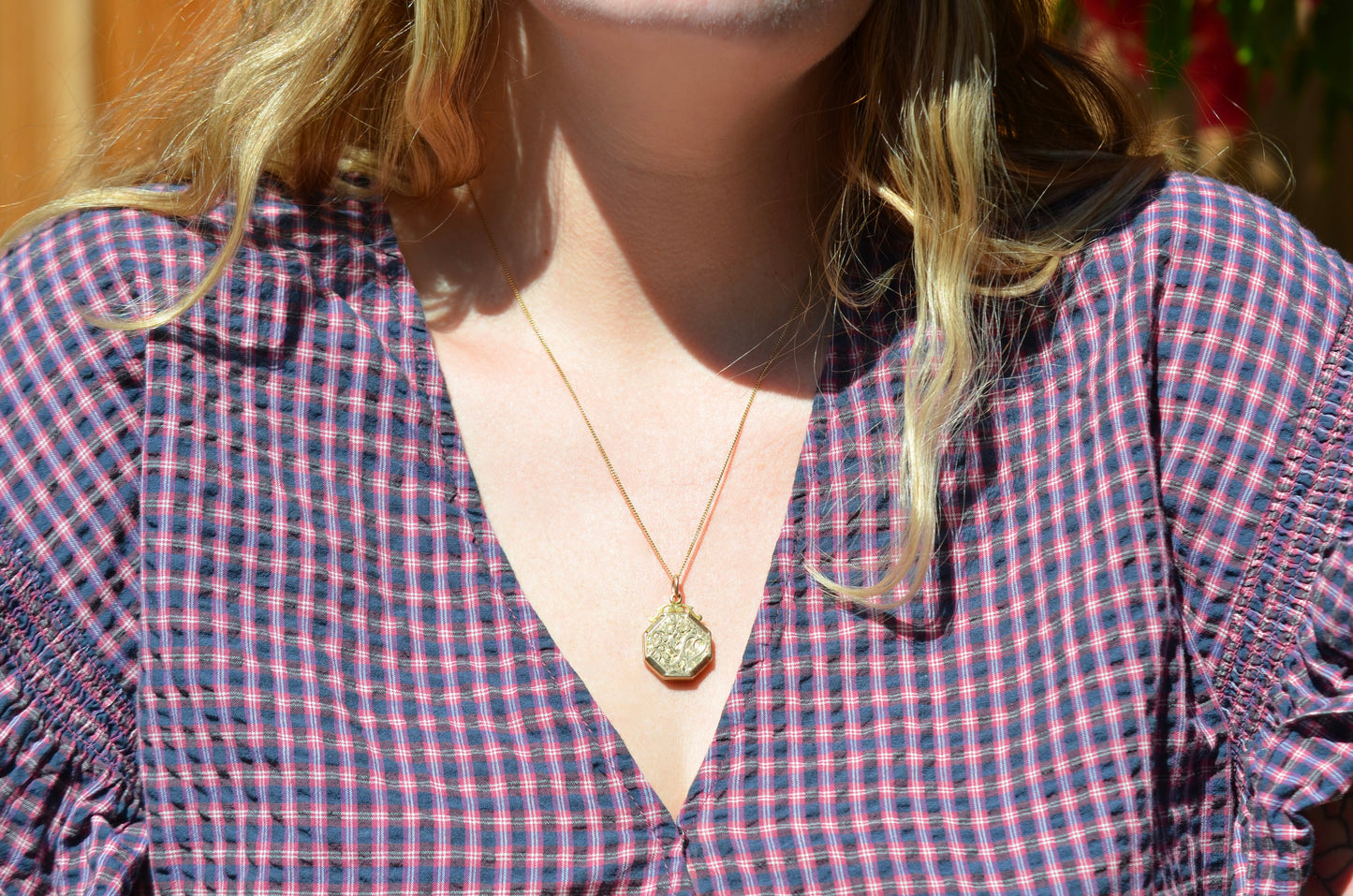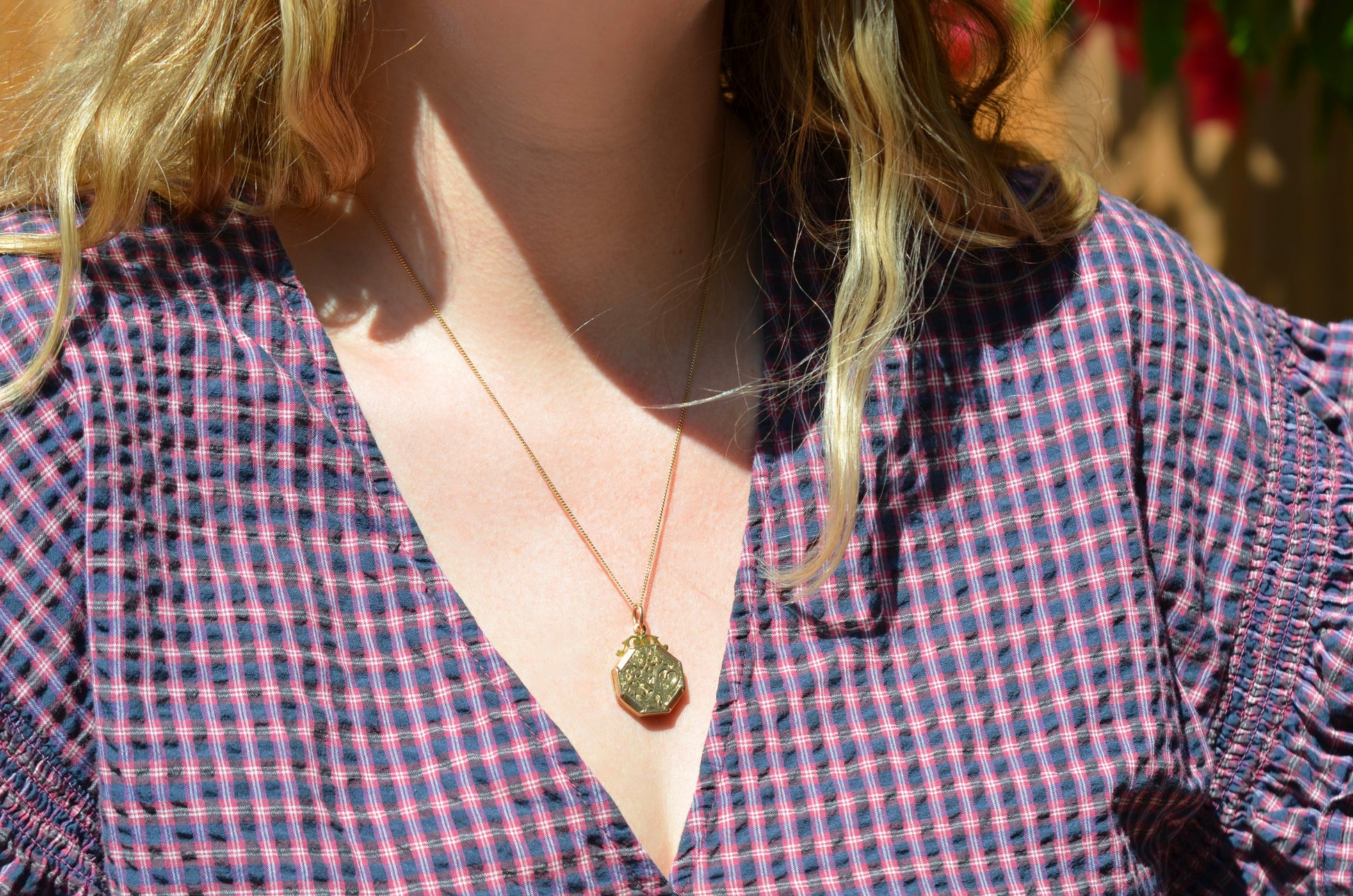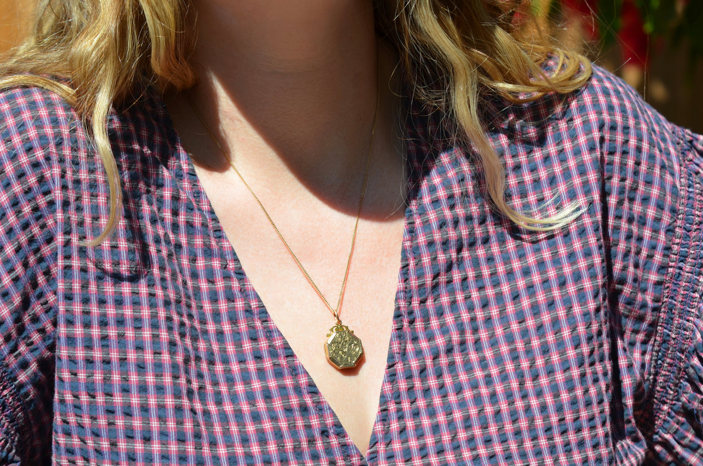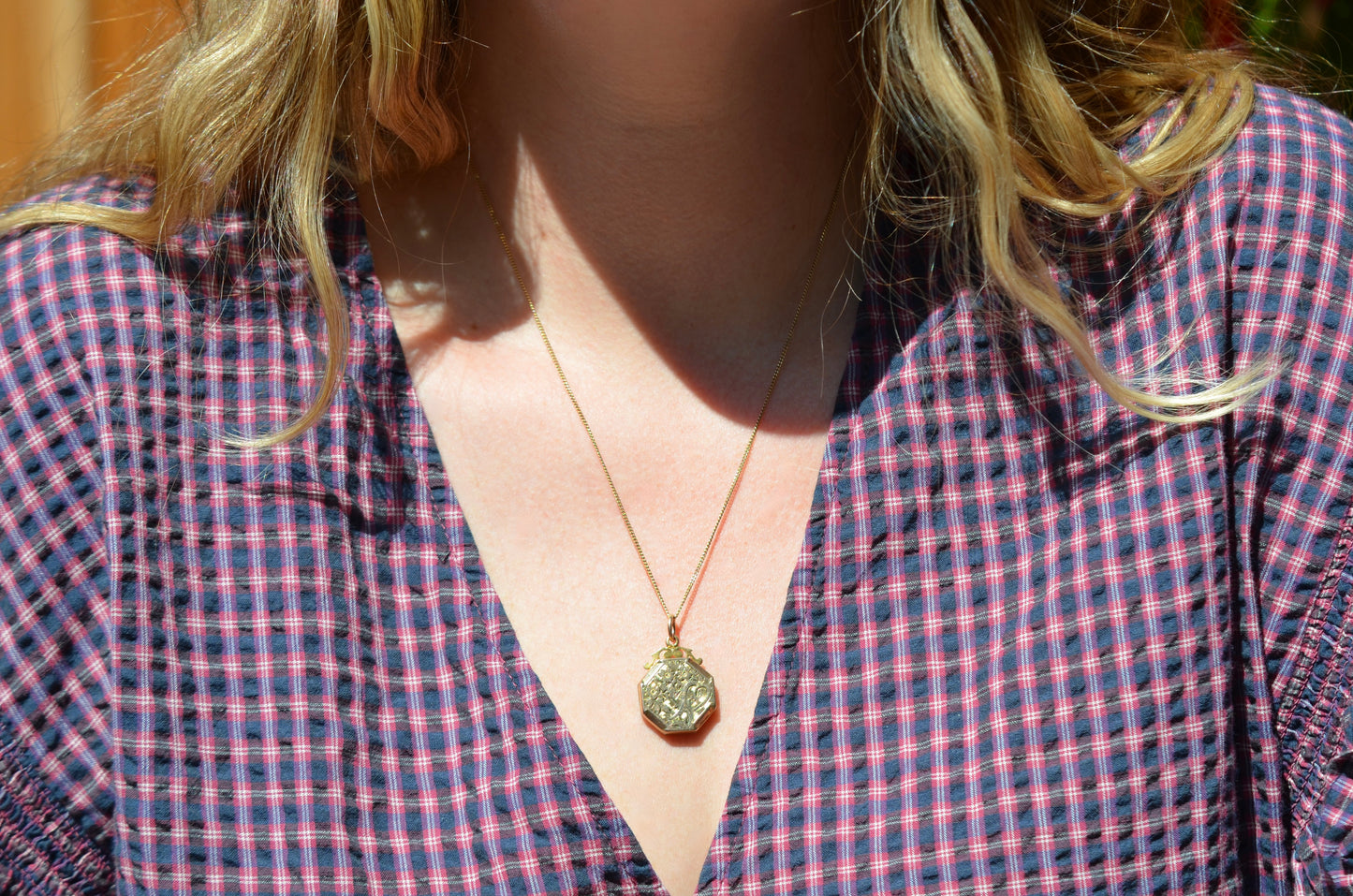 • 9k yellow gold back and front (a sheet of gold applied on both the front and back of the locket over a base metal frame), unstamped but tested