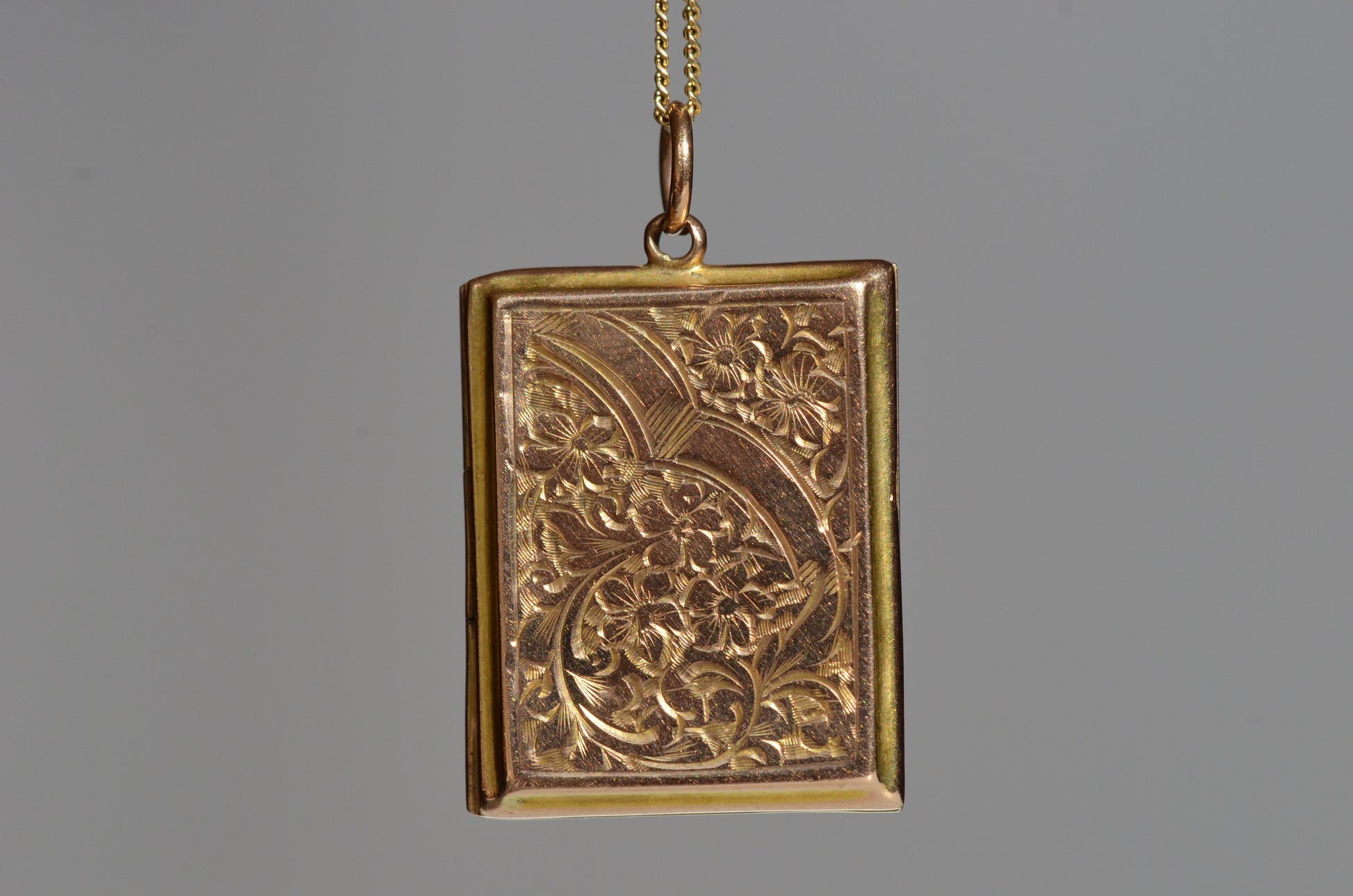 Lockets have been around in some form or another for hundreds of years. They emerged from jewels that might be more accurately described as vessels - meant to hold perfumes or tinctures or herbs. The locket as a holder of keepsakes - portraits (photographic or earlier), hair, and the like - rose in popularity in the 19th century and has been particularly popular during wartimes ever since, as a way to hold close to you those who are physically far. This piece ups the sentimental ante with a face decorated in forget me not flowers, and panels still blank for engraving a name or initials.