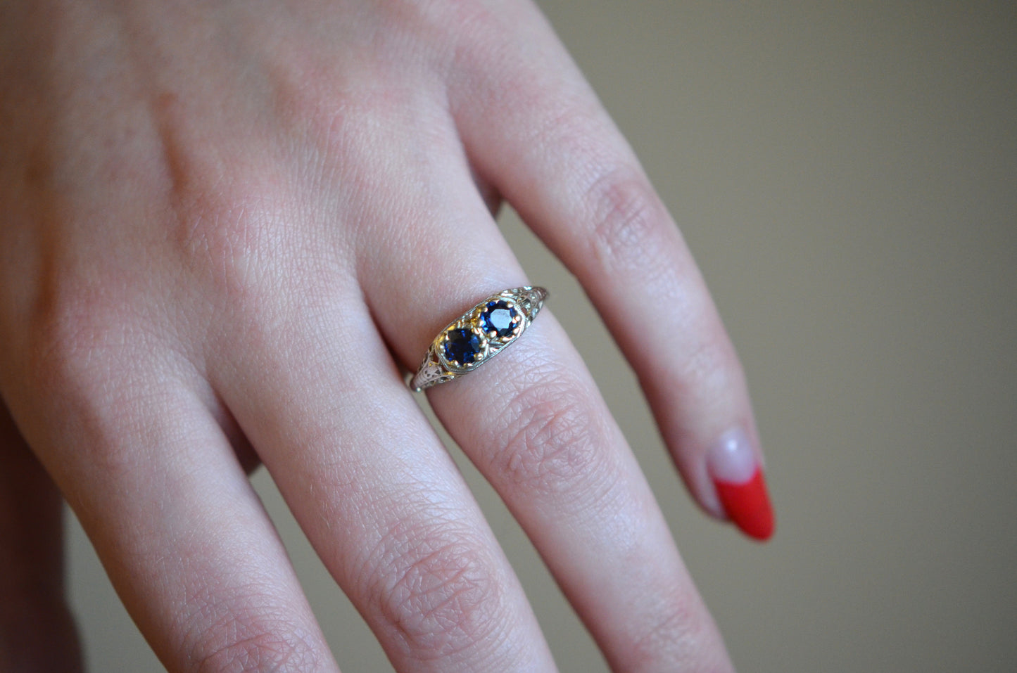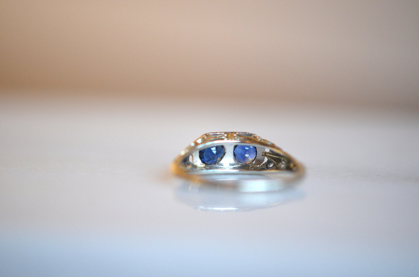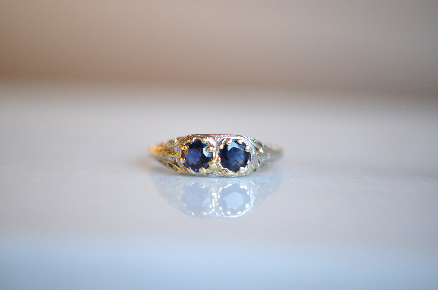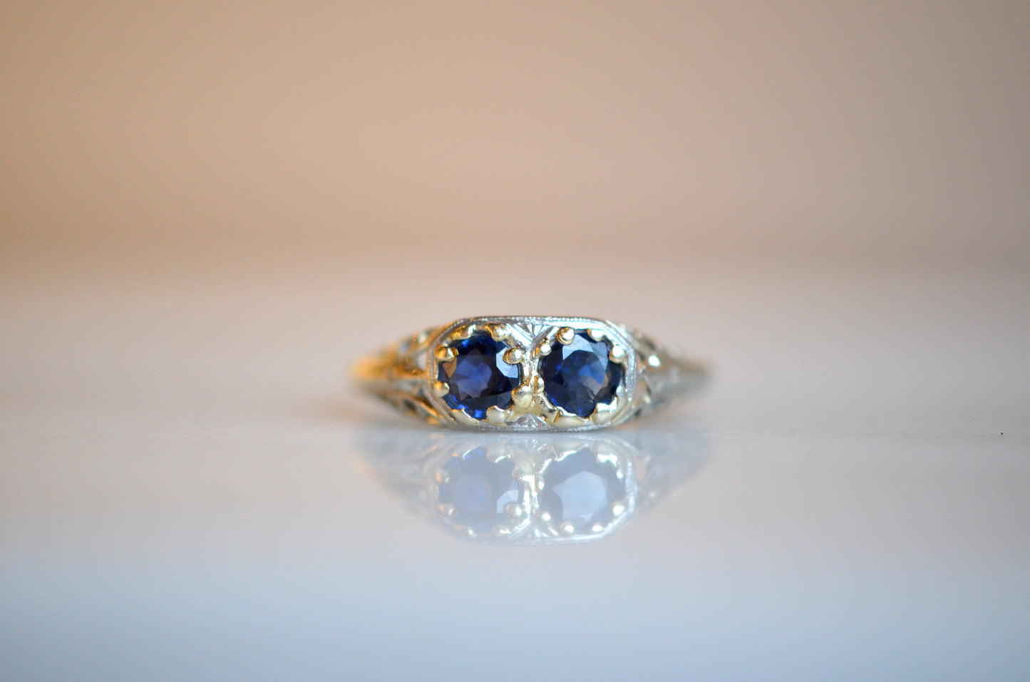Romantic Art Deco Sapphire Toi et Moi Ring