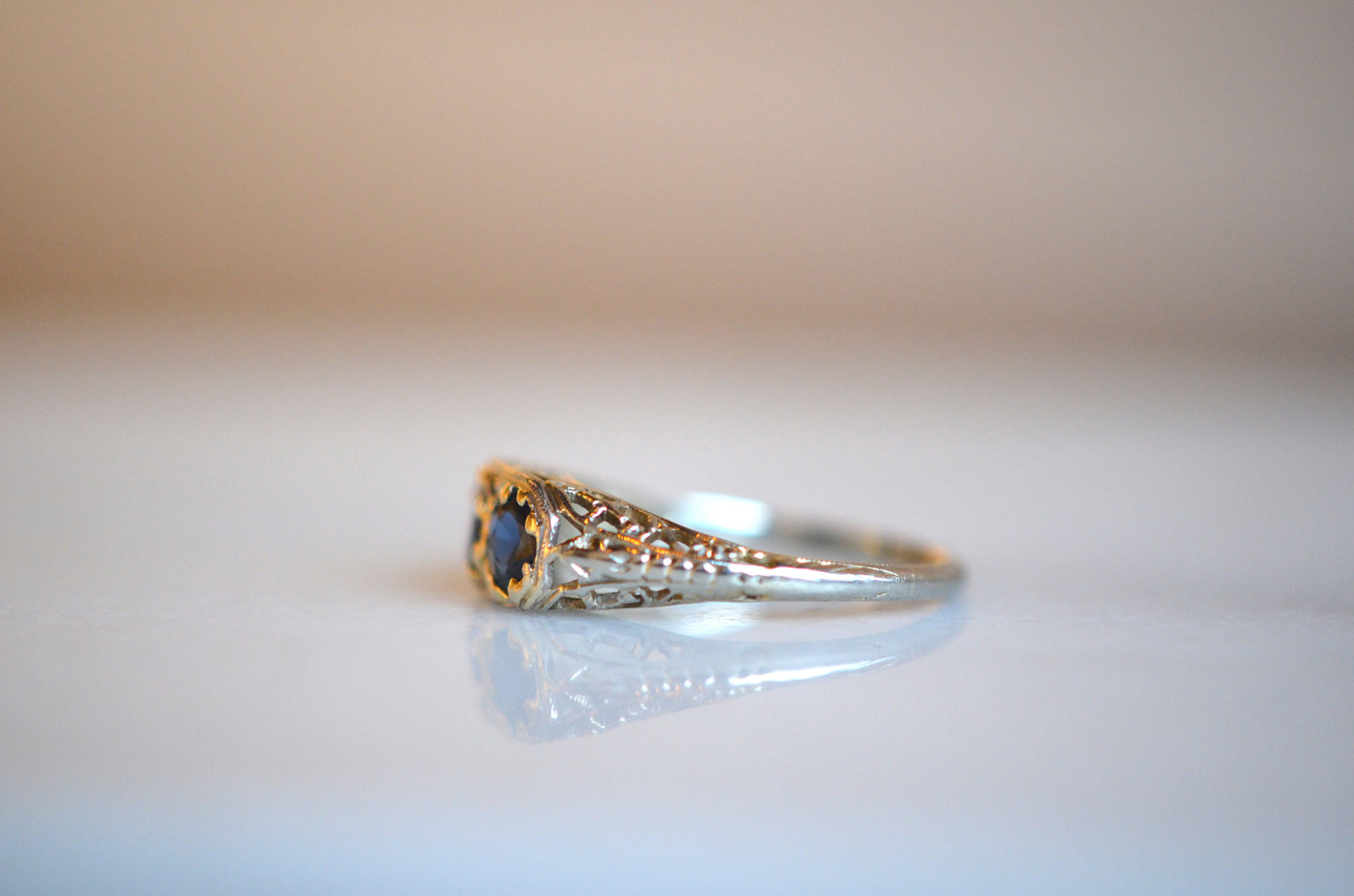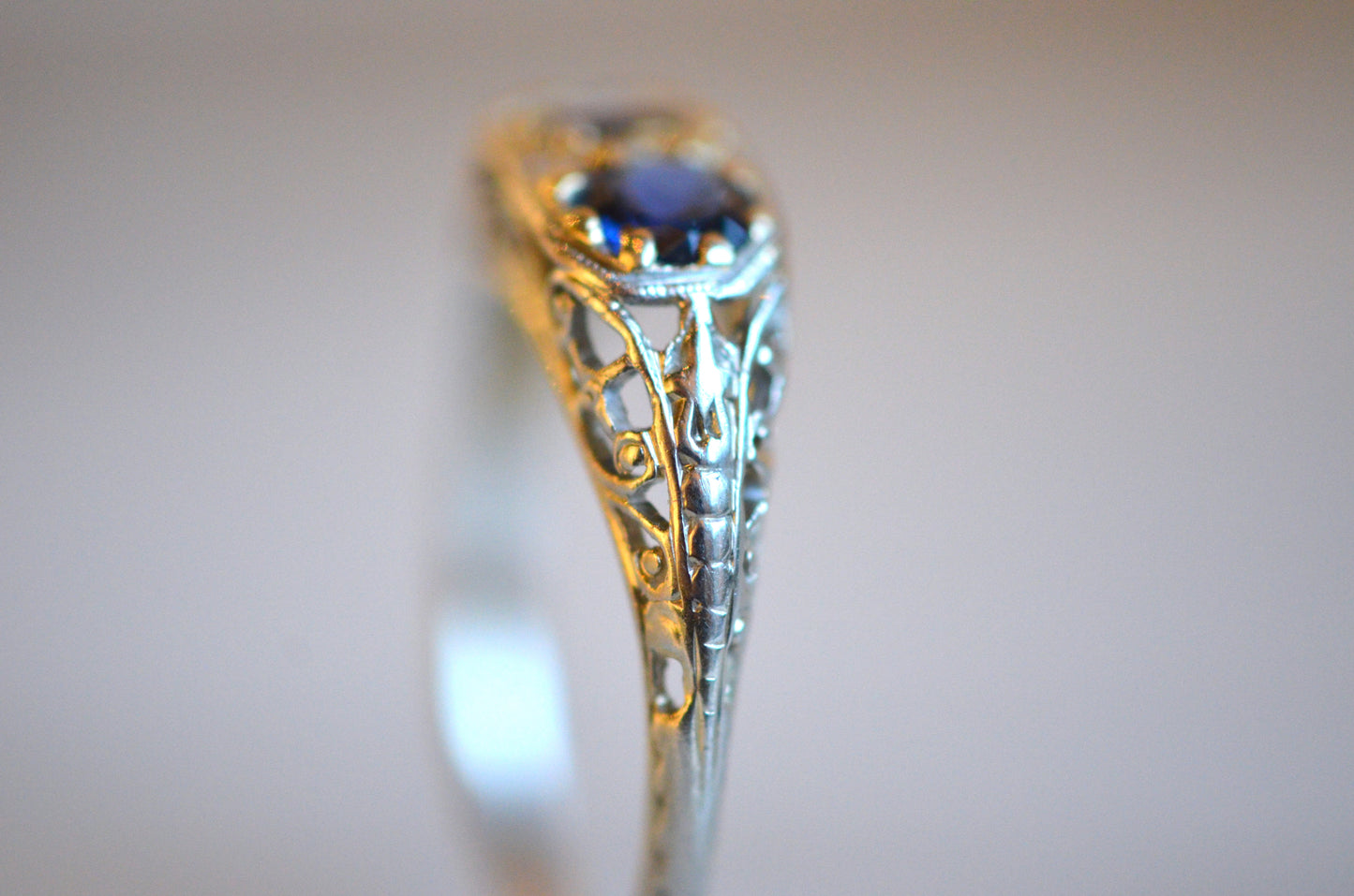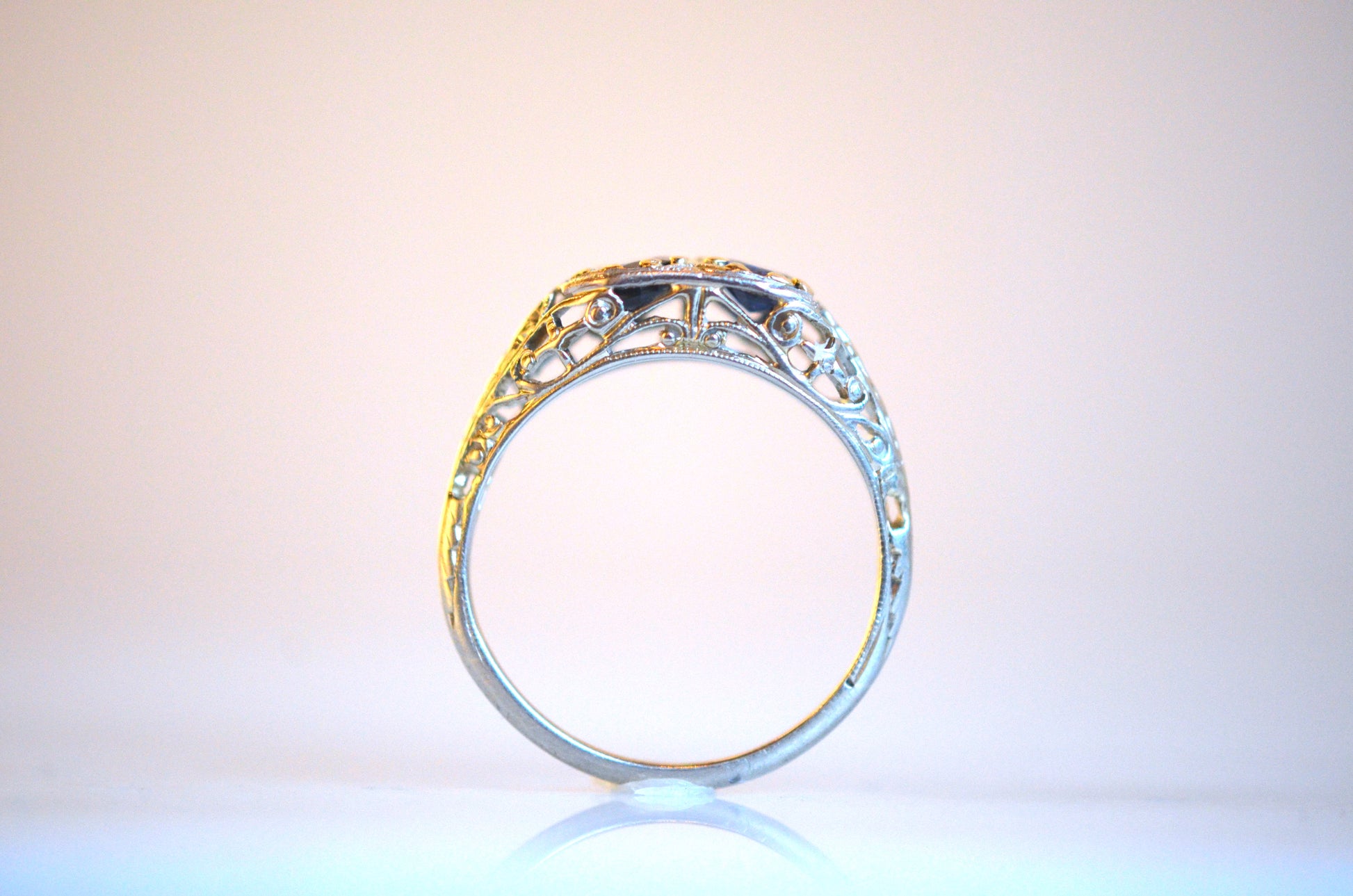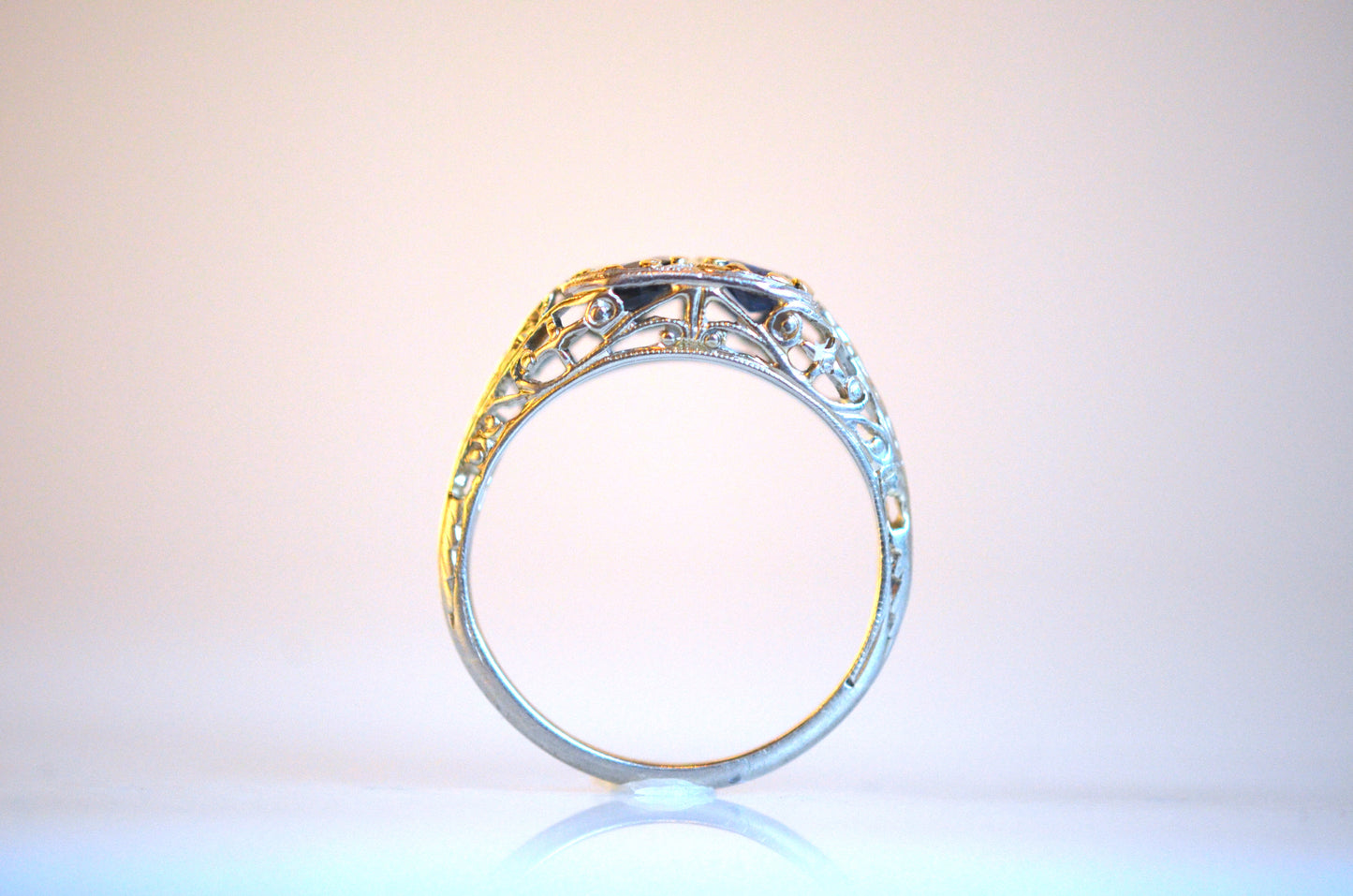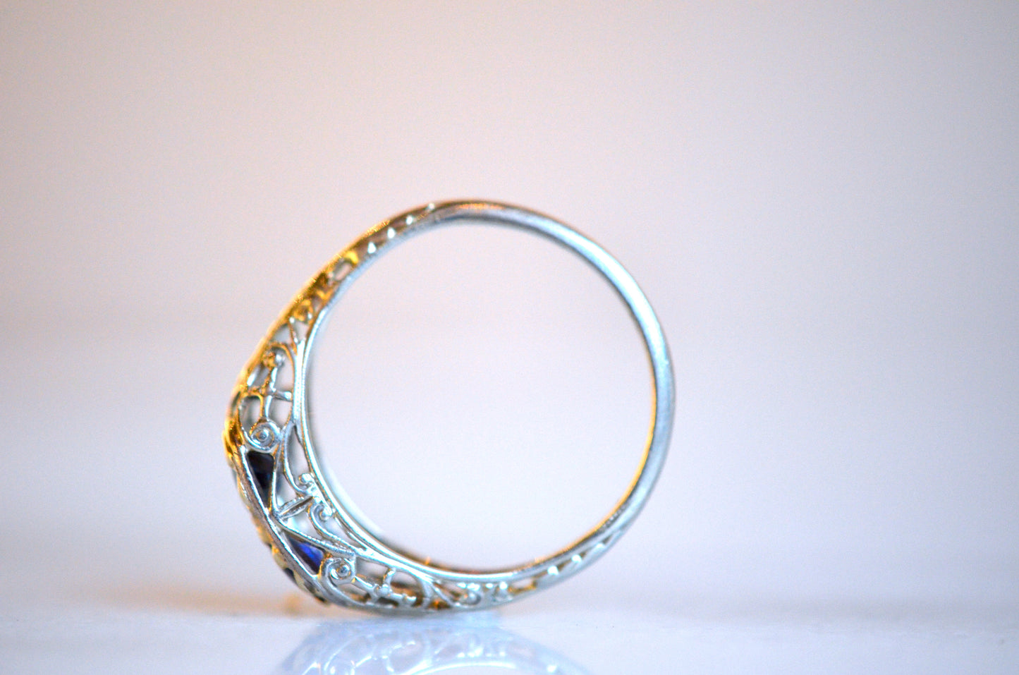 Romantic Art Deco Sapphire Toi et Moi Ring