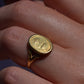 This ring is a fairly rare authentic piece by Maison Augis, and considerably smaller in scale than many of the versions currently available on the vintage market. It is in good vintage condition, and effortlessly comfortable on the hand. Wear consistent with age and regular use is evident on the loss of detail to the wreath border and the face of the ring, as well as in the loss of the standard French hallmarks on the outside of the shank.