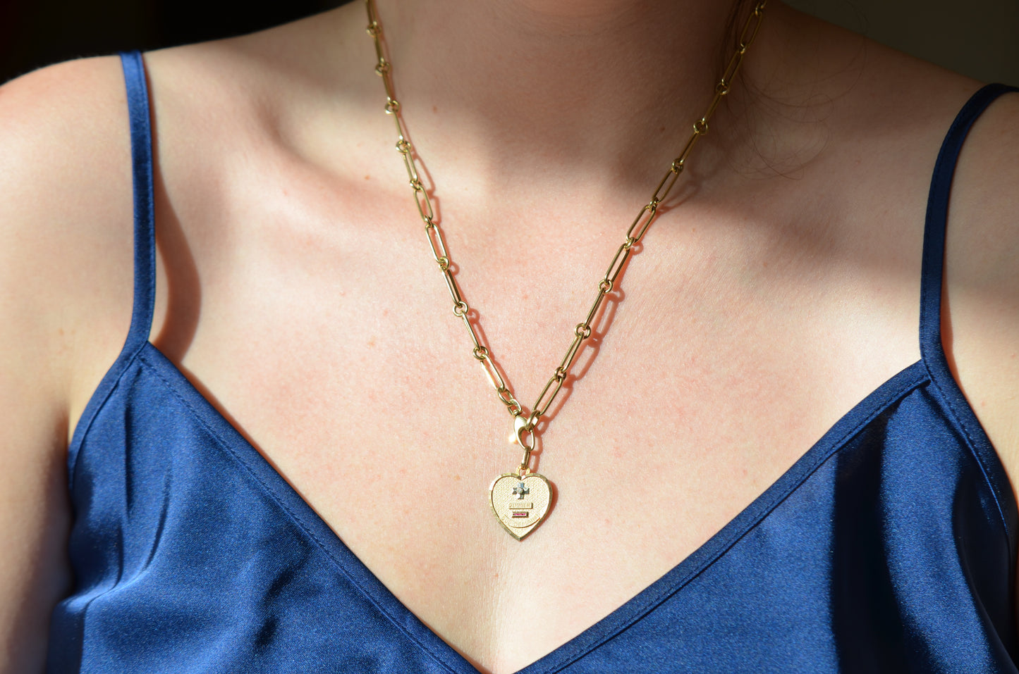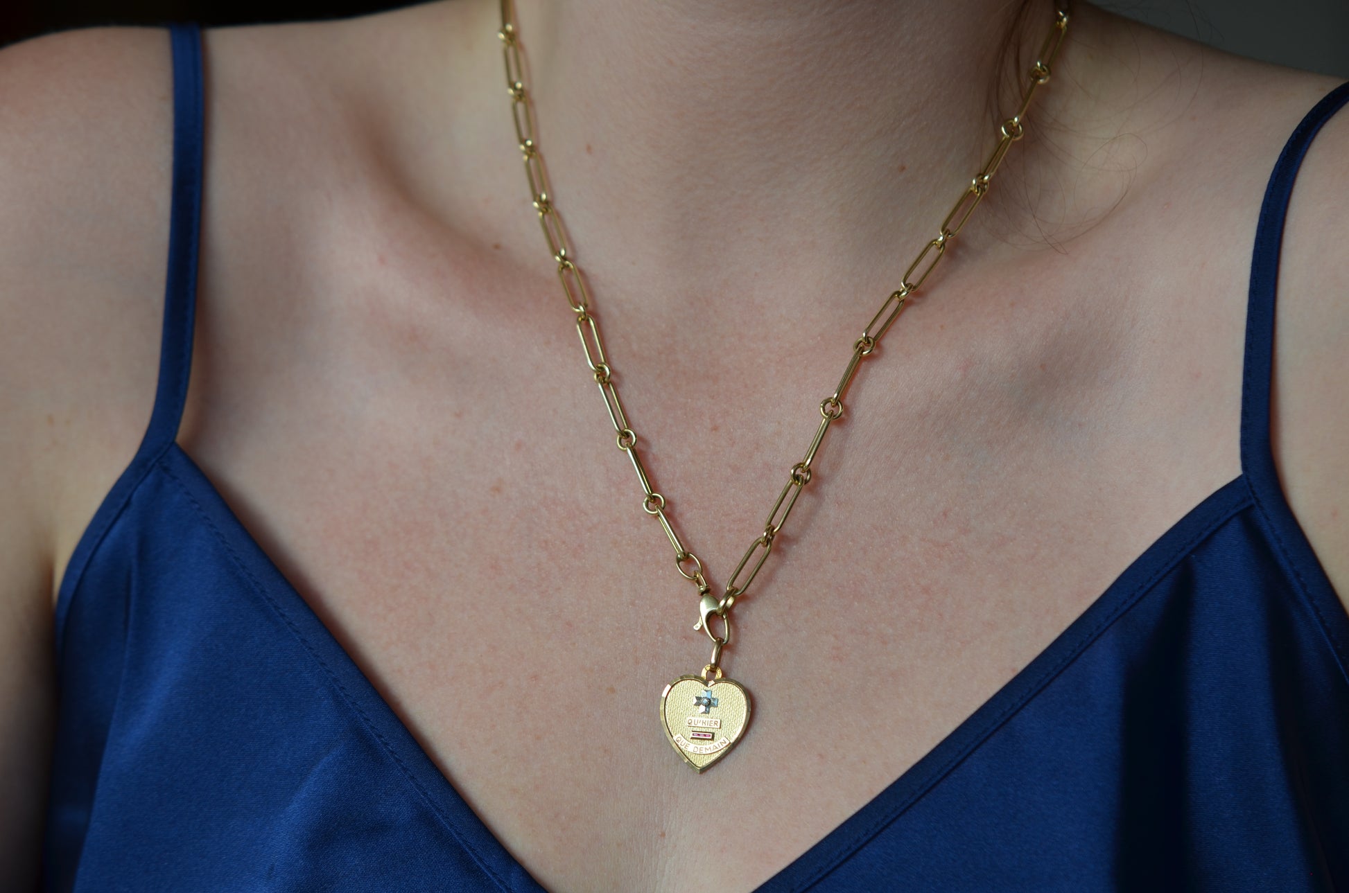 These love tokens are widely reproduced and imitated, but the quality of the Maison Augis pendants (always die struck and never cast) have made them a very collectible piece, even after over 100 years of production and many style variations.