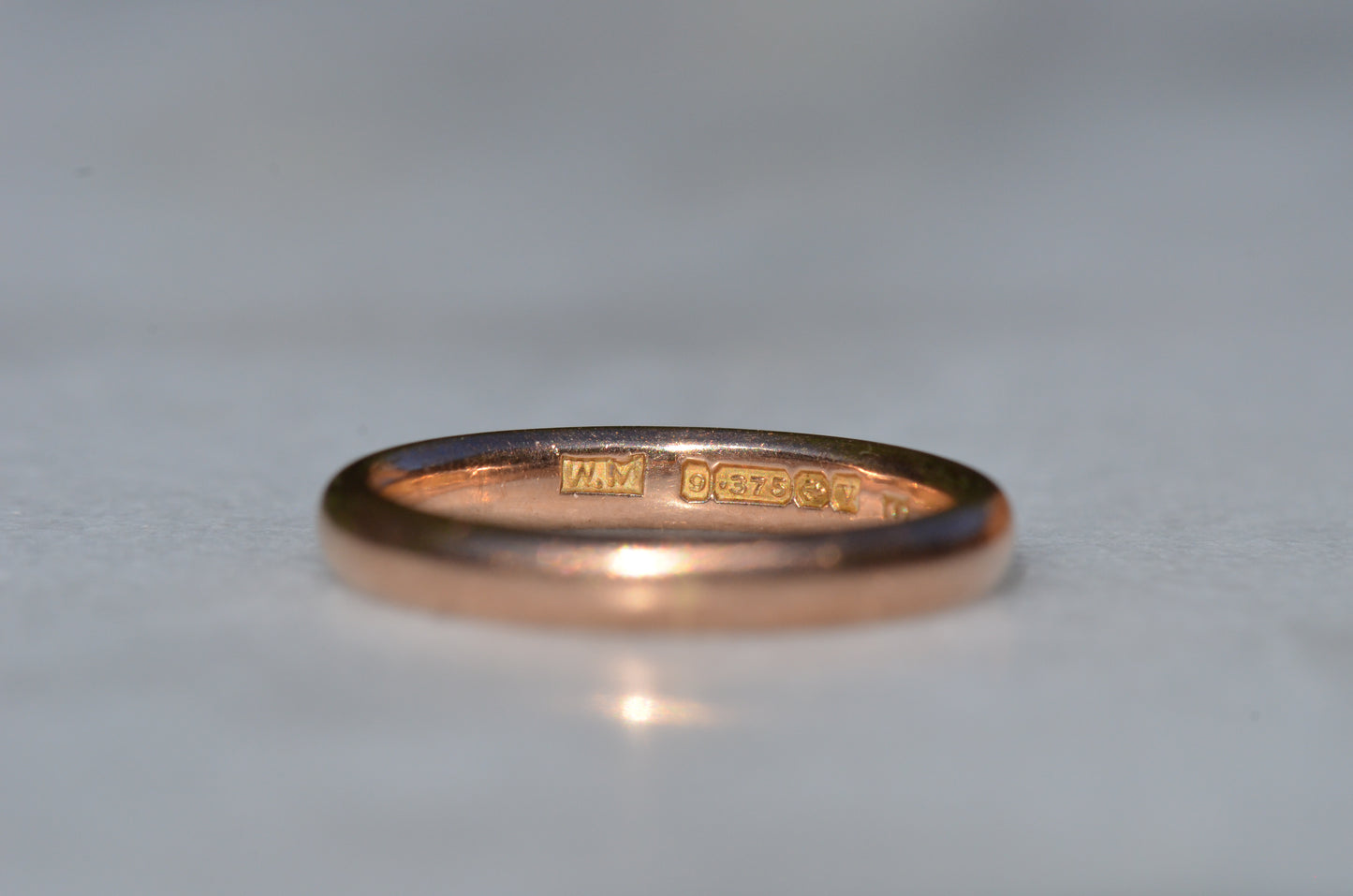 • 9k rosy gold, stamped and tested, with full British hallmarks for Birmingham 1920, maker's mark WM