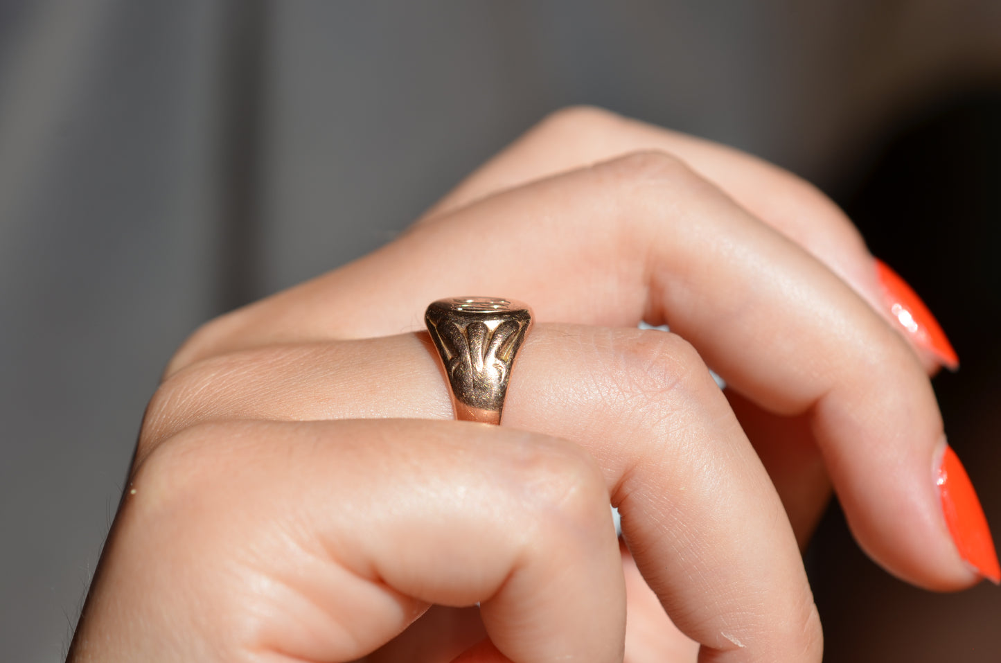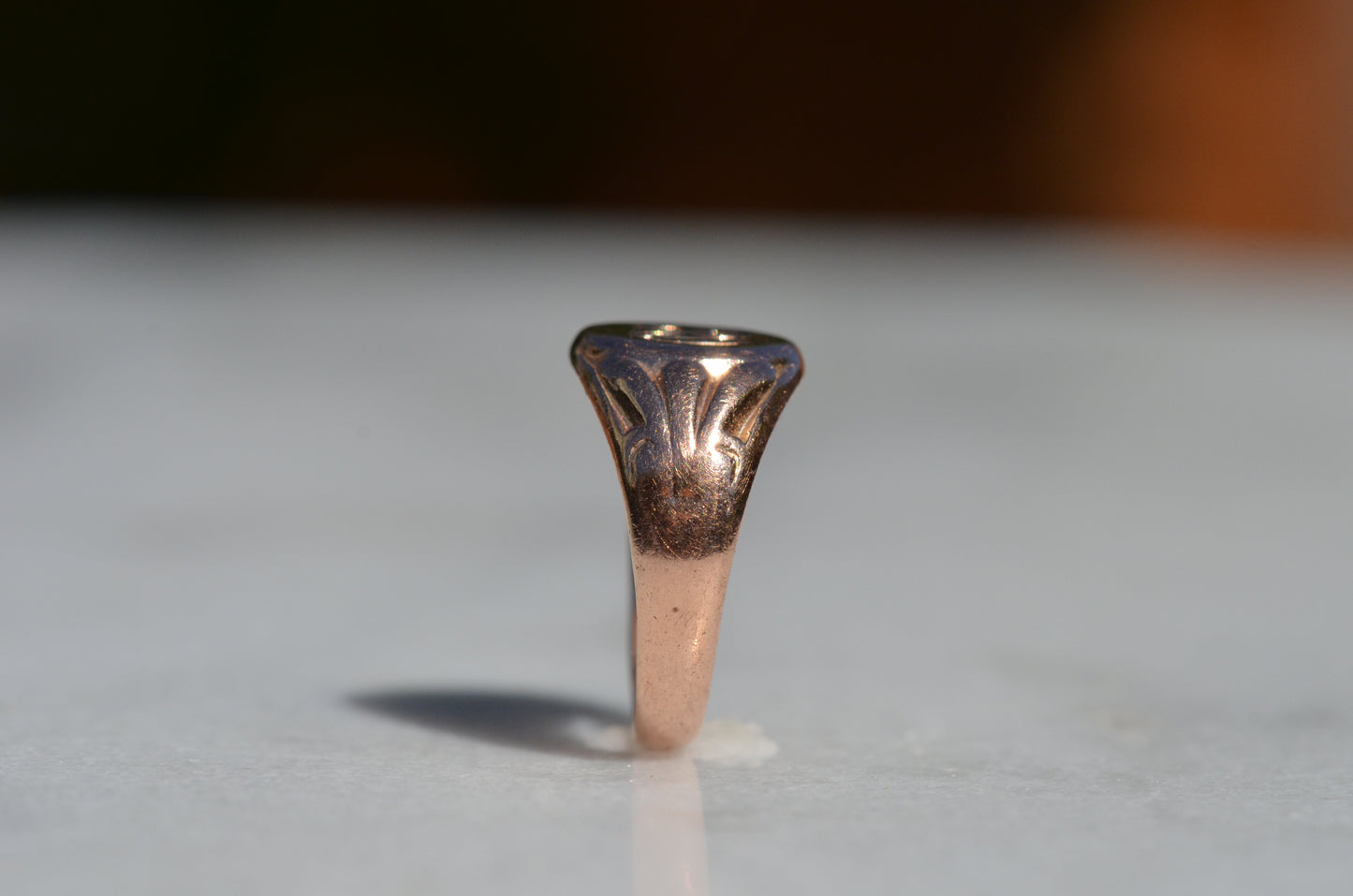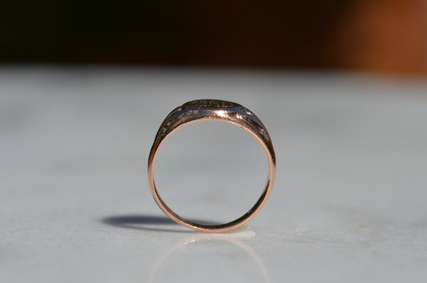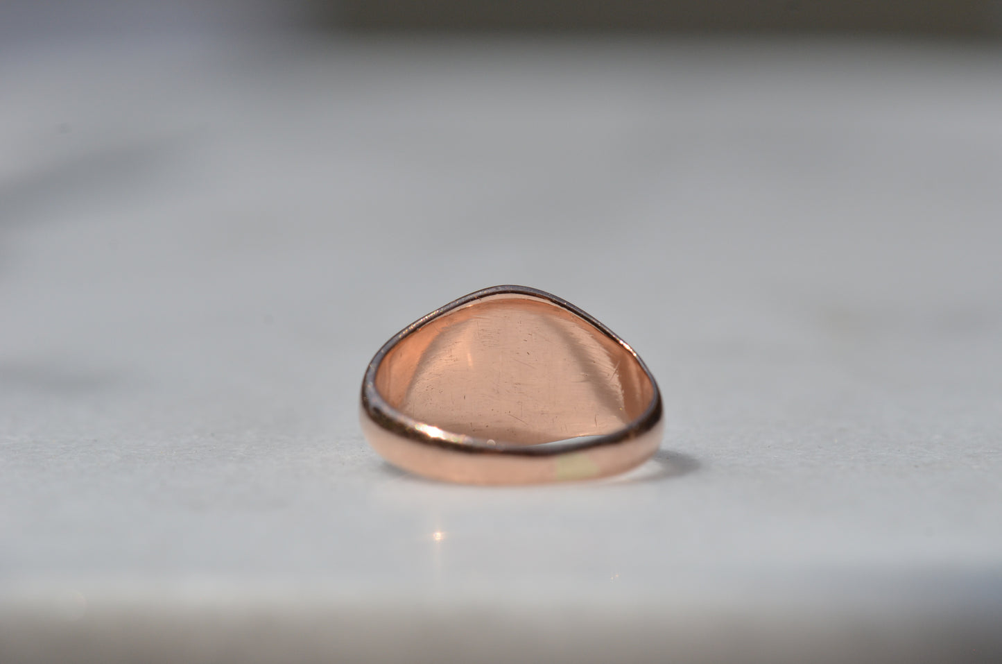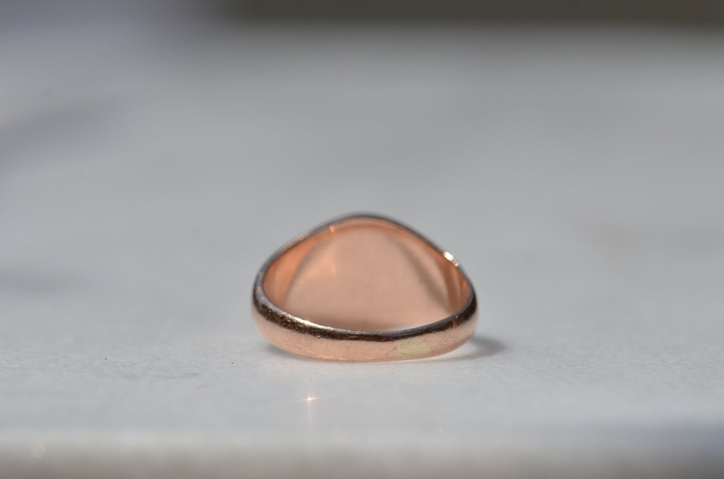• Face of ring measures 11mm wide, 9.5mm across, with a rise of 2mm; back of band measures 2.7mm wide and 0.8mm thick