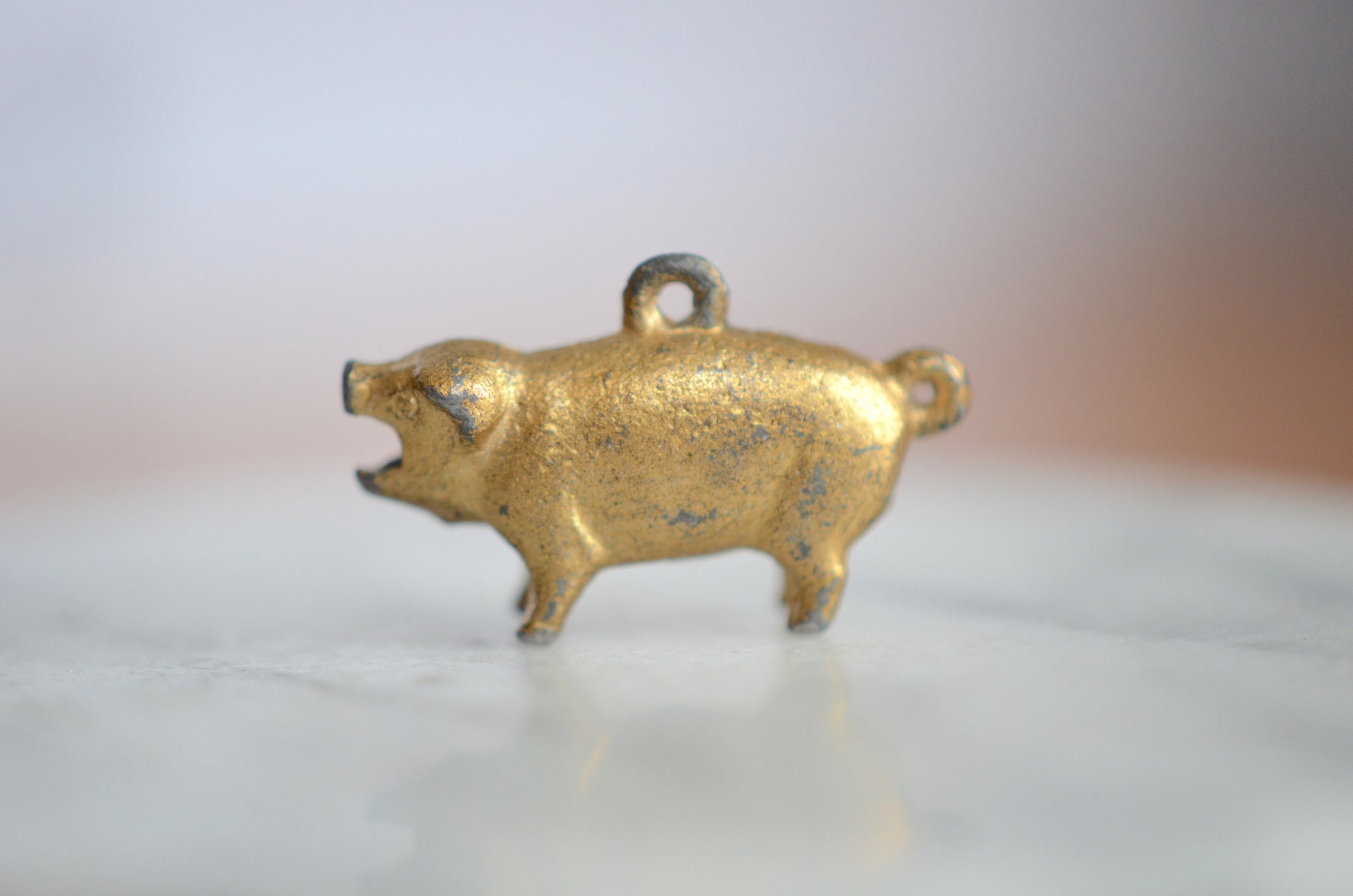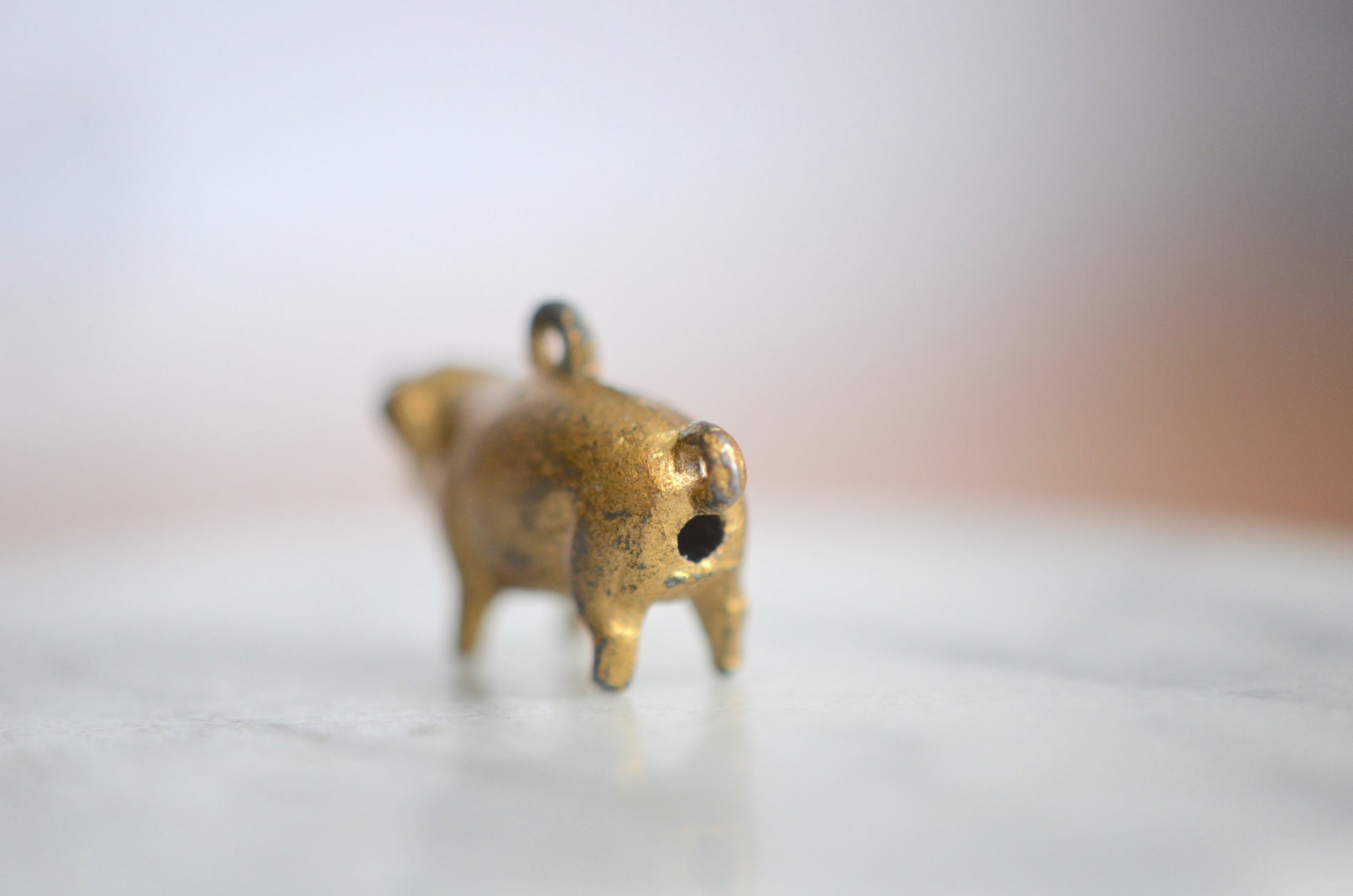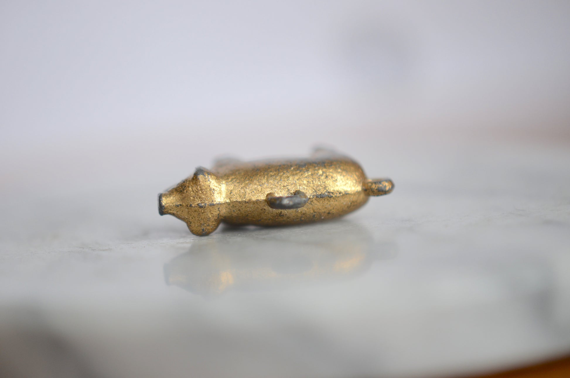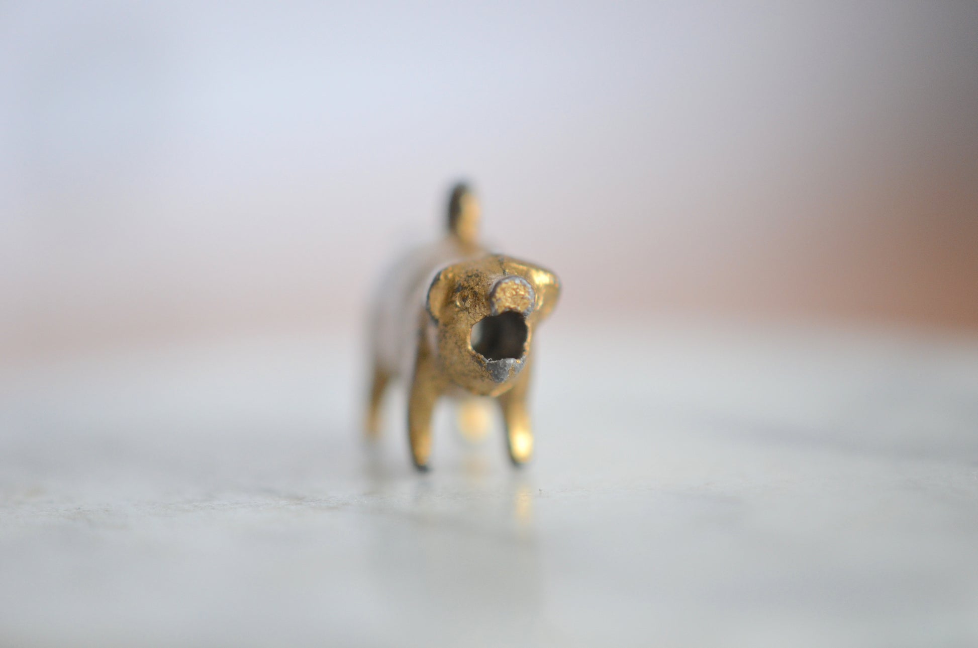 An utterly delightful charm with a cheeky secret inside! Stanhope jewels date back to the 1850s, and feature a small, single-piece magnifying glass called a Stanhope lens with a microphotograph attached. The convex surfaces of the lens magnify the image so that photographs as small as 1mm squared can be seen without other magnifying tools. Naturally, the ability to hide these photographs in plain sight by placing them within charms, pens, toys, and miniatures led to all sorts of playful possibilities: while scenic photographs inside charms that represent their location (take, for example, a photograph of Niagara Falls placed within a charm shaped like a wooden barrel) were a common take, there was also a popular trend of placing erotica in everyday items! We can't get enough of this article on the rage for photographic miniatures: https://www.collectorsweekly.com/articles/secrets-of-the-worlds-tiniest-photographs/.